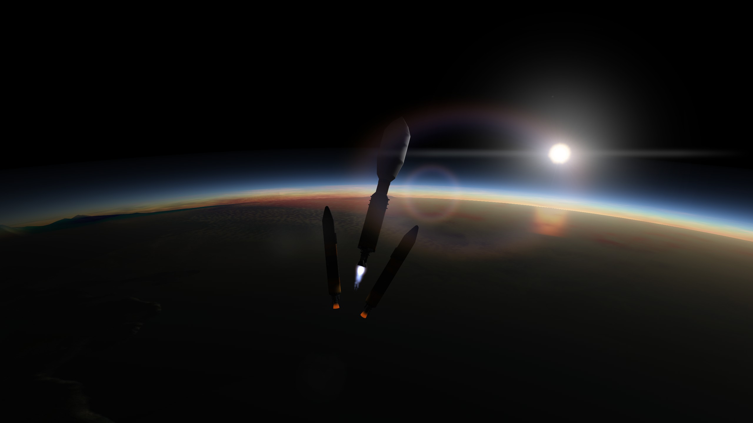 Auf dieser Höhe werden die anderen beiden Booster abgeworfen, die bedauerlicherweise nicht überleben.