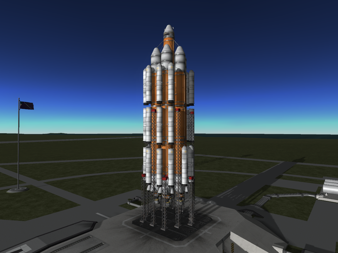 Ein weiterer Punkt worin sich die Ingenieure einig waren: Der Treibstoff muss zuerst hoch. Aber sollten sie dafür das F.A.L.L.U.S. System verwenden? 4.5 Tonen in einem LKO? Die Ingenieure hatten Zeitdruck. Es musste etwas gigantisches, etwas majestätisches, lautes, gewaltiges, schmutziges, etwas durch und durch männliches und richtig uneffizientes musste her.