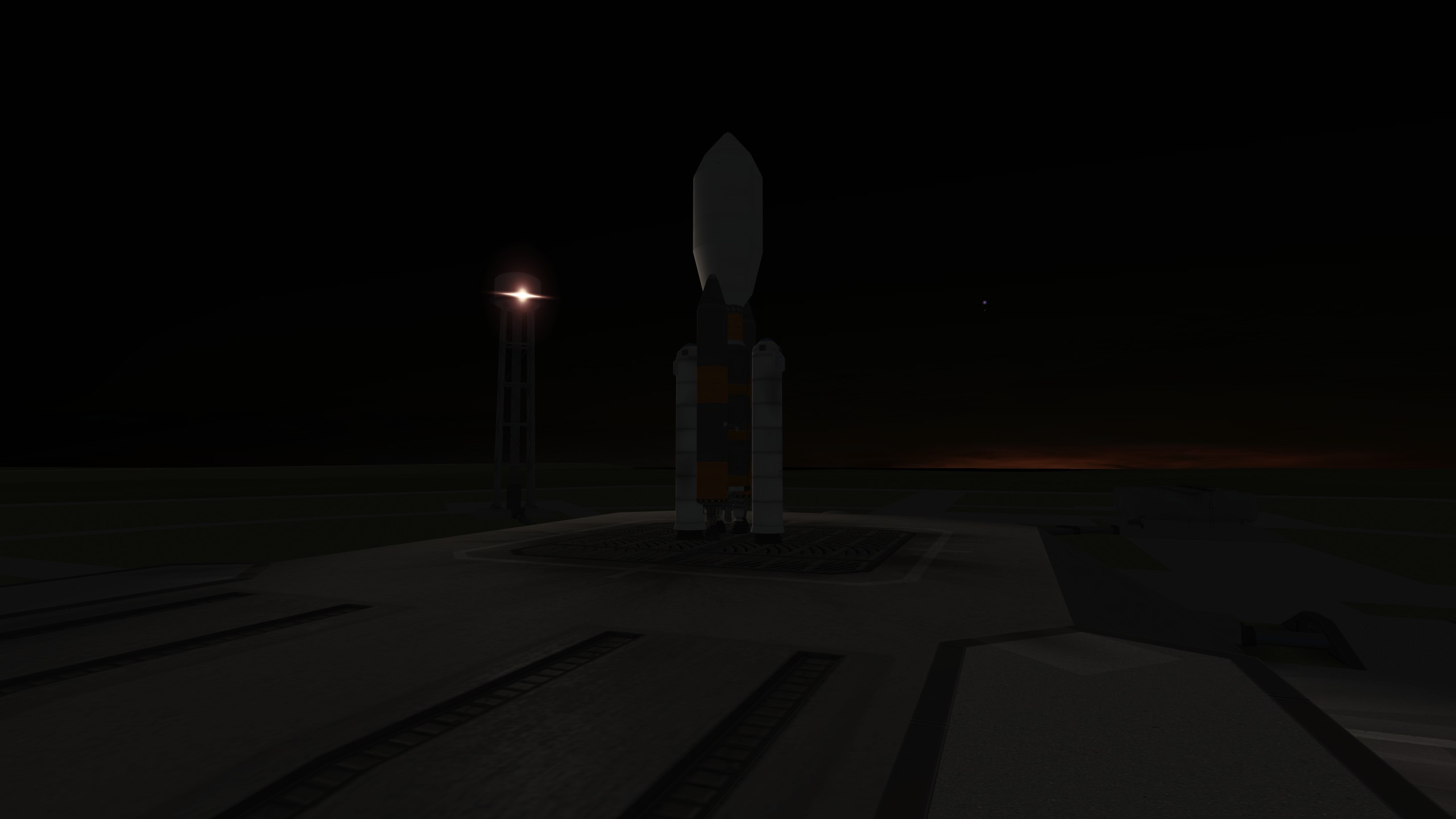 Nun startet er die Rakete, die ein Verlinkungs-Modul für die Weltraumstation um Kerbin transportiert.