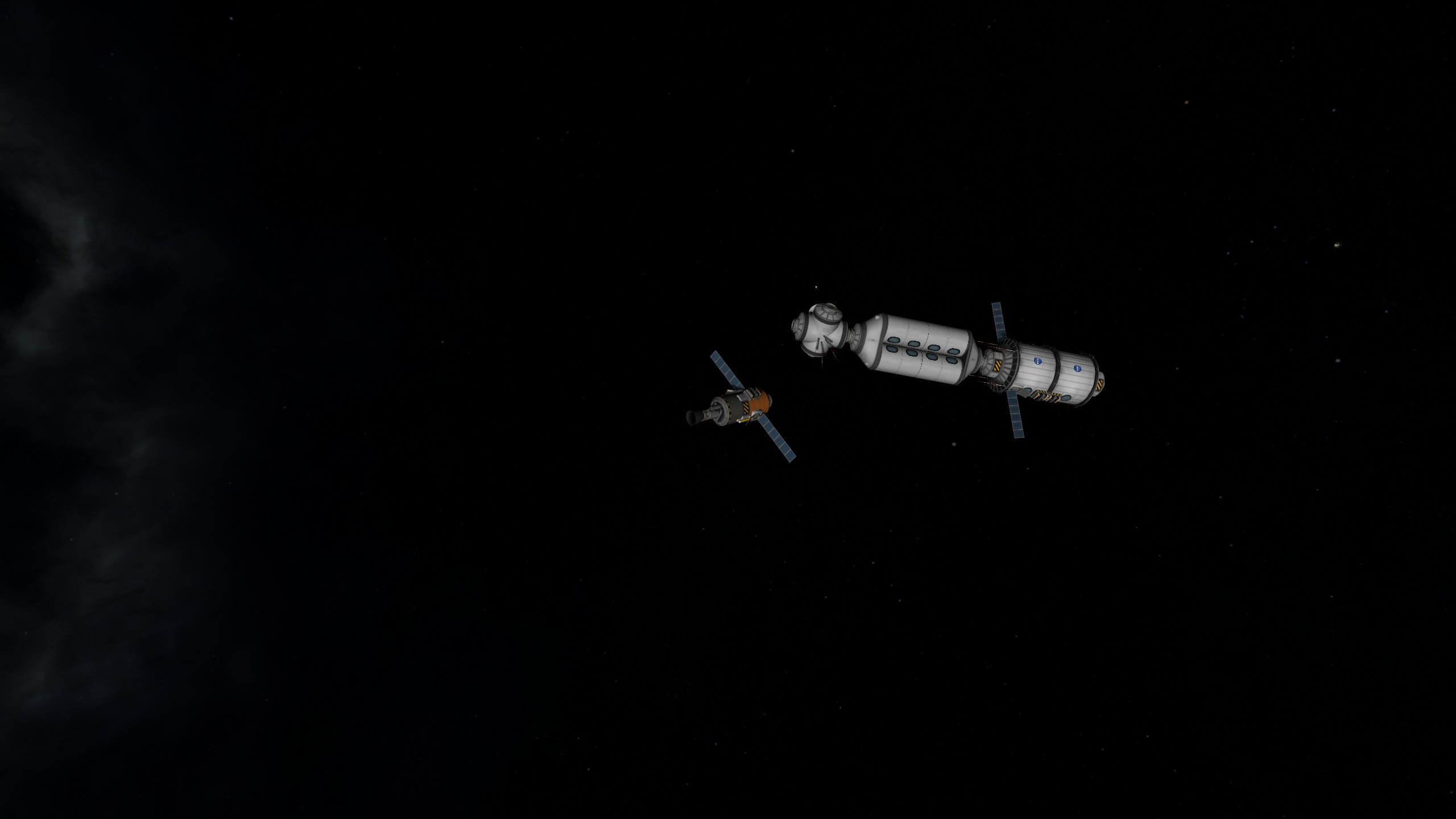 Also entschließt er sich, die Apoapsis auf 110km zu erhöhen. Dort angekommen startet er ein perfektes Manöver, bei dem die Rakete sich der Station direkt bis auf 28.5 km nähert.