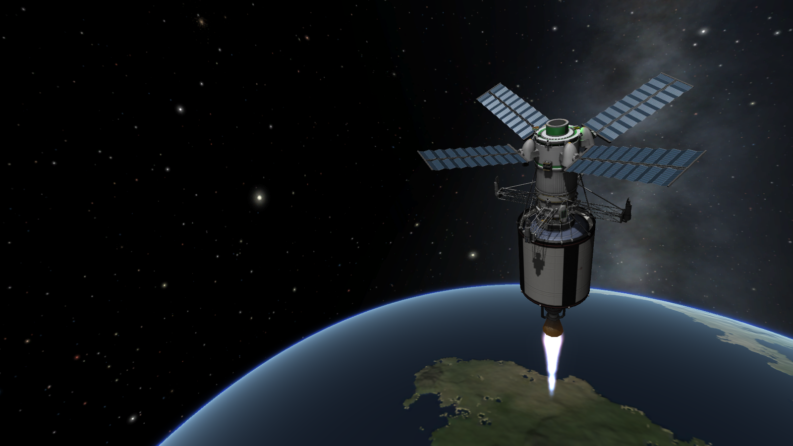 Nach dem Start wurde noch vor Erreichen des Orbits von den großen Triebwerken auf das effizientere kleine Atomtriebwerk gewechselt.