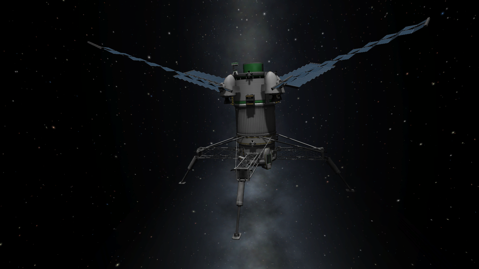 Daher mussten statt des einen geplanten Sonnensegels gleich 4 angebrachtwerden um die Scans hoffentlich auch auf der dunklen Seite desMun durchführen zu können.