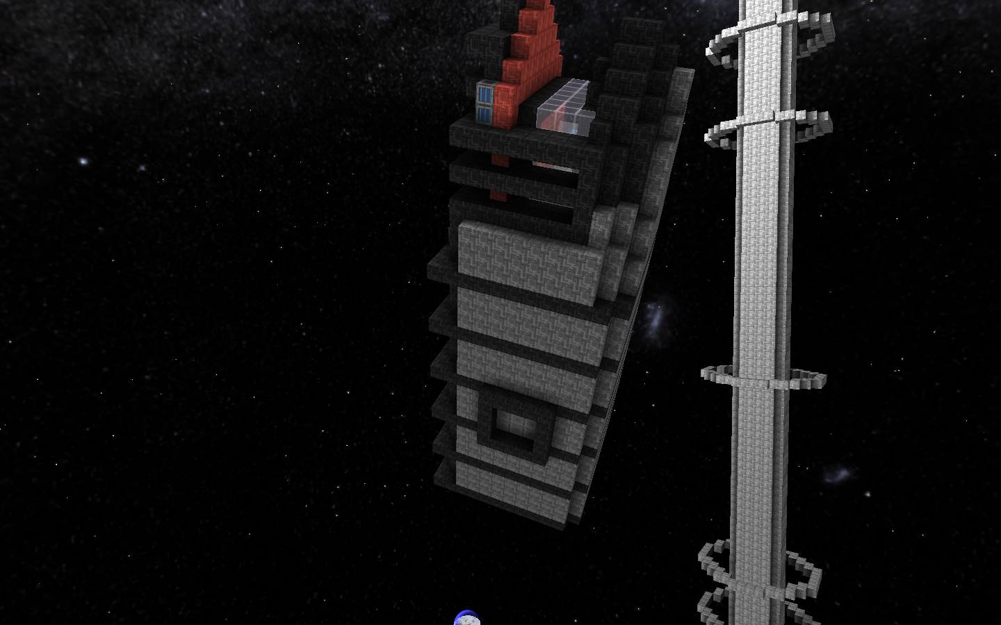 Ist mein erstes (richtiges) Schiff hat rundum eine 3 Blöcke dicke Panzerung, außer beim Steuerungsmodul da gibts nur 2 Plexiglas :D Bewaffnung eine schwache antimatterkanone sowie 3 Raketenwerfer als zusatz eine salvagaslaser mit einer abbaugeschwindigkeit von etwa 0,6 (hab bestimmt schon 20 teile verbaut trotzdem noch lahm) sowie ein gigantischer energievorrat und einen 8x8 antriebskasten