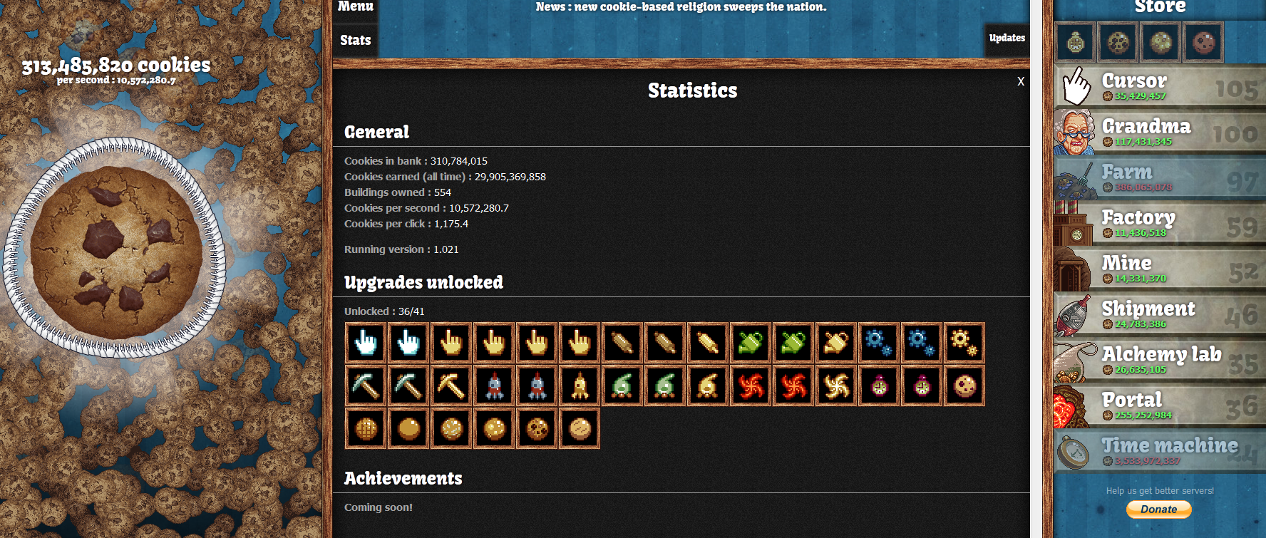 ab 1.000.000 Cookies sieht man im Hintergrund eine Oma und die wackelt immer schneller und schneller ... ab 2.000.000 kann man für 666.666