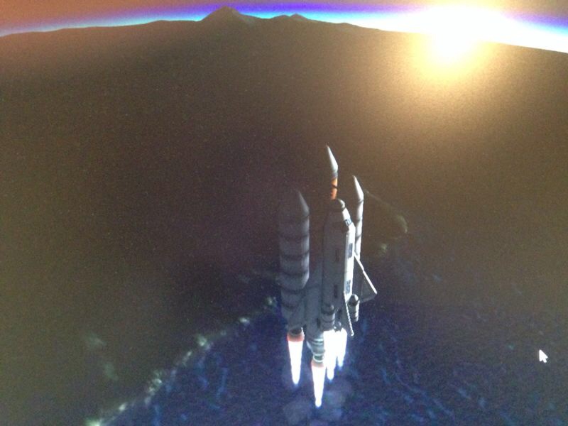 Hier mal ein paar Fotos von meinem Shuttle. Ist leider nur vom Monitor abfotografiert, da ich leider im moment keine möglichkeit habe die Originalbilder zu nehmen. Das Shuttle fliegt bis zum Mond, zurück bis und mit landung.