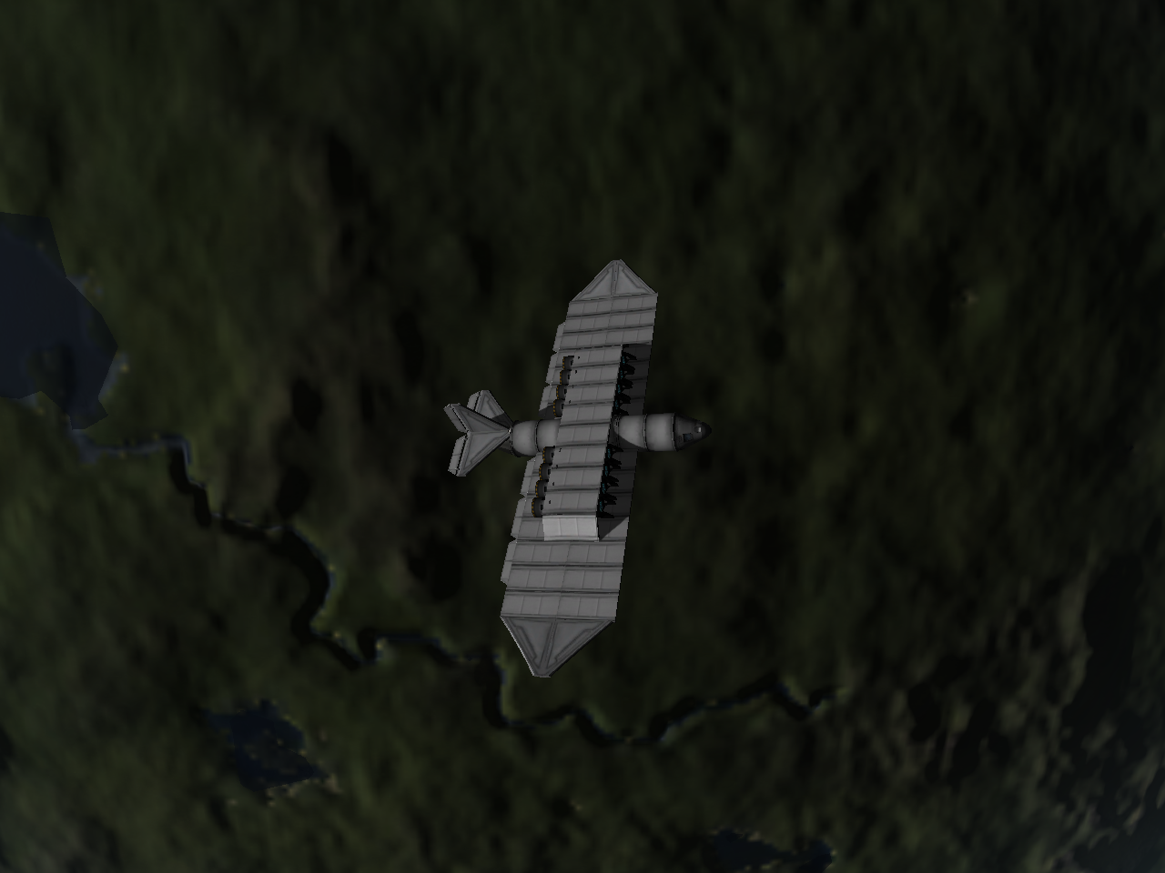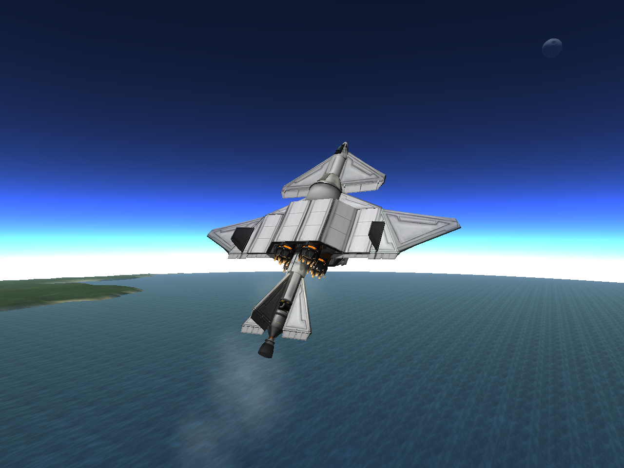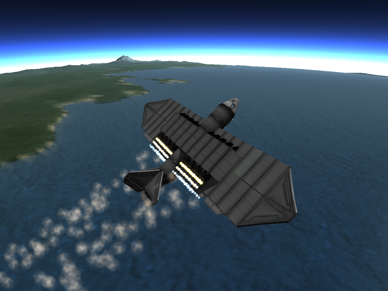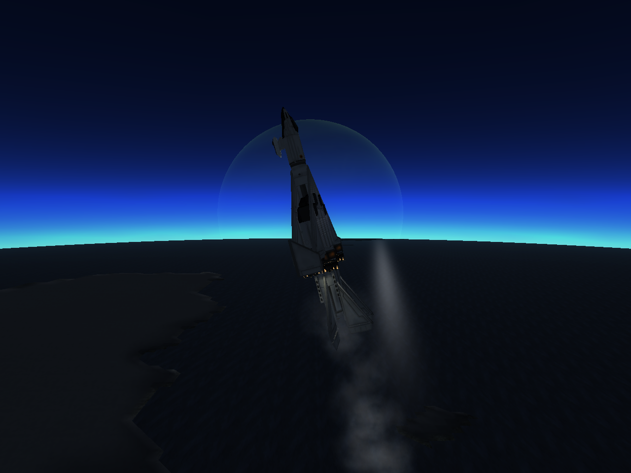 - so schnell wie möglich auf 20-24 km kommen und dort beschleunigen. Langsam steigen und ab 28-32km die Triebwerke drosseln. Bei 50% Schub die Nukleartriebwerke hinzuschalten und weiter drosseln. Bis eine Apoapsis von 60-80 km erreich ist. Geschwindigkeit ~ 2300m/s im Orbit. Dann Jet Triebwerke ausschalten.