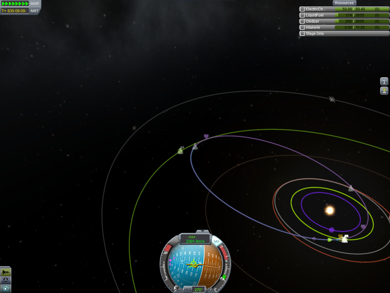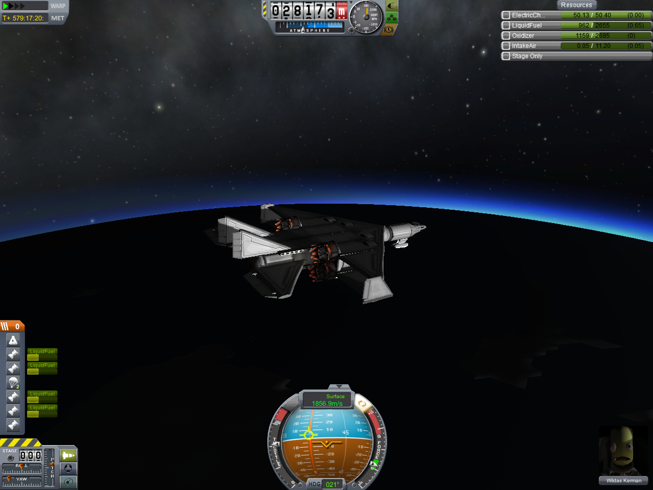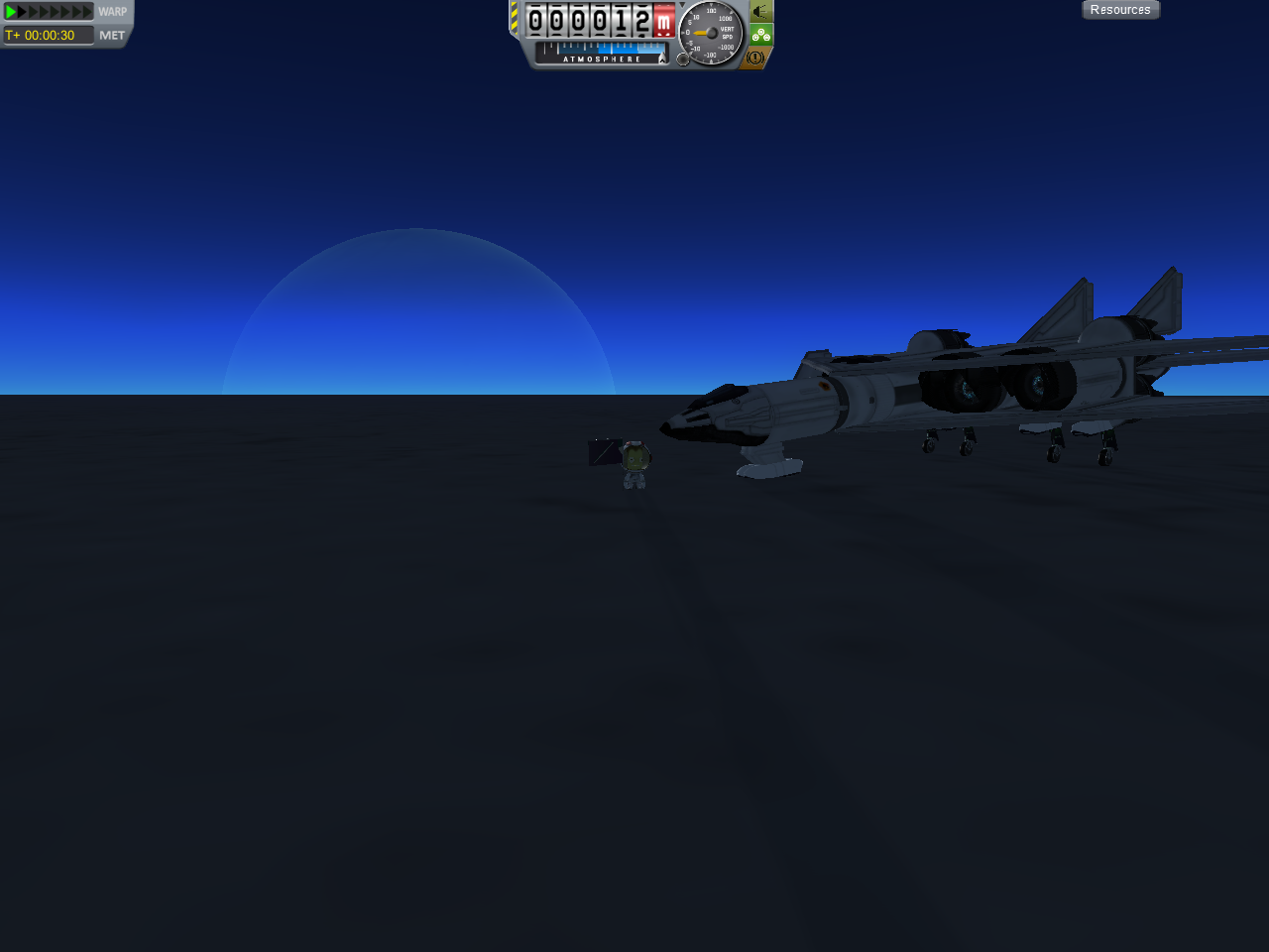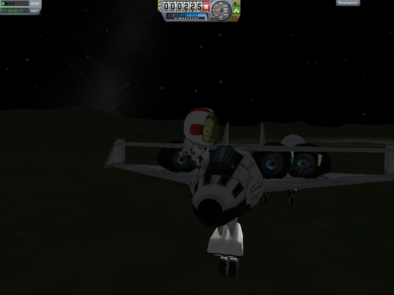 - so schnell wie möglich auf 20-24 km kommen und dort beschleunigen. Langsam steigen und ab 28-32km die Triebwerke drosseln. Bei 50% Schub die Nukleartriebwerke hinzuschalten und weiter drosseln. Bis eine Apoapsis von 60-80 km erreich ist. Geschwindigkeit ~ 2300m/s im Orbit. Dann Jet Triebwerke ausschalten.
