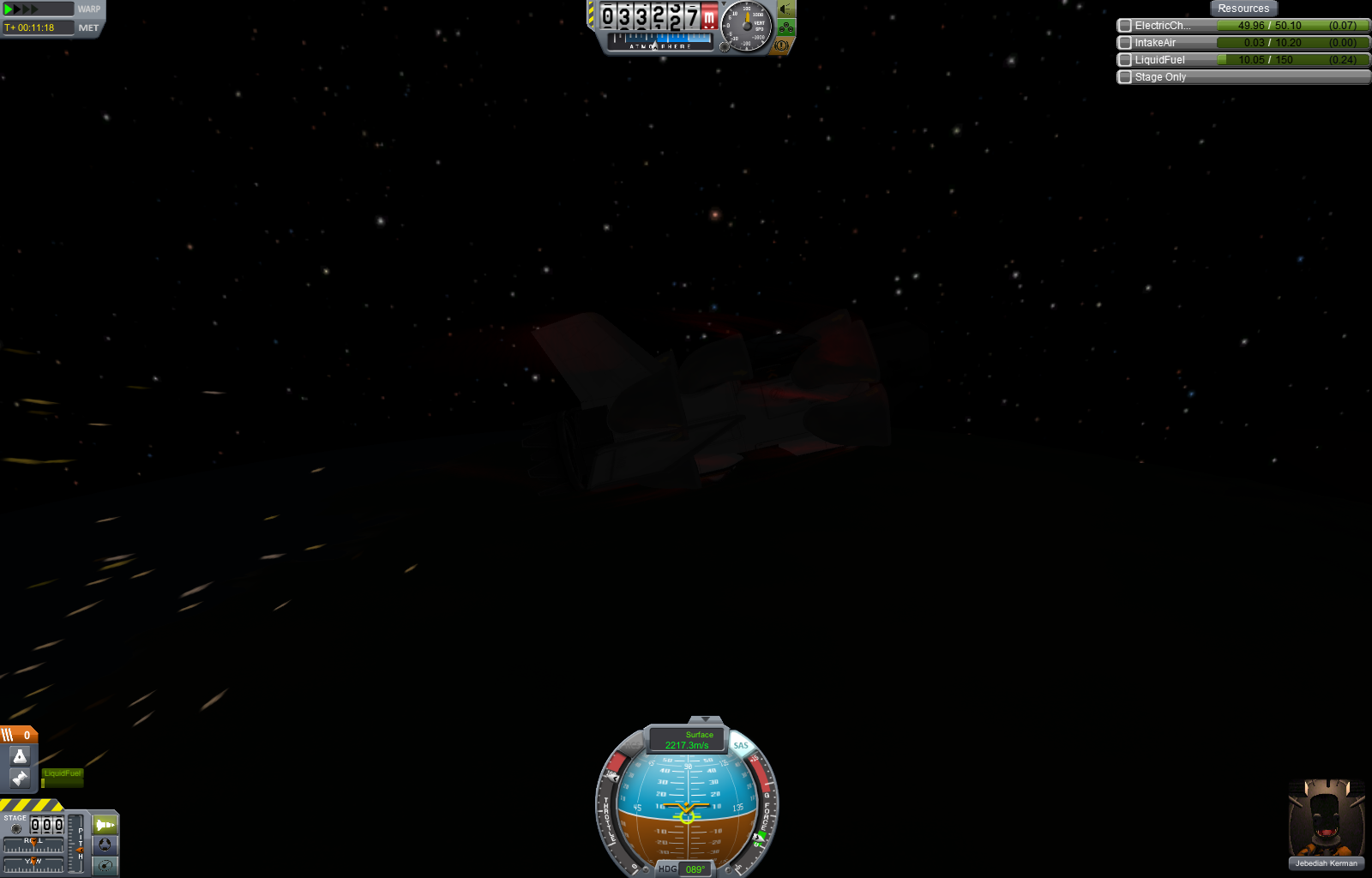 Ich find übrigens ganz witzig, dass man sieht das ich meinen Treibstofftank komplett leer geflogen habe und die glühenden, nicht komplett verbrannten Treibstoff Reste aus dem Triebwerk fallen