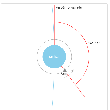 2. Die Flugbahn so aussrichten, dass die Rakete im ungefähren Abstand zu Kerbol wie der Planet steht. Der Winkel spielt dabei keine wichtige Rolle.