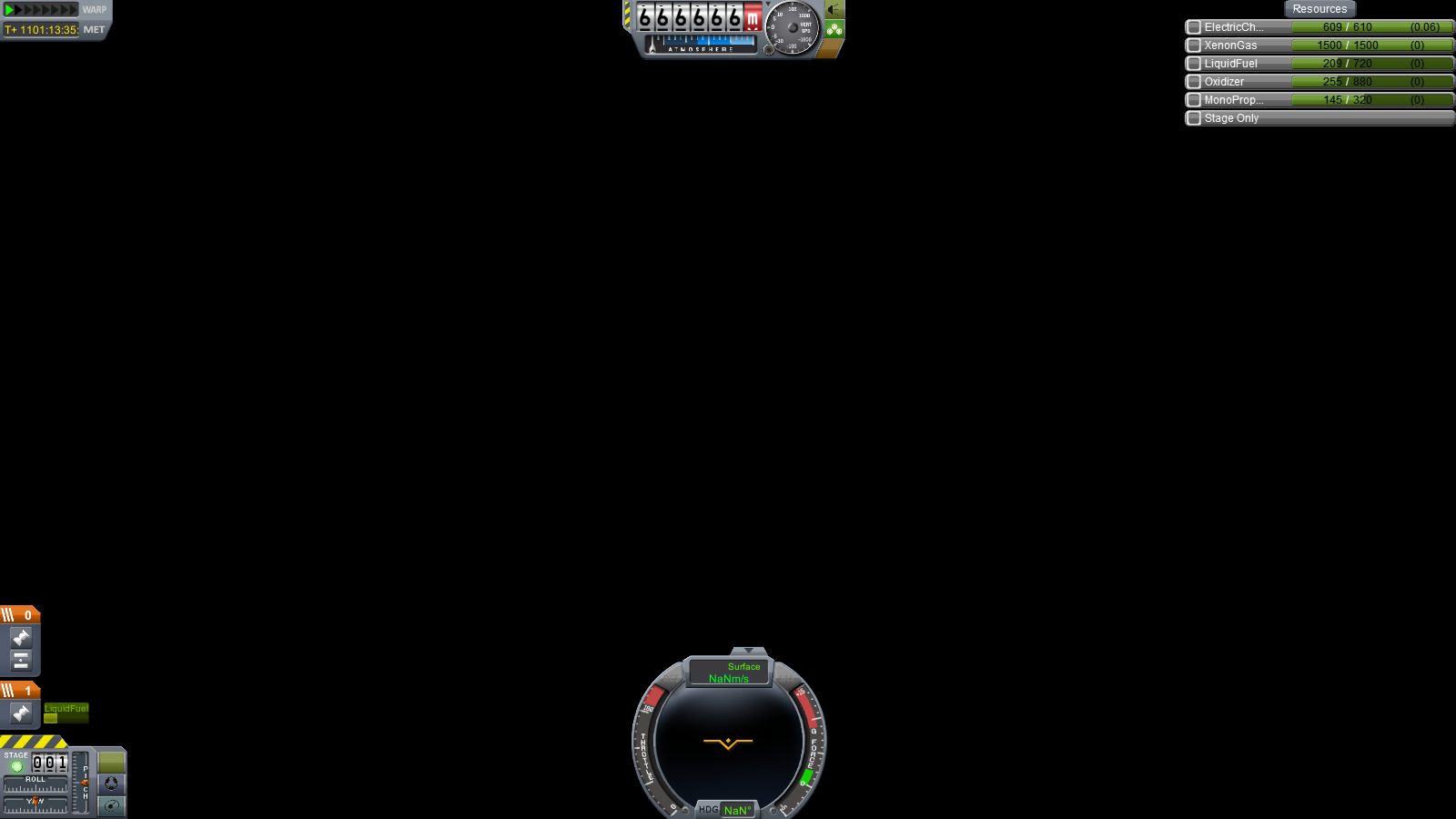 Ich hab Heut 3 Sonden im Sonnensystem rumfliegen lassen. Die Sonden sind alle 3 nach einander gestartet und ich hab allen ein Anflugziel "eingestellt" (also alle 3 hatten einen Incounter mit irgendeinem Planet). Dann ist die erste Sonde auf Eve gelandet (sollte eigentlich nur Aerobreak machen - war aber zutief). Dann wollt ich zur nächsten switchen und als das geladen war, hatte ich nur einen schwarzen Bildschirm. Bei der Höhenanzahl stand 666666 und bei der Geschwindigkeit NaNm/s. Aber warum erzähl ich das. Ich habs ja auch als Bild.