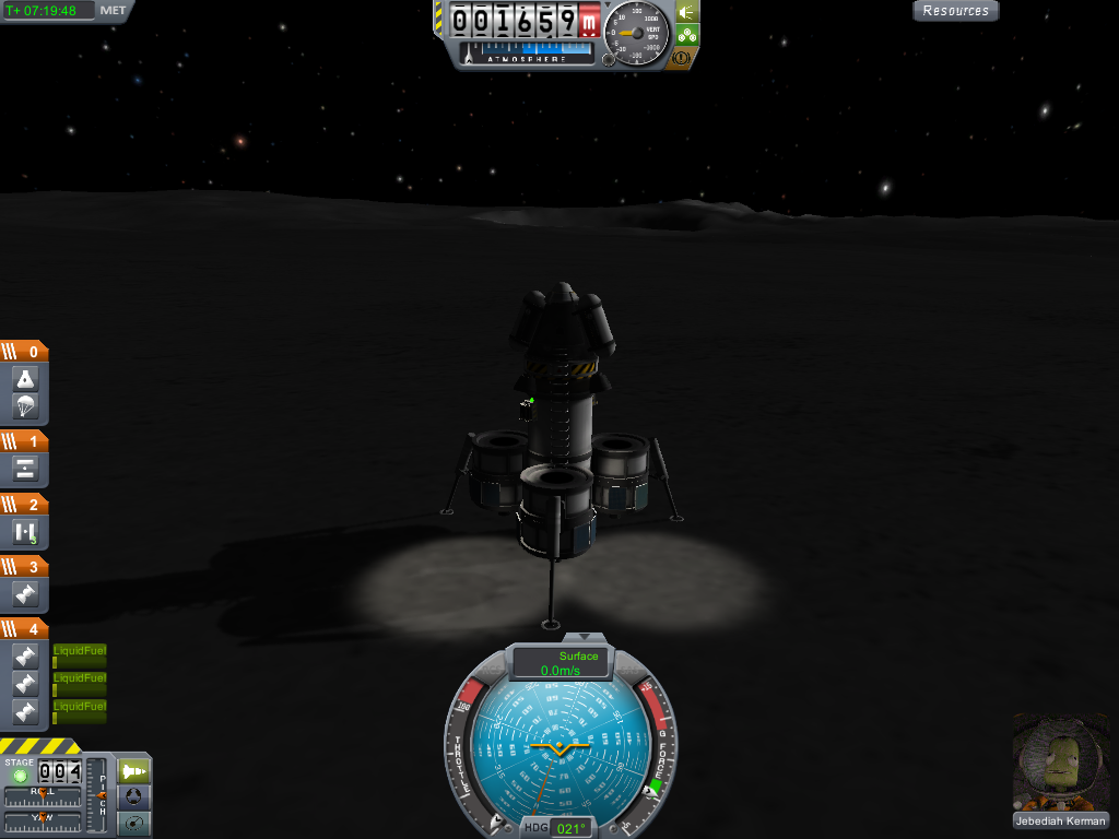 Das Umkippen des Landers kannst Du allerdings auch verhindern, indem Du das SAS eingeschaltet lässt. Das sorgt dafür, dass Deine Rakete immer so ausgerichtet bleibt, wie Du es "eingestellt" hast. Nur sollte man bedenken, dass ein aktives SAS immer Elektrizität braucht, also müssen ausreichen Batterien und am besten Solarzellen angebracht sein.