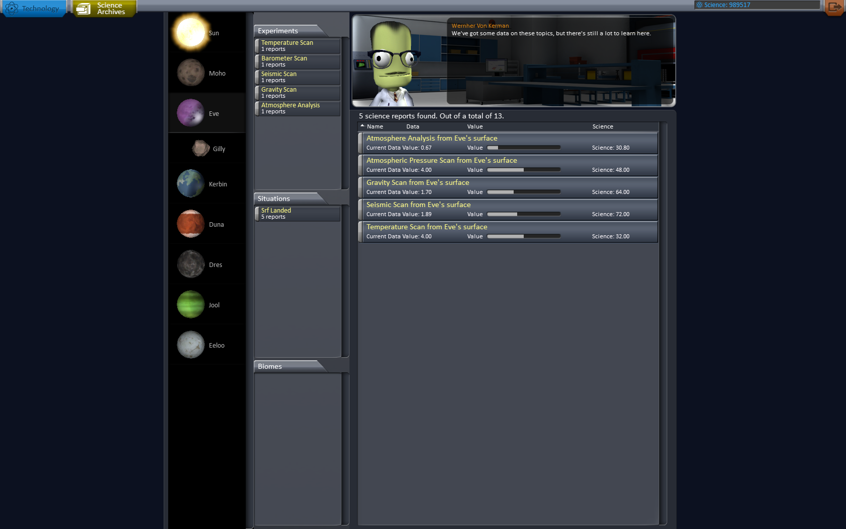 Außerdem war die Rakete auch zu overpowert.Wundert euch nicht über die vielen Sciencepunkte. Ich hab den Karriere Spielstand verändert und mit 999999 Sciencepunkte gegeben um alle Teile freizuschalten, im Sandbox wird die Science zusammenfassung leider nicht angezeigt