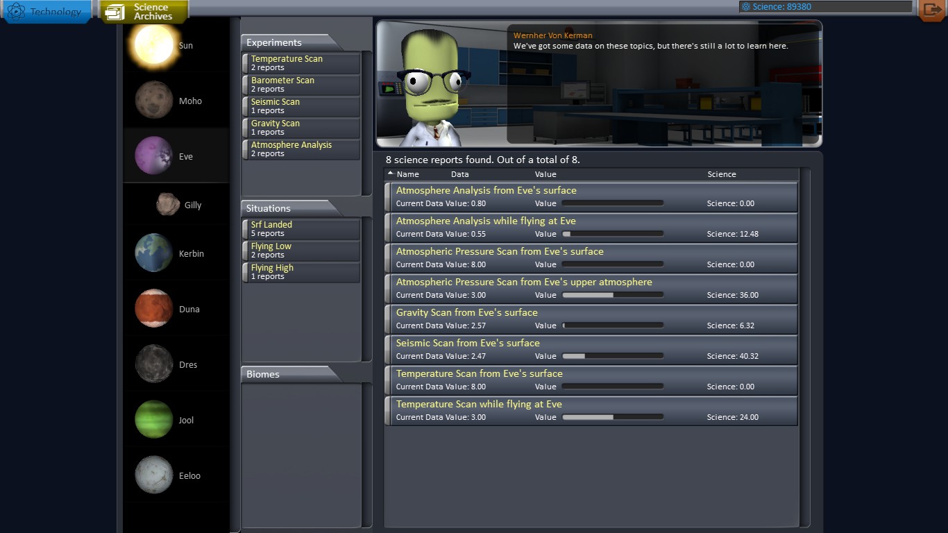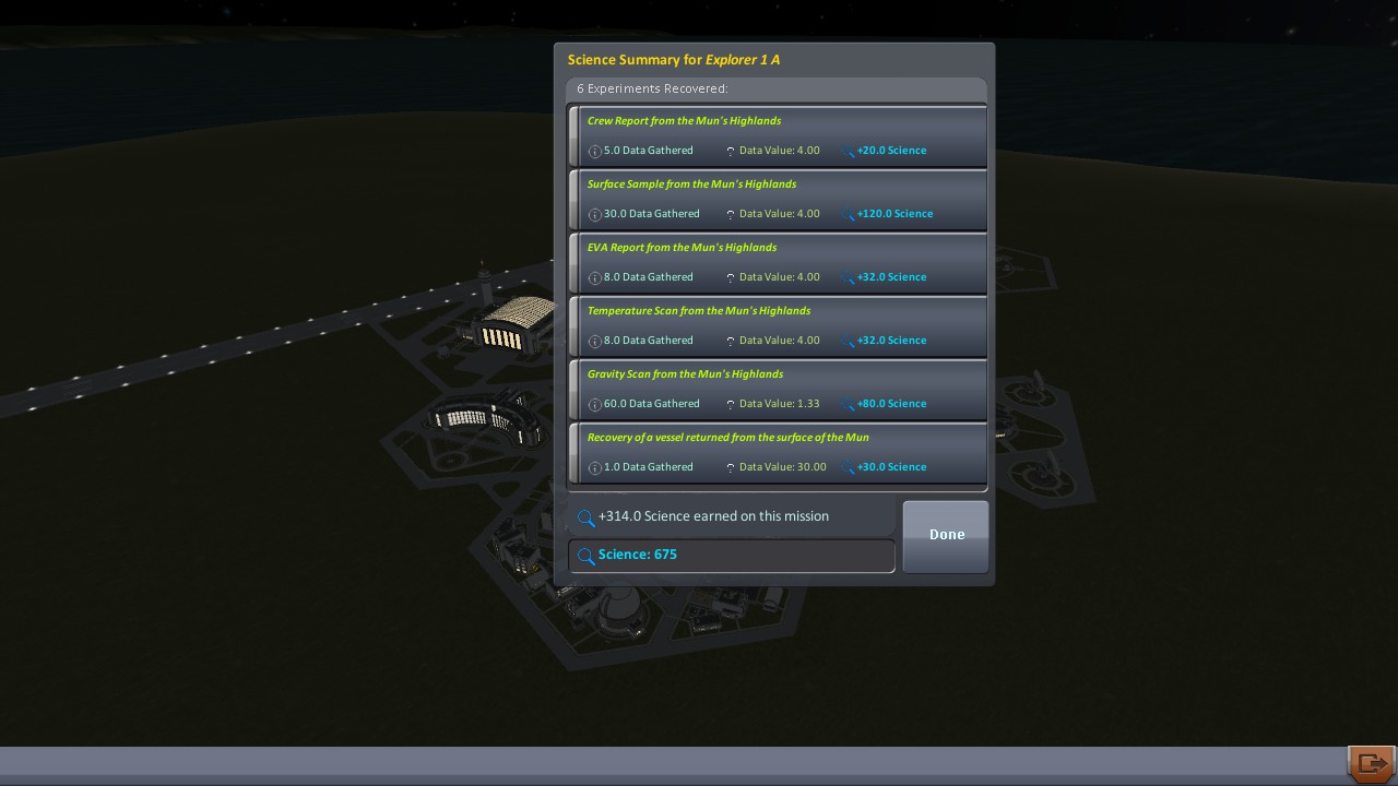 falls ihr euch fragt, warum beim science bekommen Nacht ist, das hat was mit dem biom zu tun, was nicht weit von mir entfernt liegt (die Badlands, das war aber nur Zufall). Bin hingelaufen mit Jeb und damits schneller geht, hab ich den warp hochgedreht. :D