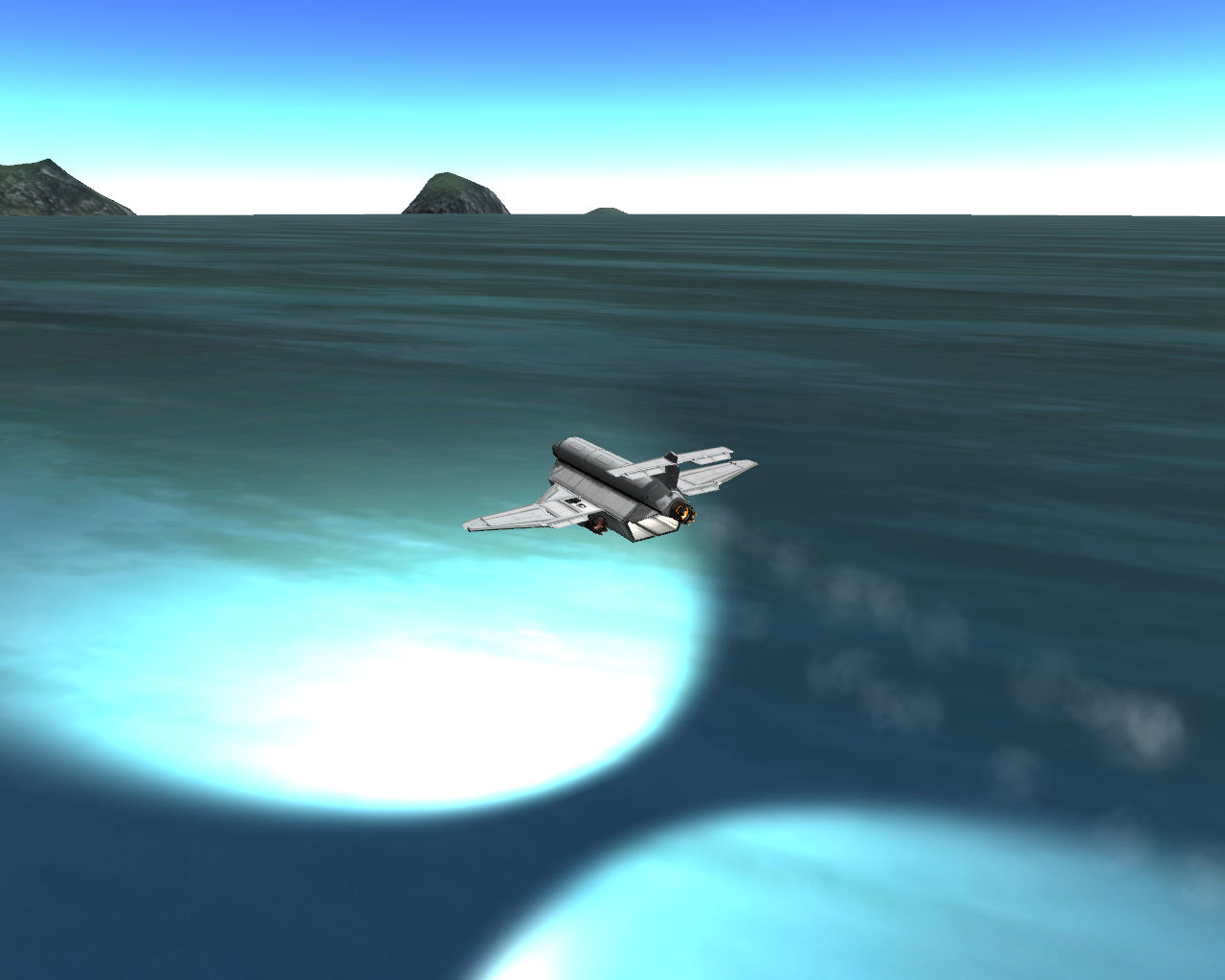 Aus einem 150 Km Orbit suchte ich mir dann nahe des Äquators eine interessante Inselgruppe aus, bei der ich hoffte so nahe wie möglich an einem Strand zu landen, um nicht zig Kilometer fahren zu müssen. Beim ersten Versuch wäre ich mitten im großen Landabschnitt vor den Inseln gelandet, beim zweiten Versuch habe ich die Pe etwas höher gesetzt und ich sollte die erste Insel, sehr dicht am "Wasser" erreichen. Beim Landeanflug, ca. 40 Km über Null, habe ich schon bemerkt das es nicht ganz reichen wird, also gab ich Vollgas in Richtung 90° um den Strand noch zu erwischen ^^. Das hat prima funktioniert und ich landete wie "voraus berechnet" mit ca. 200 m Abstand zum Strand, bei 2,2 m/s auf der Insel.