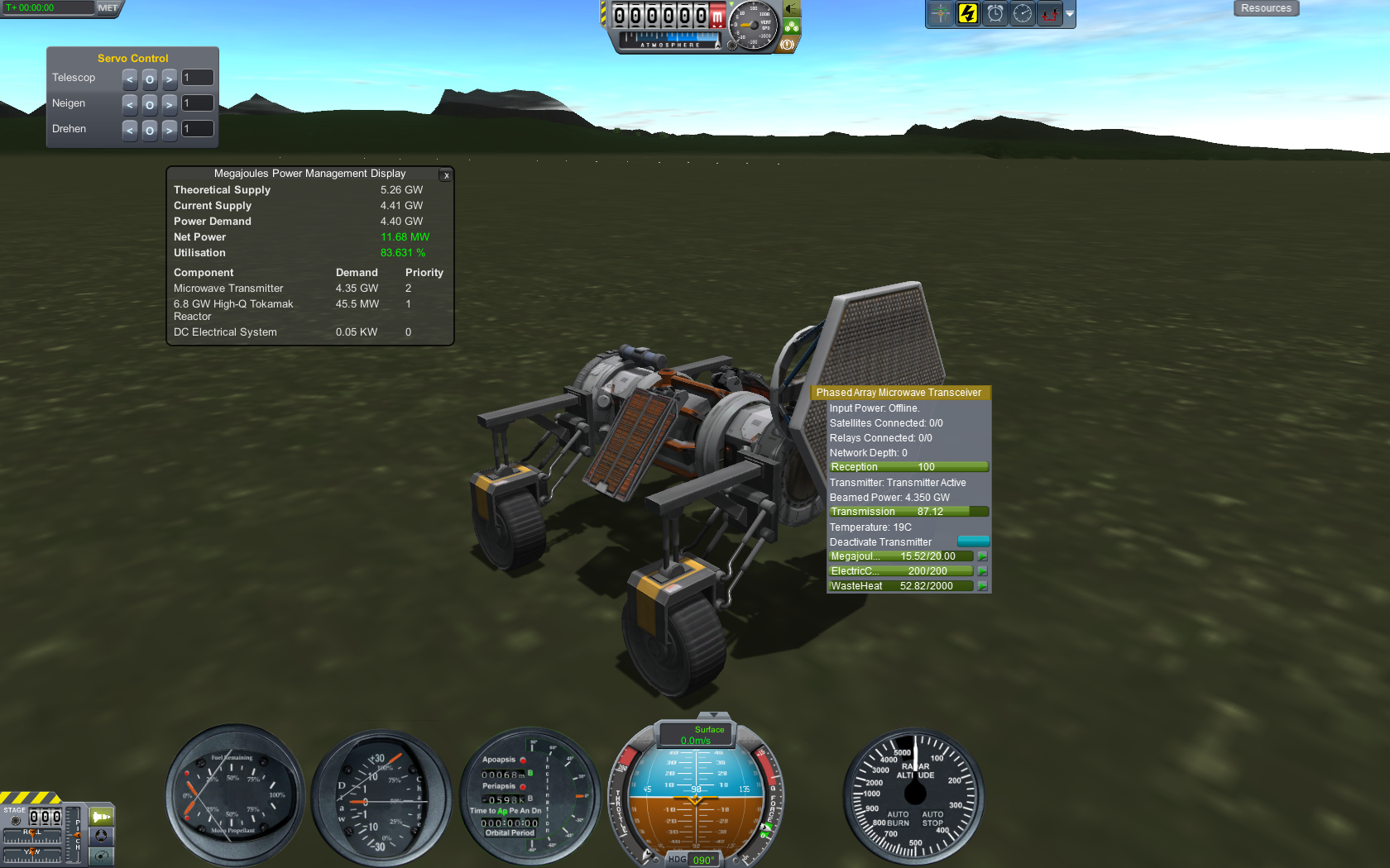 Ich versuche zur Zeit um Kerbin ein Energienetzwerk aufzubauen. Funktioniert soweit gut, aber: Wie bekomme ich eine Konfiguration hin, bei der genug Antimaterie gesammelt wird, um parallel einen 3,76 Reaktor zu betreiben? Sobald ich auf Transmitter schalte, ballert das System die volle Energie raus und verbraucht dann deutlich mehr Antimaterie, als generiert wird. Ich bin auf 890 km, was so ziemlich das Optimum für Kerbin darstellt. Die Mod lässt es ja zu, dass ich mich vom Satelliten wegschalte - dann bleibt sein Energie-Sendestatus ja unverändert erhalten. Weil ich diese Satelliten aber gleichzeitig als Kommunikationssatellit nutzen will muss ich doch hin und wieder hin und dann ist die Antimaterie alle und ich muss wieder von einer reinen Sammelstation aus neu versorgen. Immer ein ziemlicher Akt.