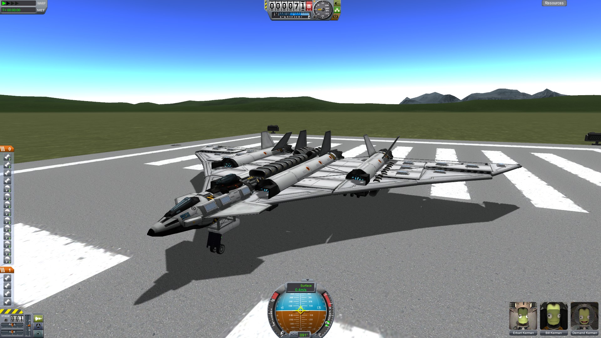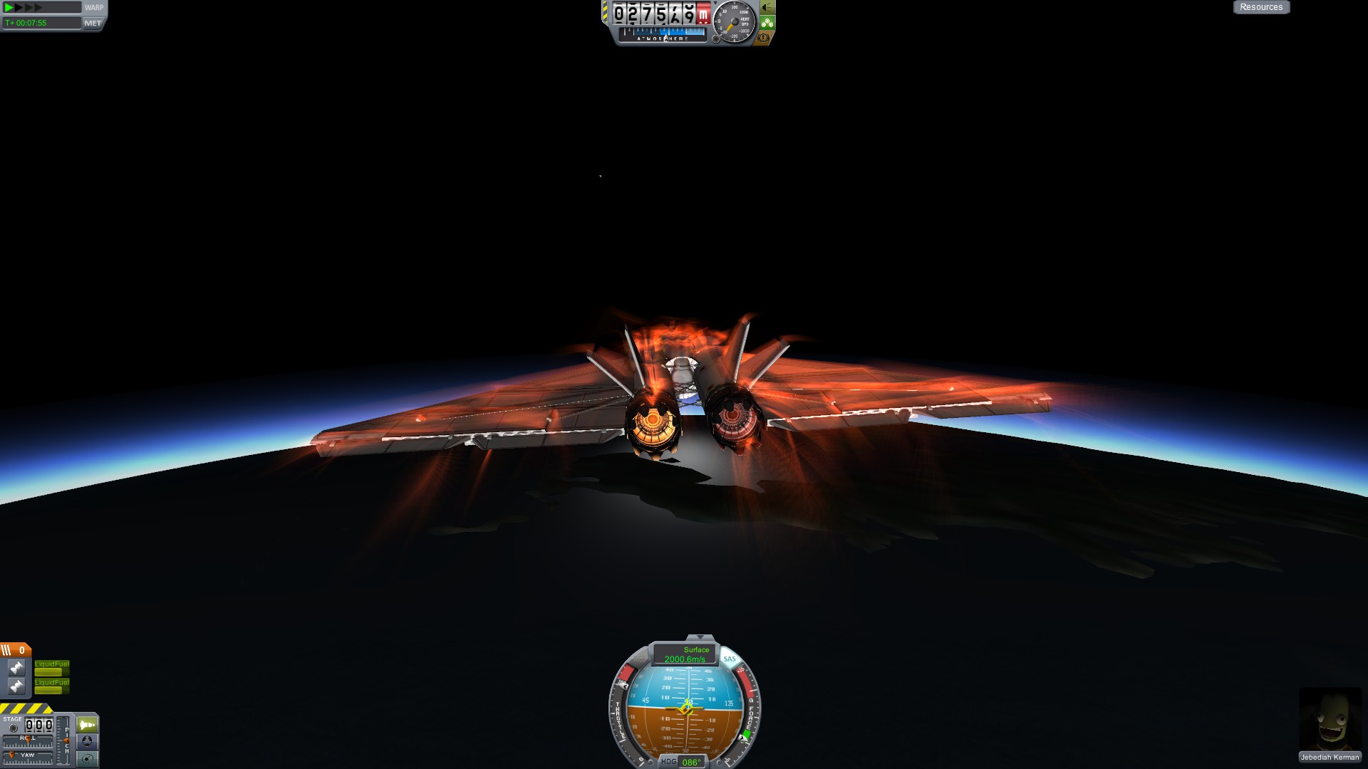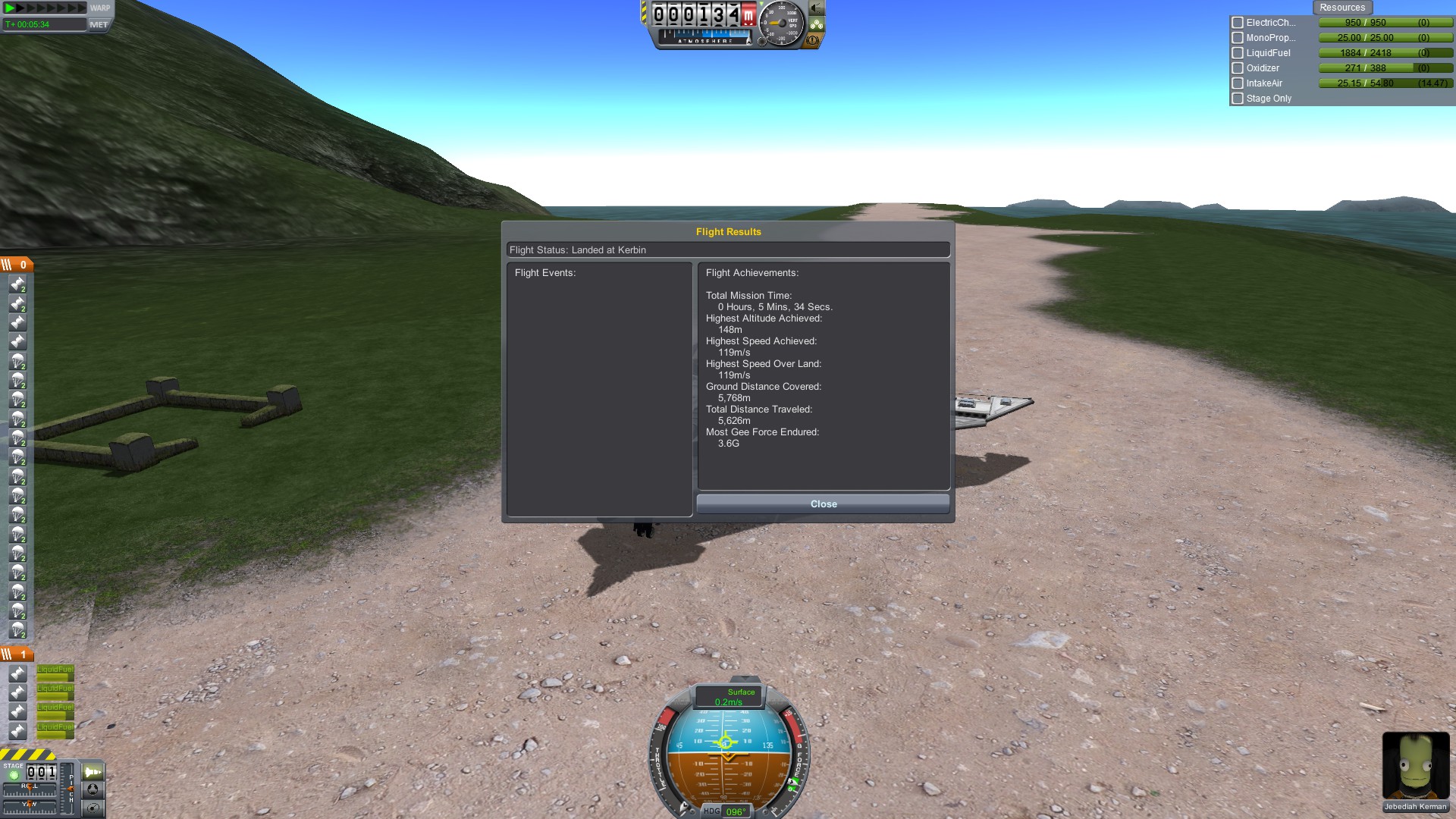 Nach unzähligen Versuchen - trotz der relativ einfachen Aufgabe - habe ich's nun endlich geschafft. Ich bin mir ziemlich sicher, dass es etwas gibt das den Versuch ungültig macht und verspreche hiermiet mich niiiiieeeee wieder mit dieser Aufgabe zu befassen. Hab's mit grossen Jets versucht, mit kleinen, mit dünnen usw. und alle waren geeignet, aber meine Geduld nicht. Zeitrafferkraken an der Tagesordnung. Dabei müsste man meinen, das mit meiner KSP-Erfahrung sowas leicht von der Hand gehen müsste. Wie dem auch sei, hier die Screenshots, hoffentlich genügen sie! :)