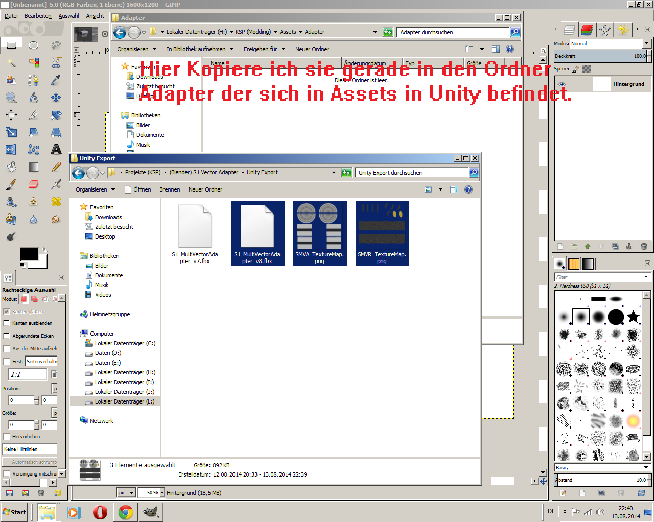 Dieses Blendfile hab ich jetzt in den Assets Ordner von Unity kopiert und wenn ich jetzt Unity starte, kommt die Meldung: "Blender funktioniert nicht mehr"