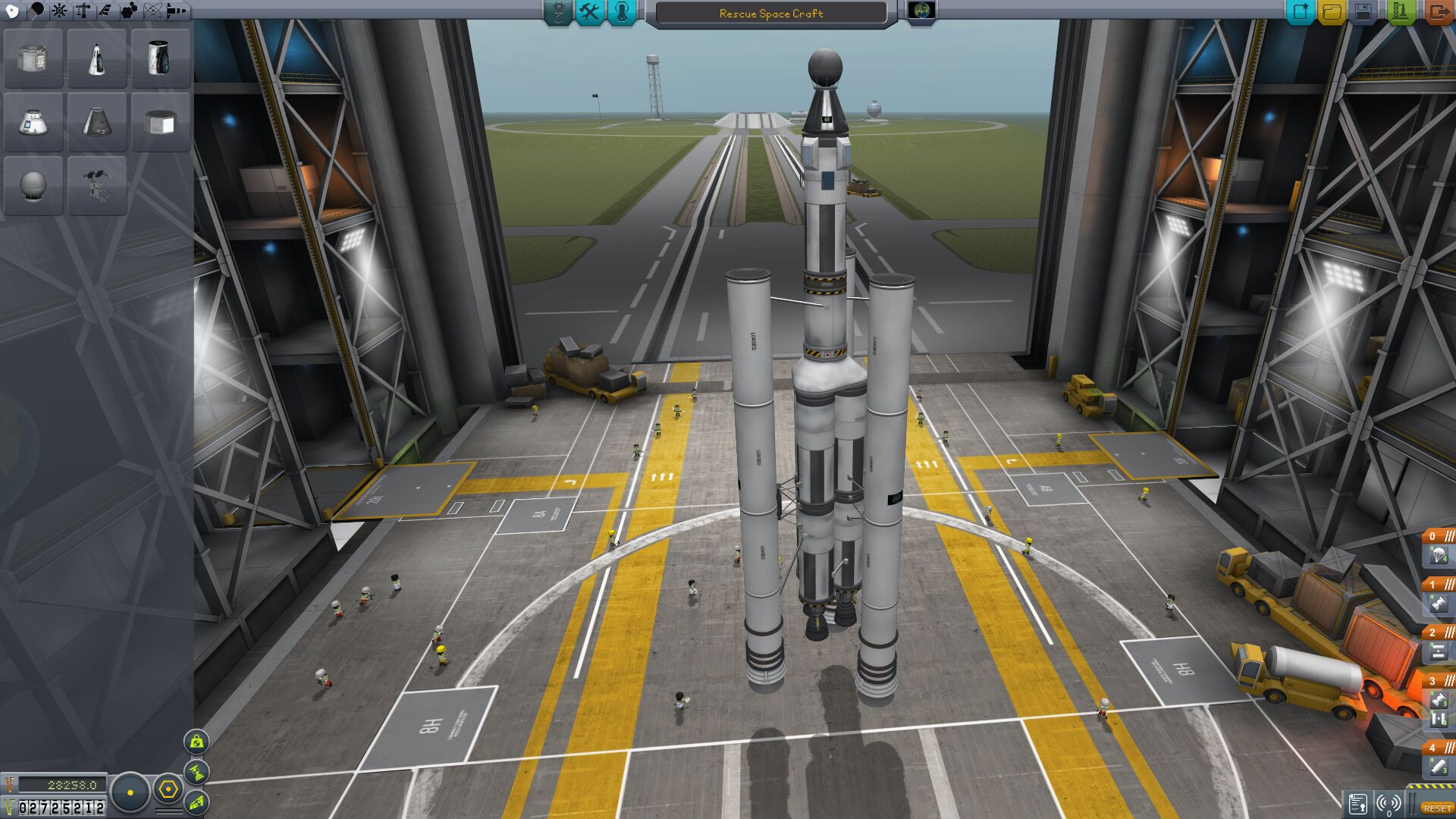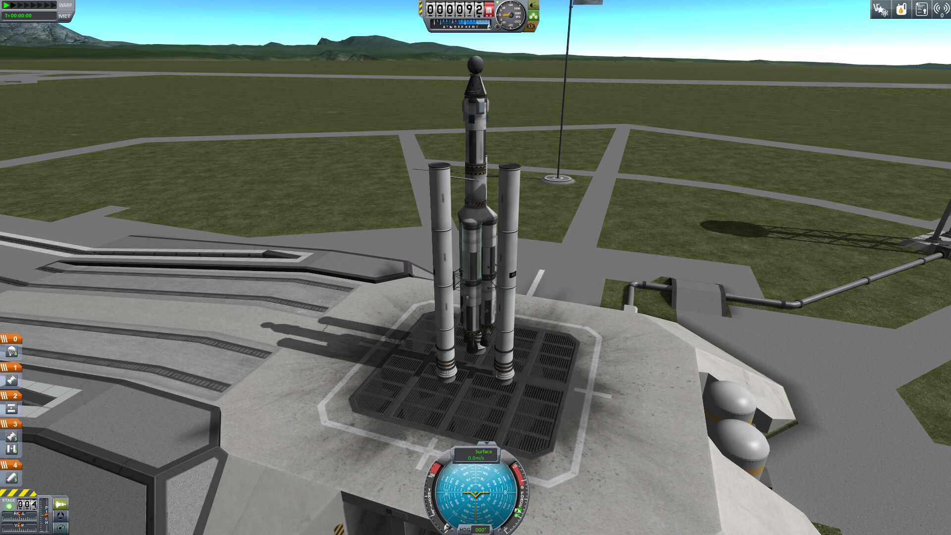 Du verwendest 3 ganz große Booster, 3 TV-30(?) Engines, und auch noch ein größeres Triebwerk mit größeren Tank in der Endstufe.