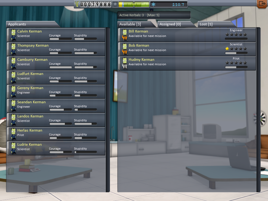 Bild eures Kerbalnauten und seinen "Beruf" (bei mir war es Bob Kerman)