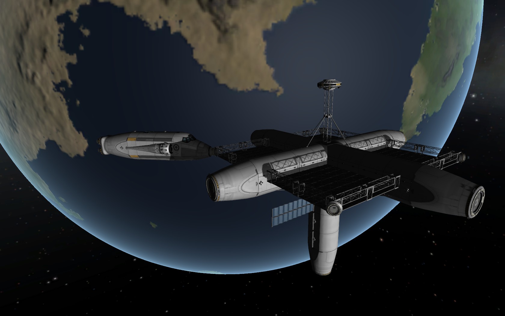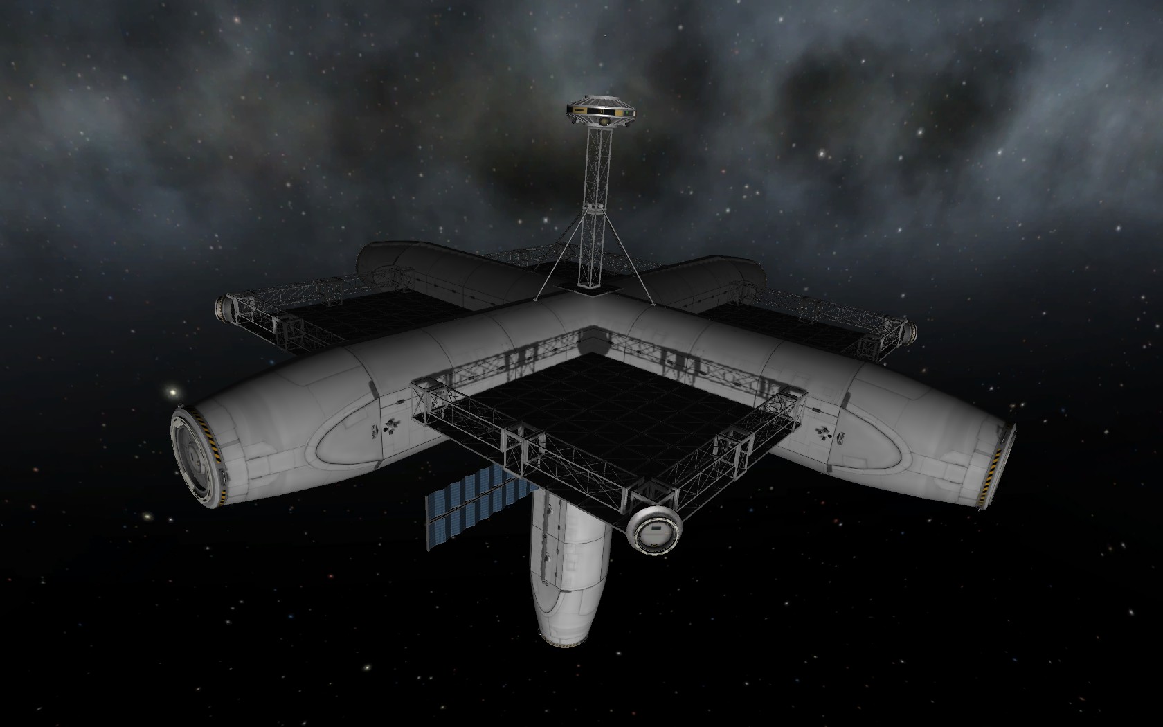 KSP hat kaum Struktur-Teile. Die einzigen brauchbaren Teile sind diese grauen Platten und Träger um (grosse runde) Formen herzustellen. Und das Ding (Event Horizon) müsste wirklich gross werden. Mal schauen, wenn ich Zeit habe setz ich mich mal ran.