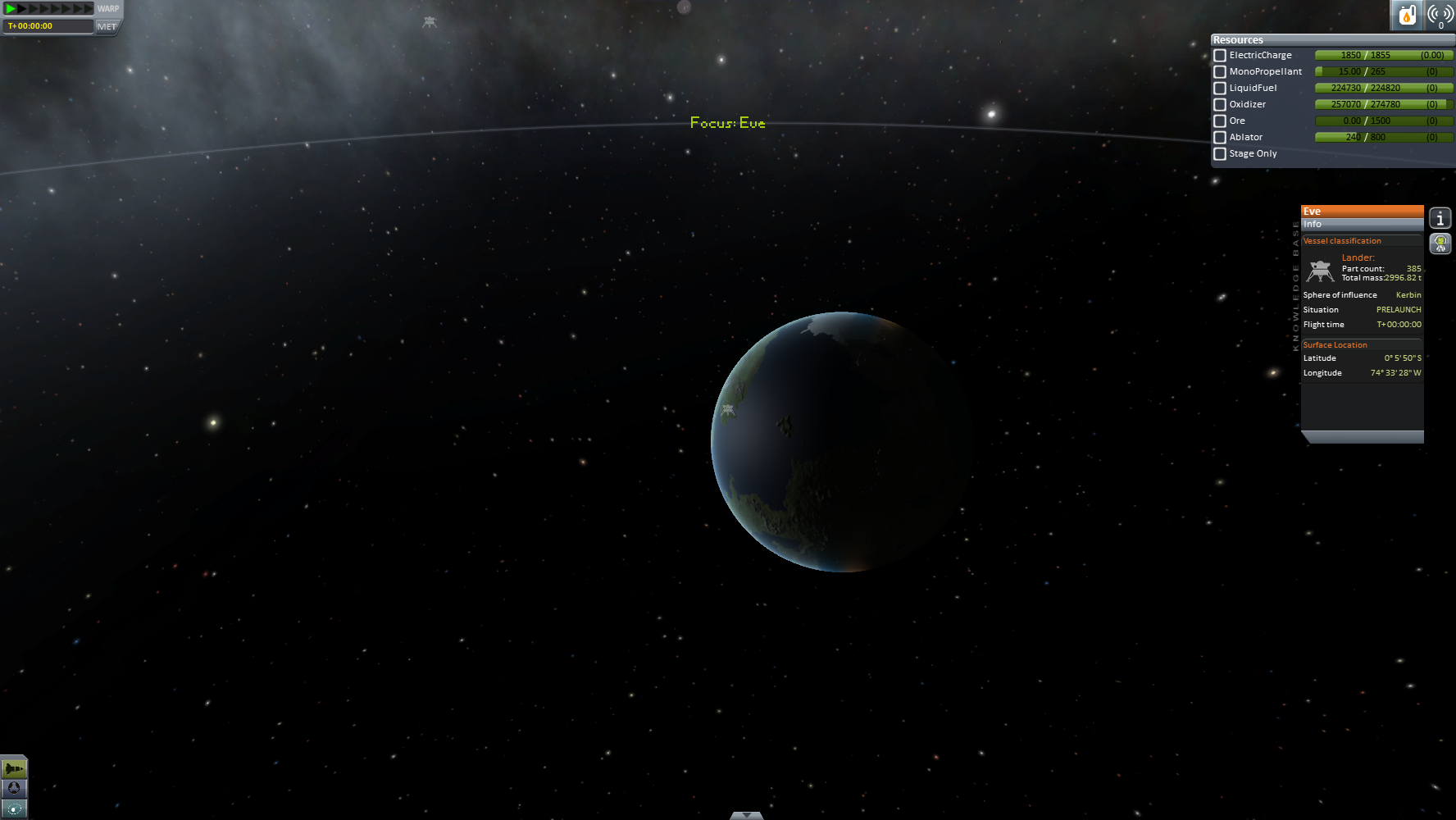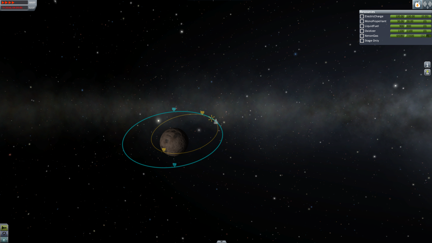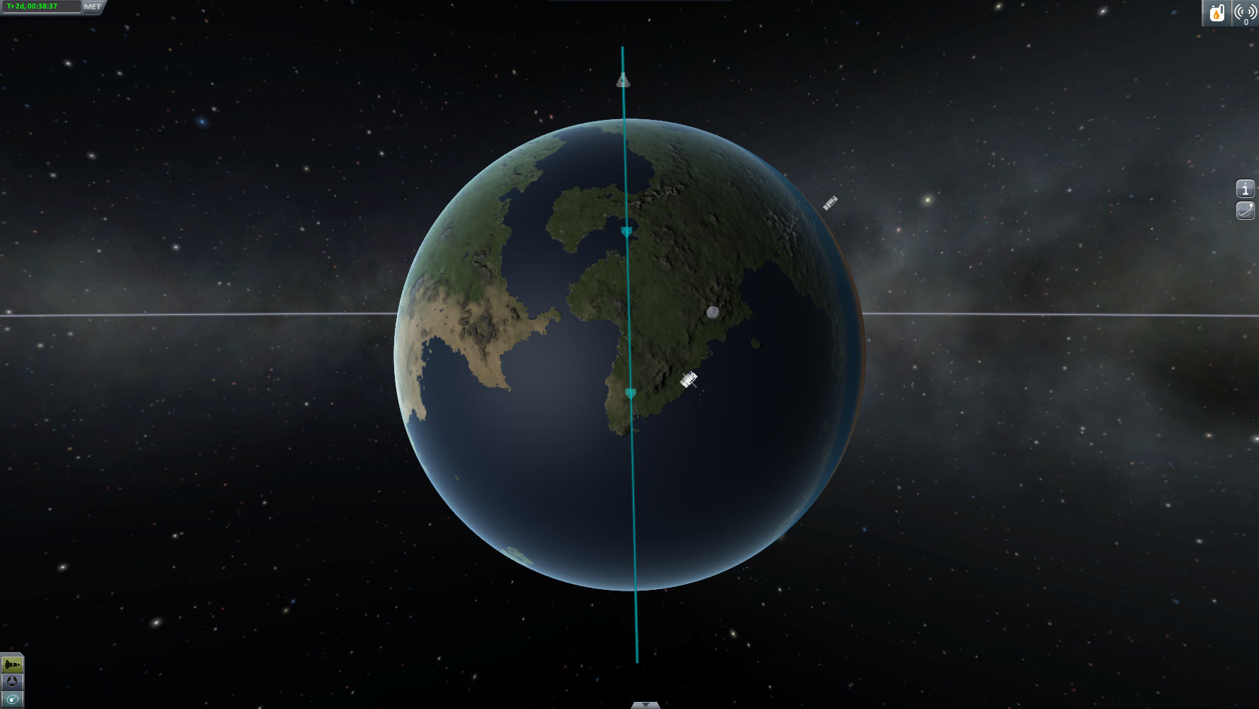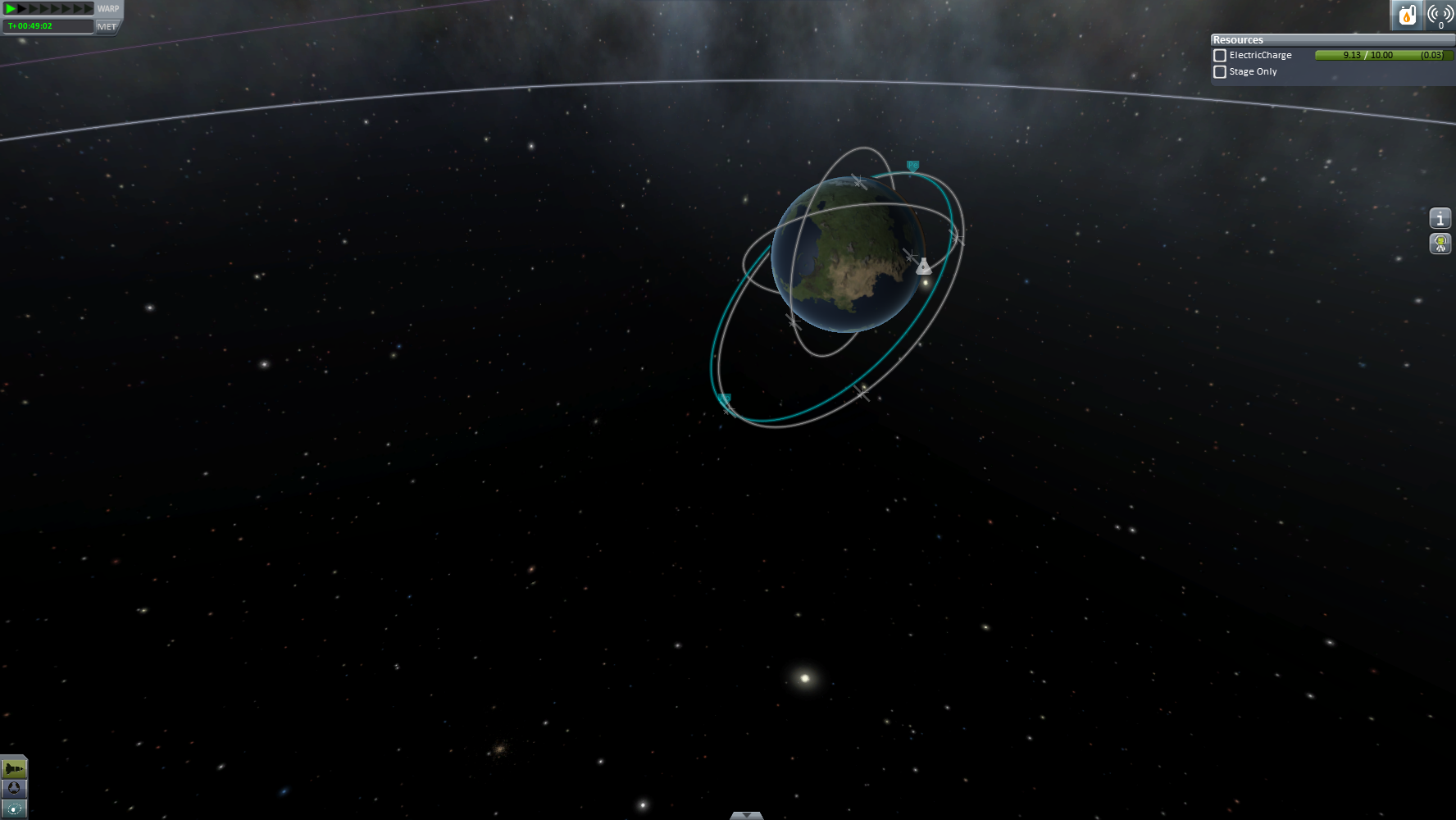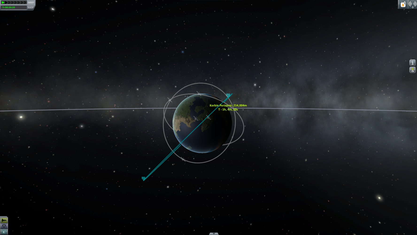 Da ich wusste, dass das EE am Äquator war, wollte ich in einen entsprechenden Orbit einschwenken. Kurz bevor ich die Apoapsis erreicht habe, um einen stabilen Orbit zu erreichen war das EE in Sicht.