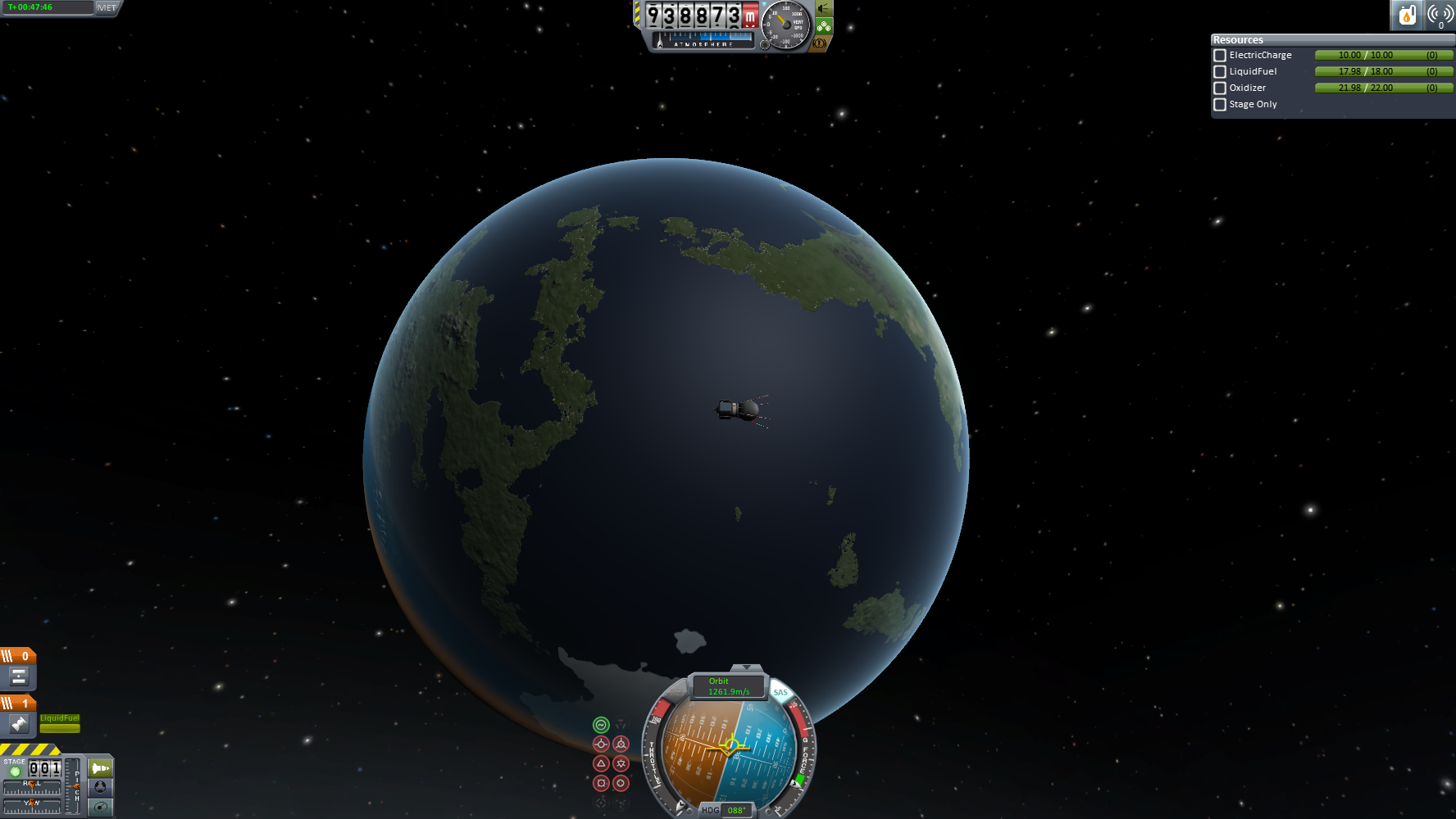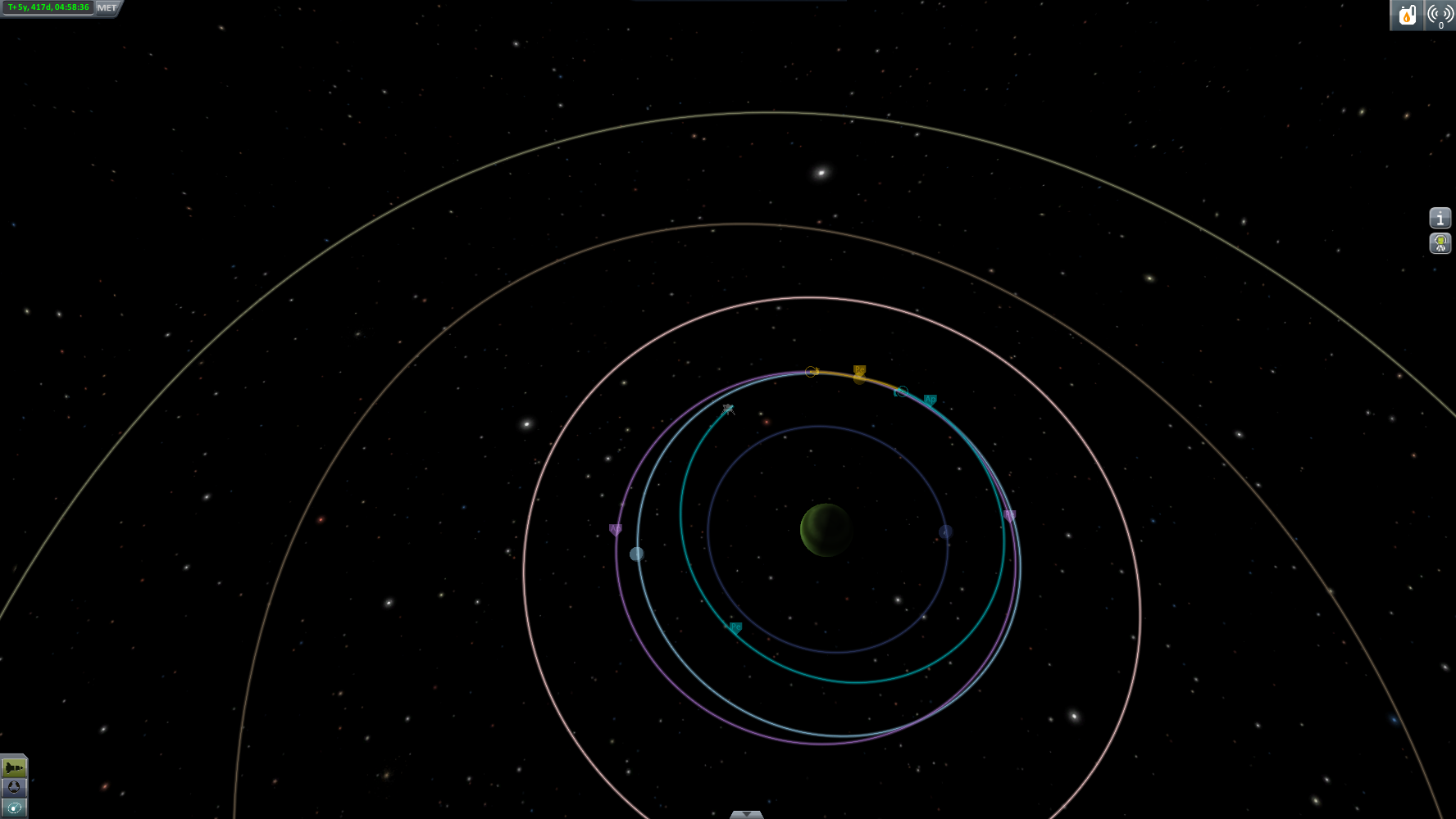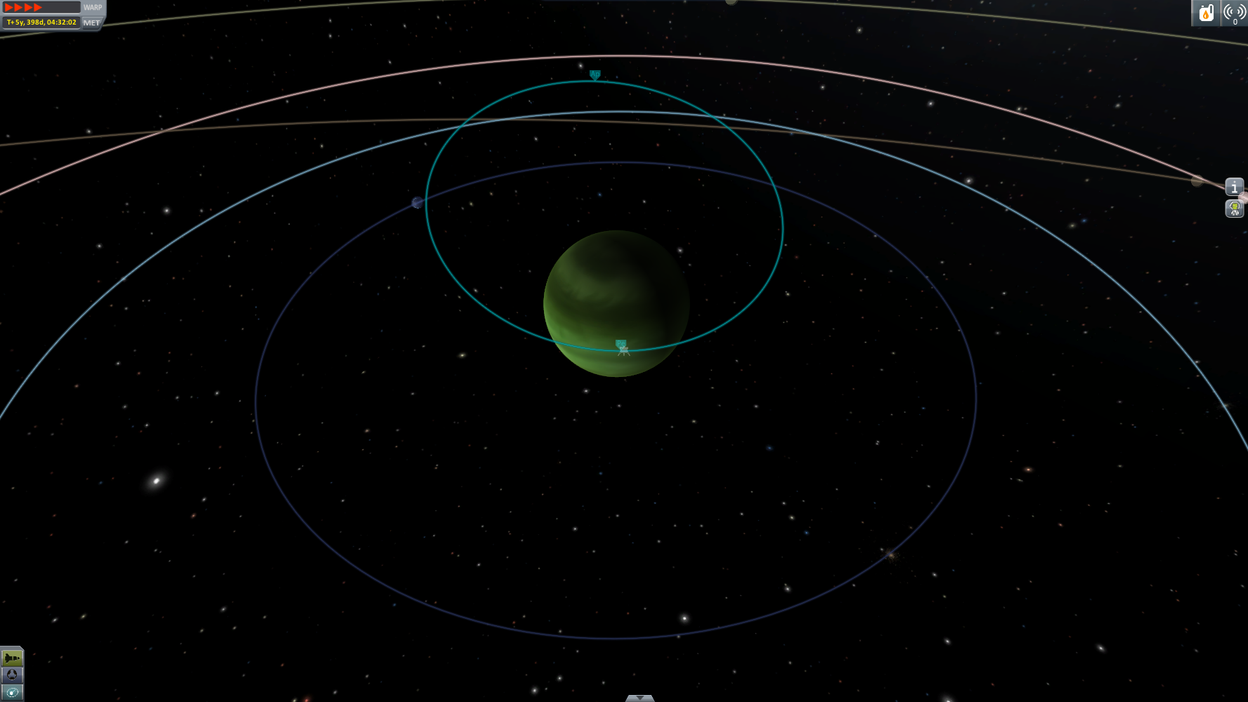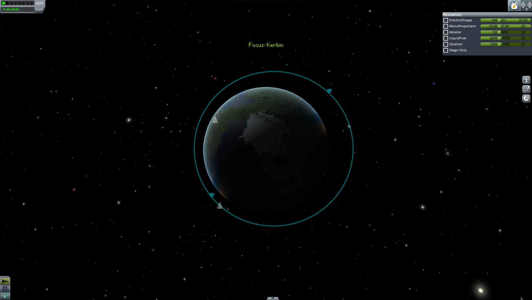 Da ich wusste, dass das EE am Äquator war, wollte ich in einen entsprechenden Orbit einschwenken. Kurz bevor ich die Apoapsis erreicht habe, um einen stabilen Orbit zu erreichen war das EE in Sicht.