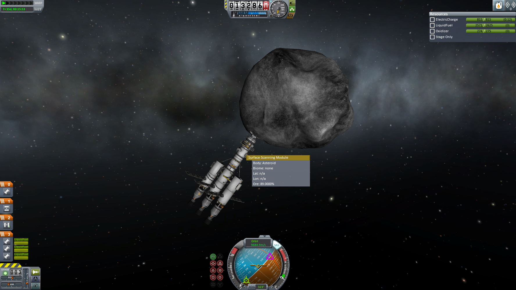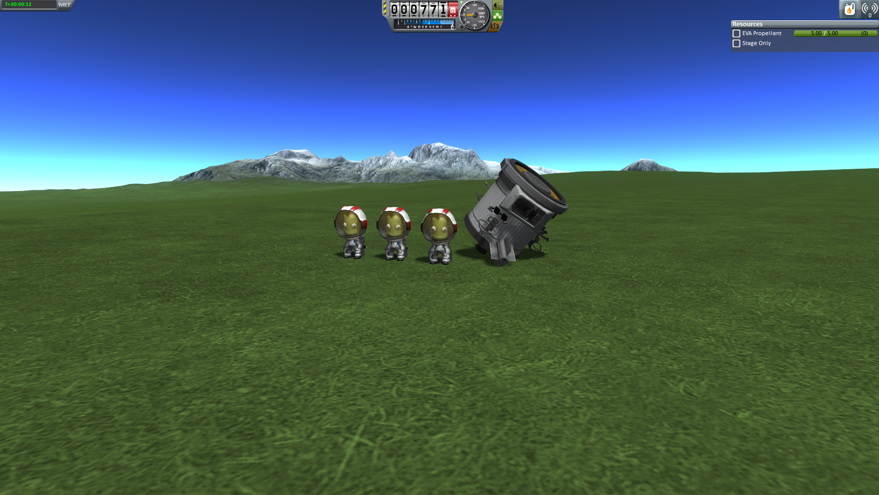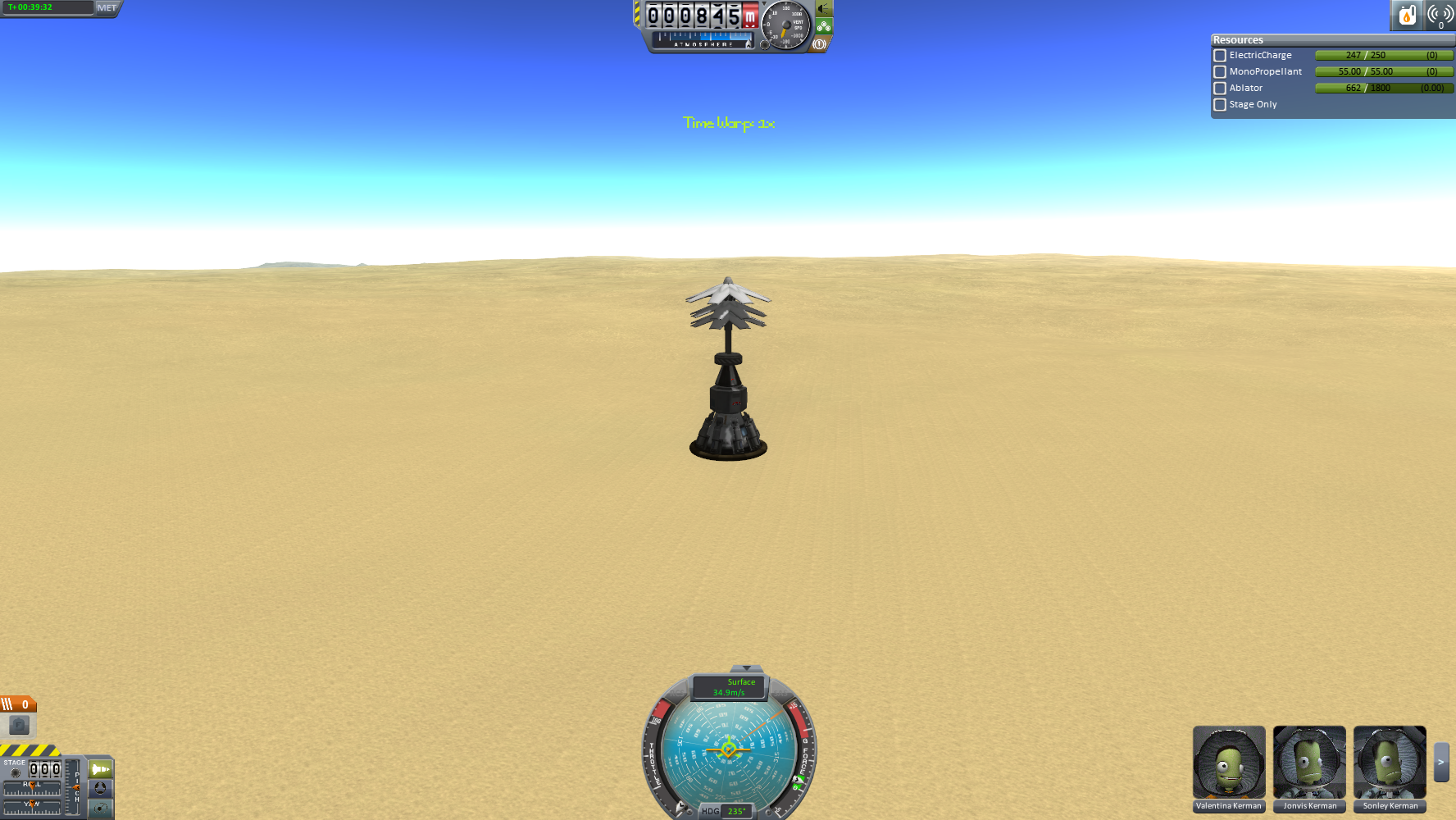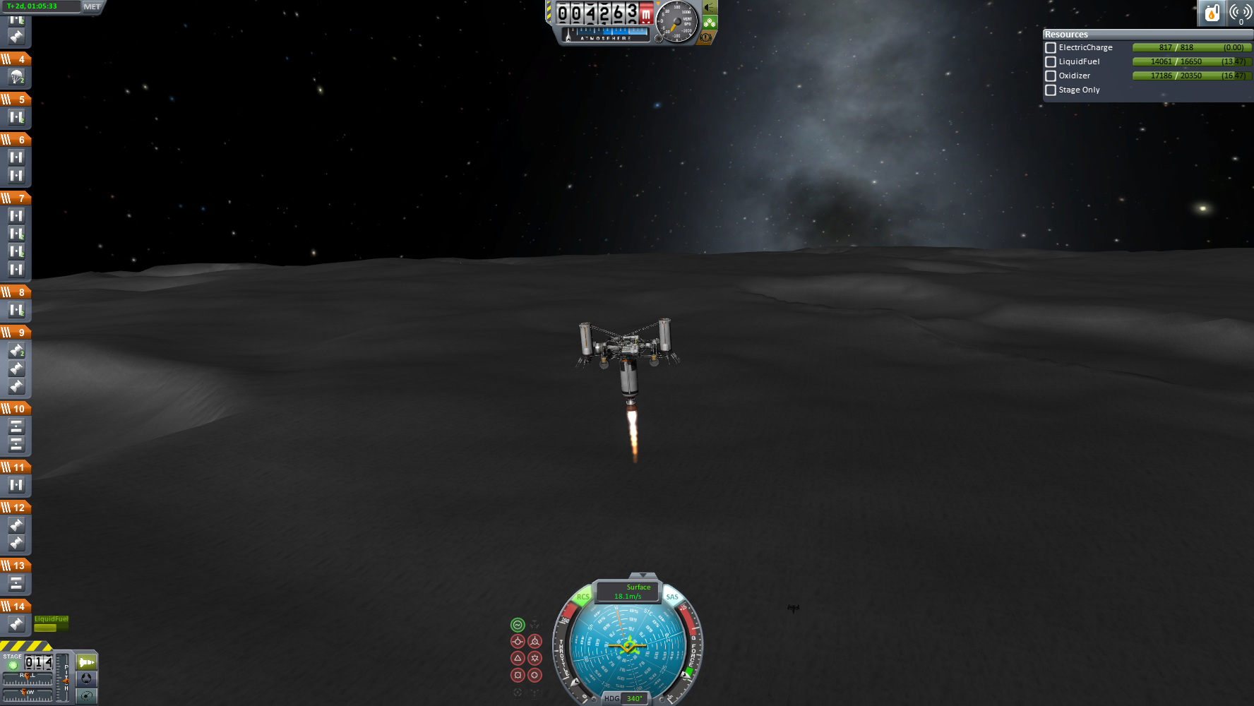 Die Landung verlief problemlos und der Lander hat noch genug Sprit um wieder in den Orbit zu kommen.Betrachtet den übrigen Treibstoff im Mohoorbit sieht man, dass ein Rückflug wahrscheinlich möglich gewesen wäre, wenn das Schiff besser gestaltet wäre. Hierzu hätten die Xenontanks direkt auf dem Ionentriebwerk angebracht und mit Sitzgelegenheiten versehen werden müssen.. Der Lander müsste an der Spitze positioniert werden.