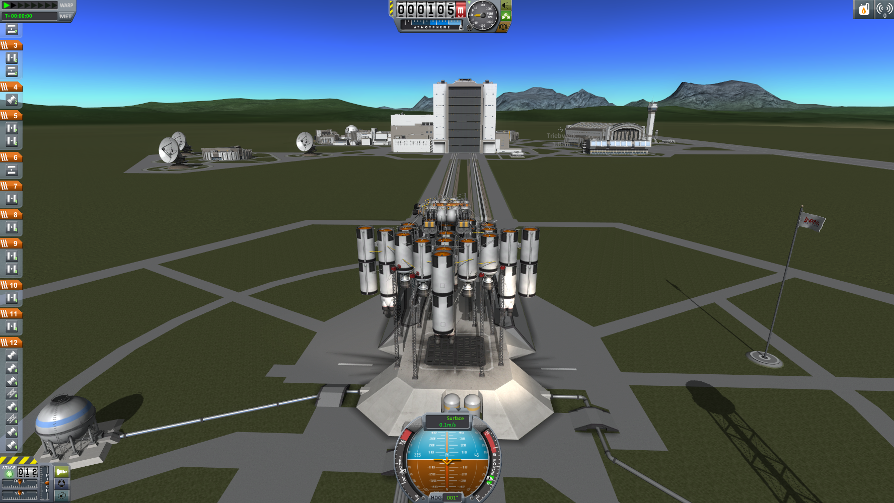Da ich Flugzeug und Rakete nicht beide als eigenständige Objekte bauen kann, habe ich mich entschieden zuerst die Rakete im VAB zu planen, dann den Speicherstand im Hangar zu öffnen und das Flugzeug als Sub-Assembly an das Haupttriebwerk zu bauen.