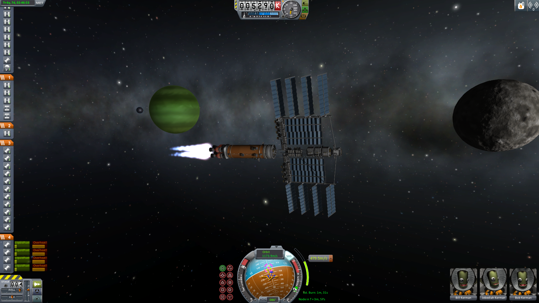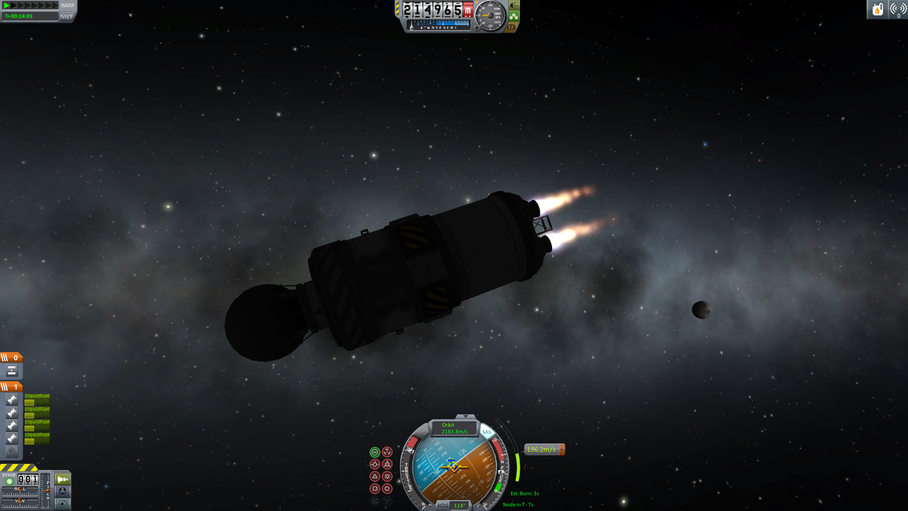 Im Orbit wurde der Lander zurückgelassen, Bill und Jebediah stiegen um und das Schiff wurde für den Rückflug vorbereitet.