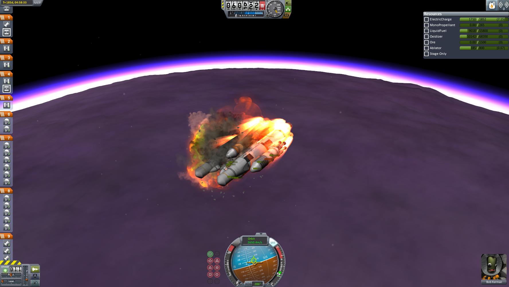 Hier bin ich mit einer abgetrennten Stufe kollidiert, die mir ein paar Sonnensegel abrasiert hat.