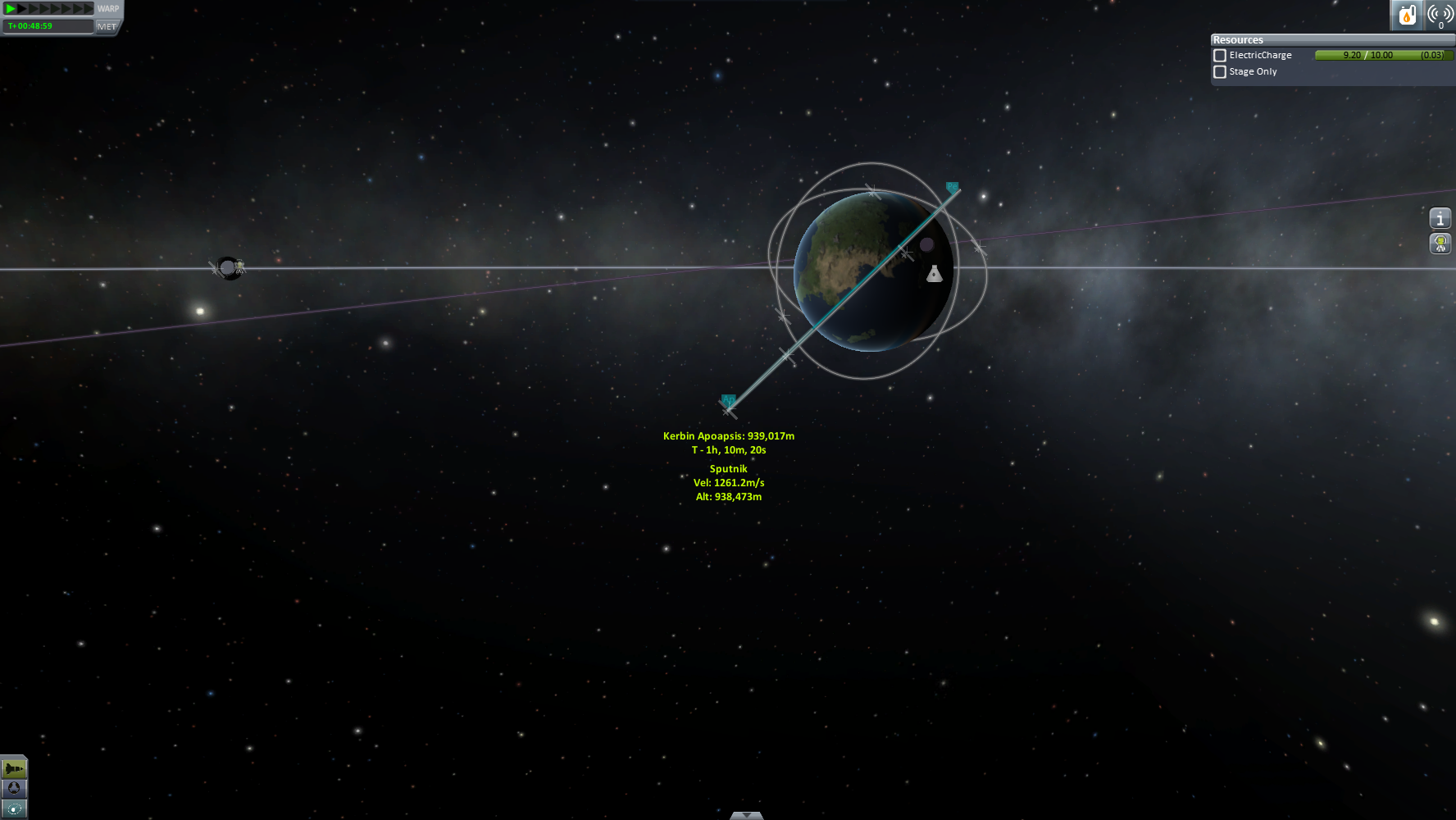 Da ich wusste, dass das EE am Äquator war, wollte ich in einen entsprechenden Orbit einschwenken. Kurz bevor ich die Apoapsis erreicht habe, um einen stabilen Orbit zu erreichen war das EE in Sicht.