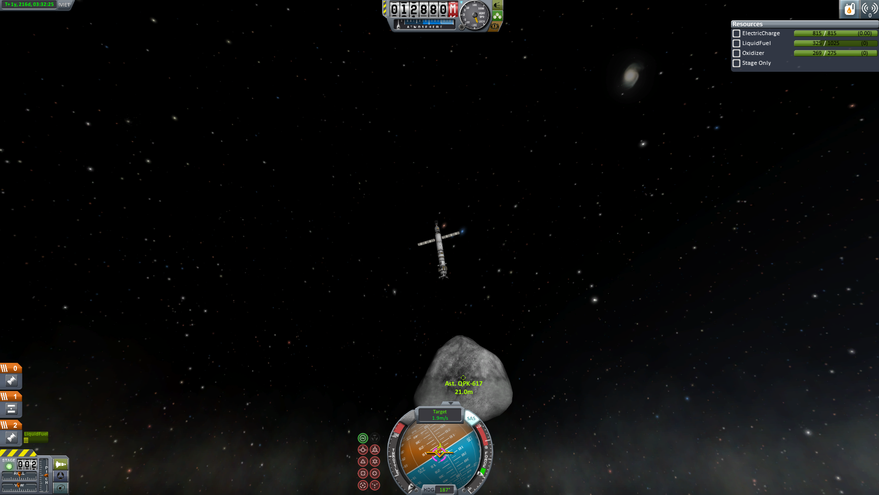 bei der dritten "Landung" bemerkte ich meinen Fehler. Eigentlich hätte mein Ziel ein großer Asteroid sein müssen. Dieser Asteroid war aber klein. Ich habe noch einmal die Namen verglichen. Leider bin ich versehentlich noch einmal auf dem ersten Asteroiden gelandet. -