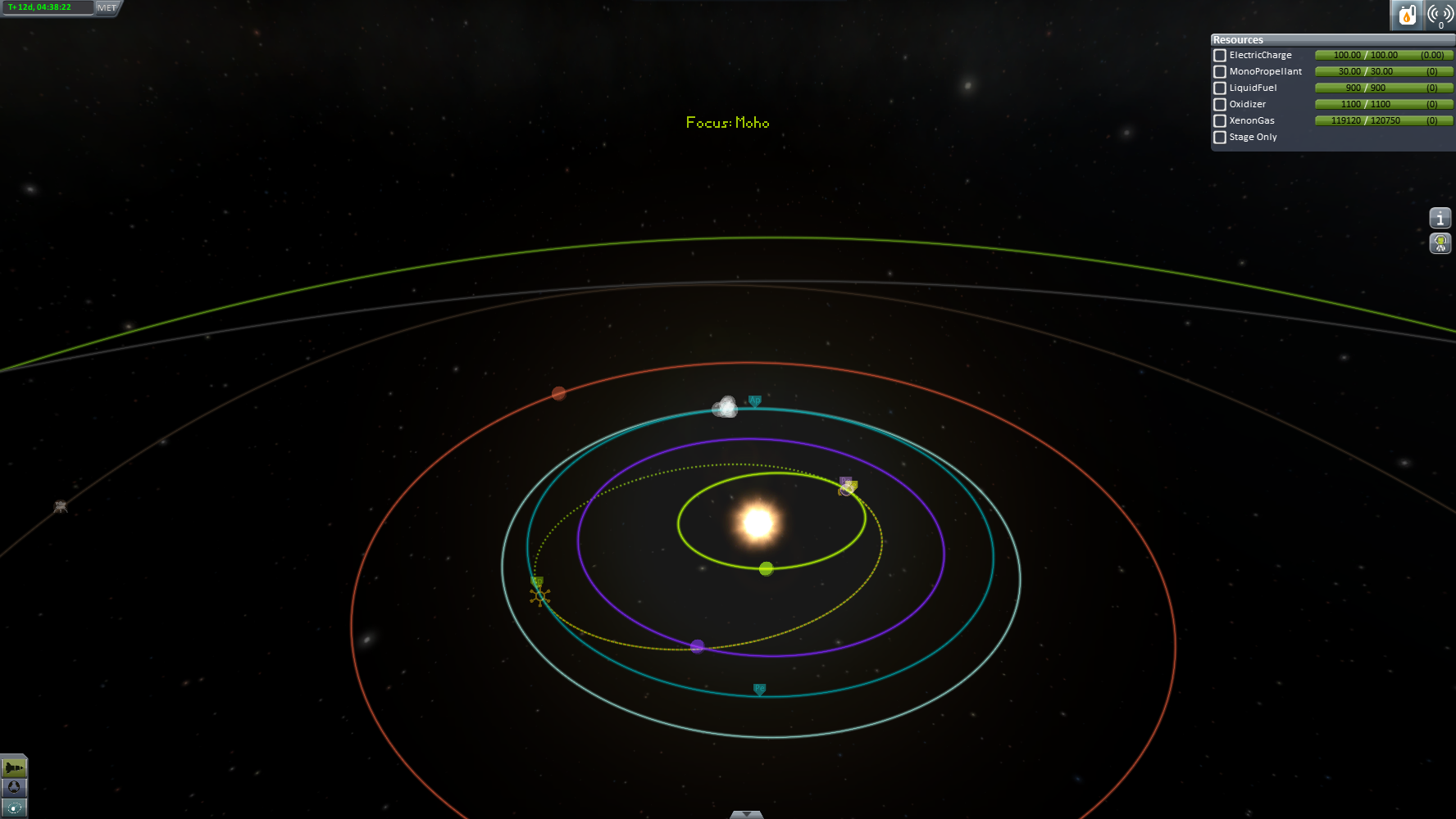 Beim Einschwenken in den Transferorbit hatte ich riesiges Glück, dass die Position der Planeten günstig war. So konnte ich bereits nach einem viertel Jahr mit dem Manöver beginnen. -