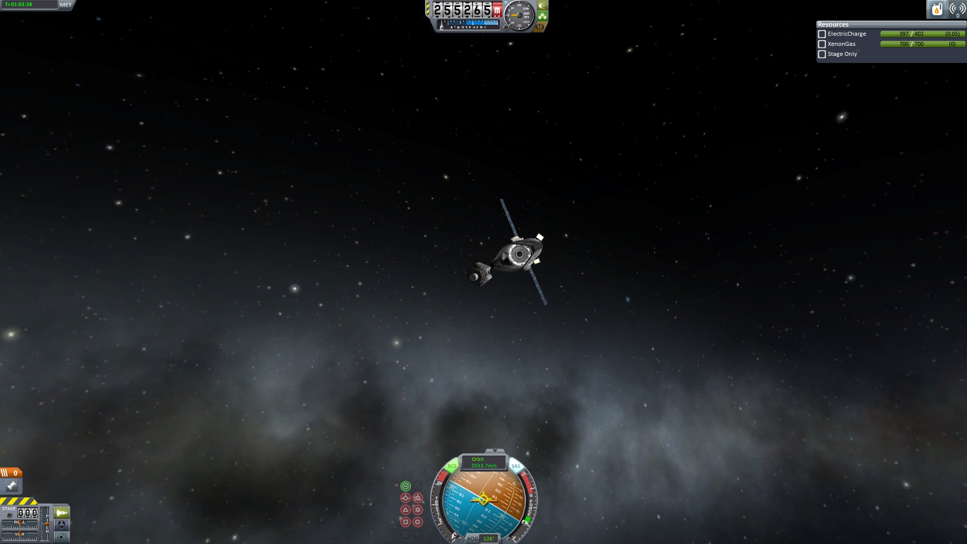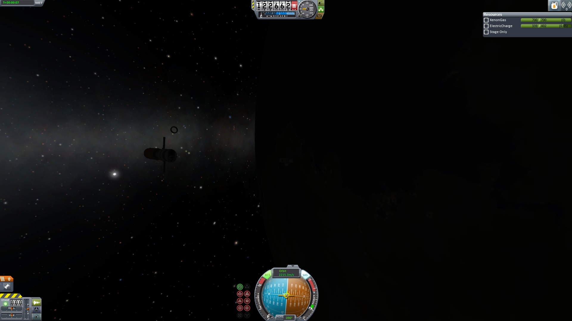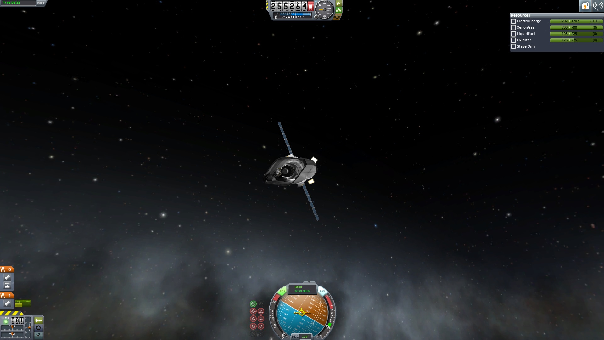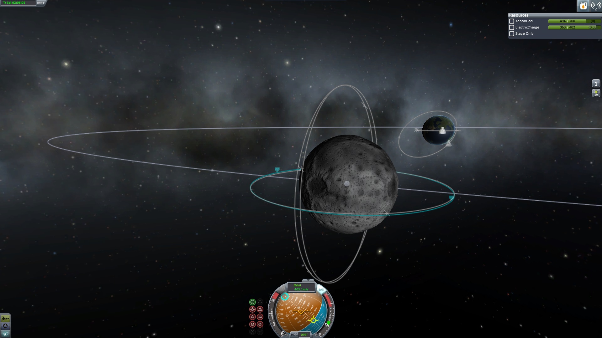 Für die Sonde hieß es dann ab nach Minmus, was aber schon fast Routine ist. Nach dem Bremsmanöver und ein zwei Korrekturen nahm sie einen stabilen Orvit von 100km um Minmus ein.