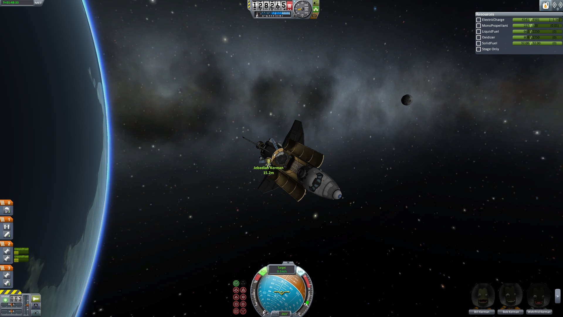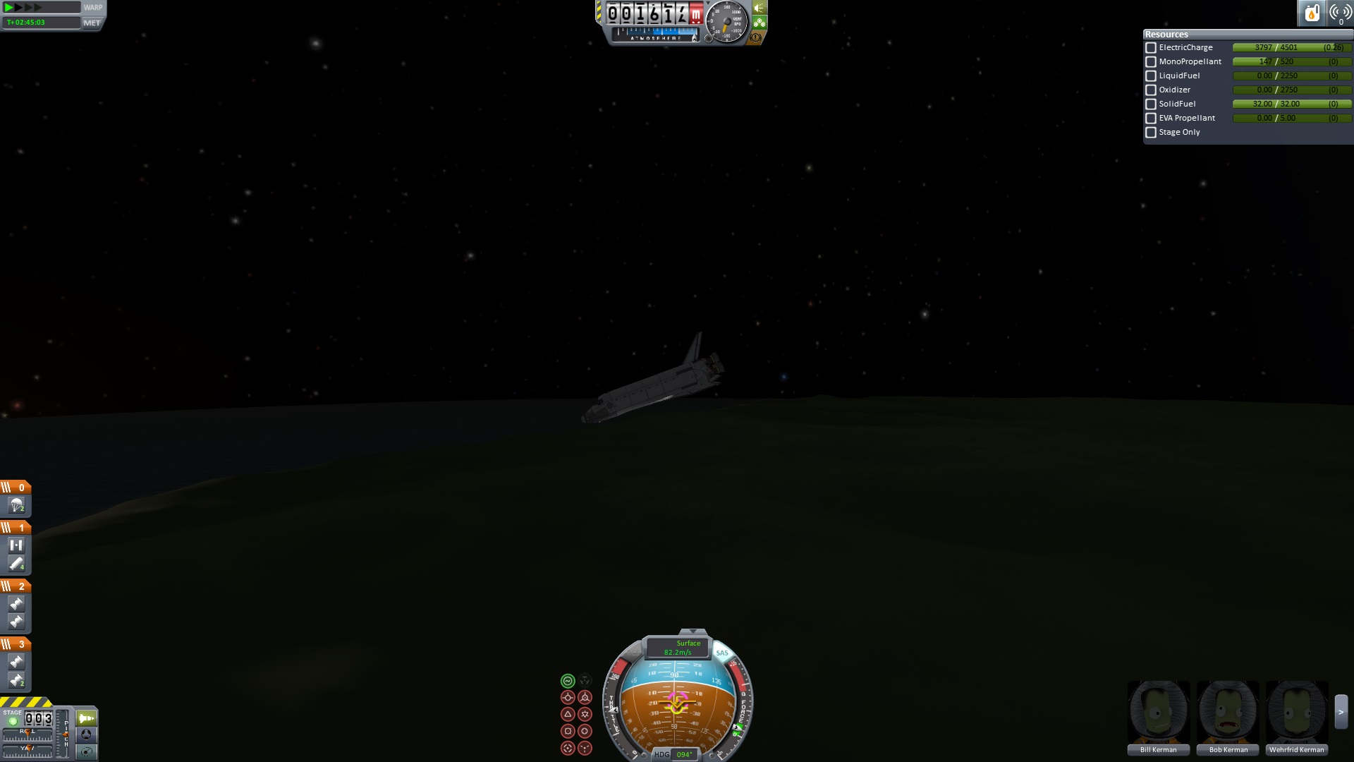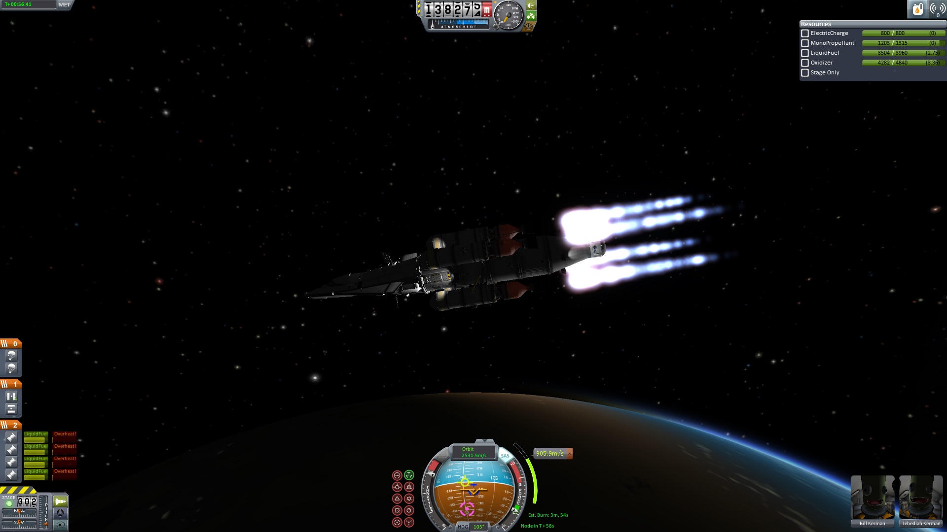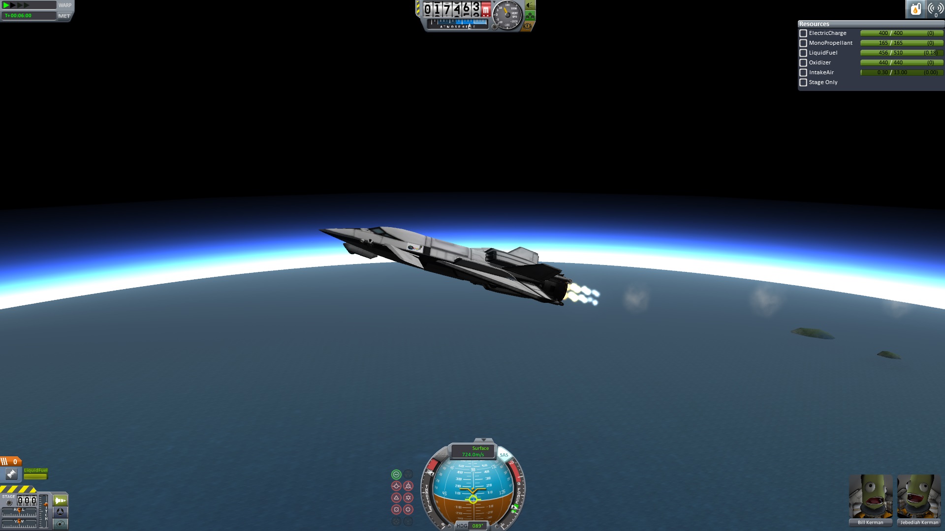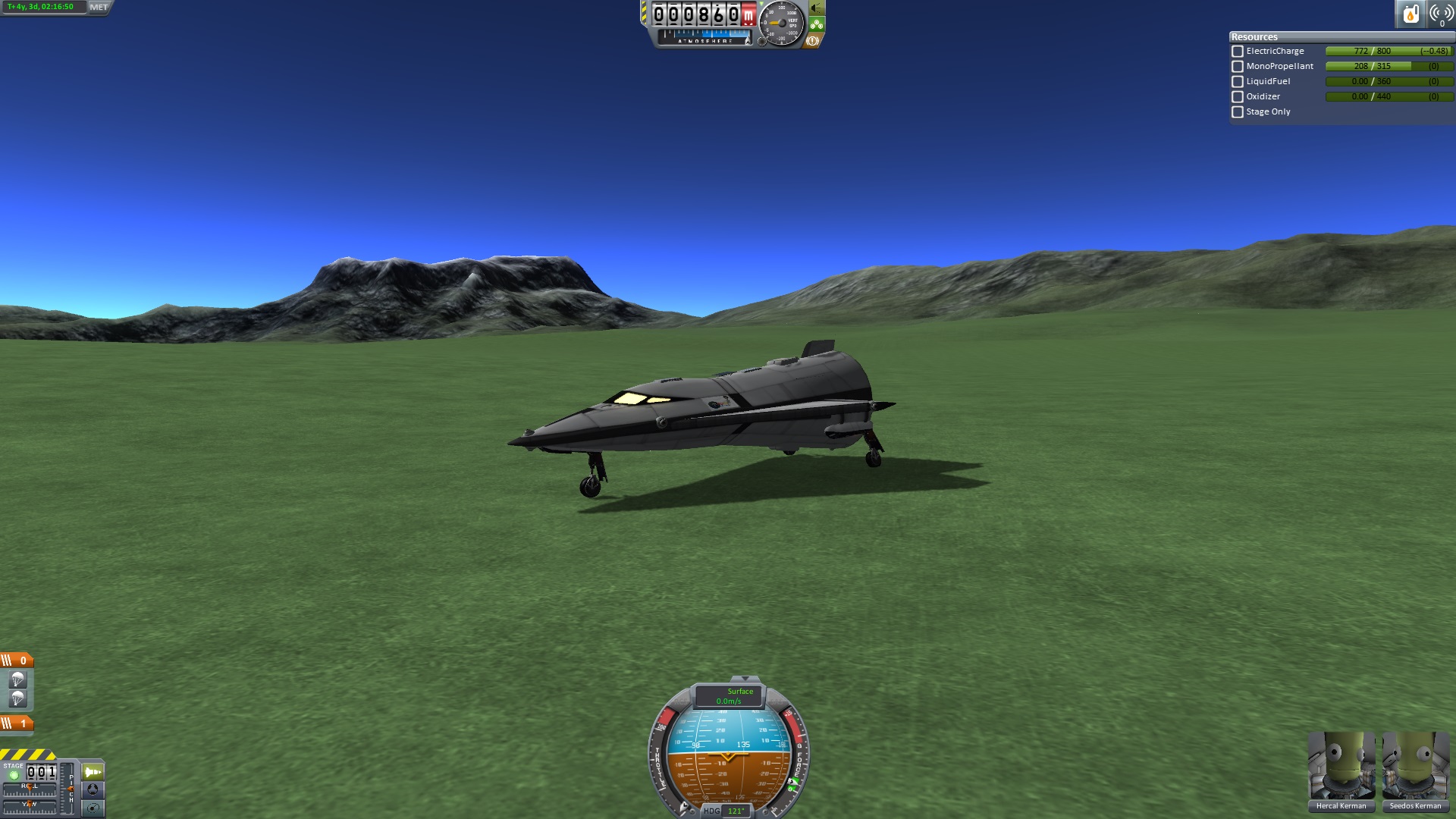 Nach dem Bill und Jebediah sich Minmus beim Vorbeiflug angeschaut hatten ging es zurück nach Kerbin wo die Landung auf Raketen/SSTO Art geplant war. Bill fand das nicht wirklich Witzig , Jeb schon.