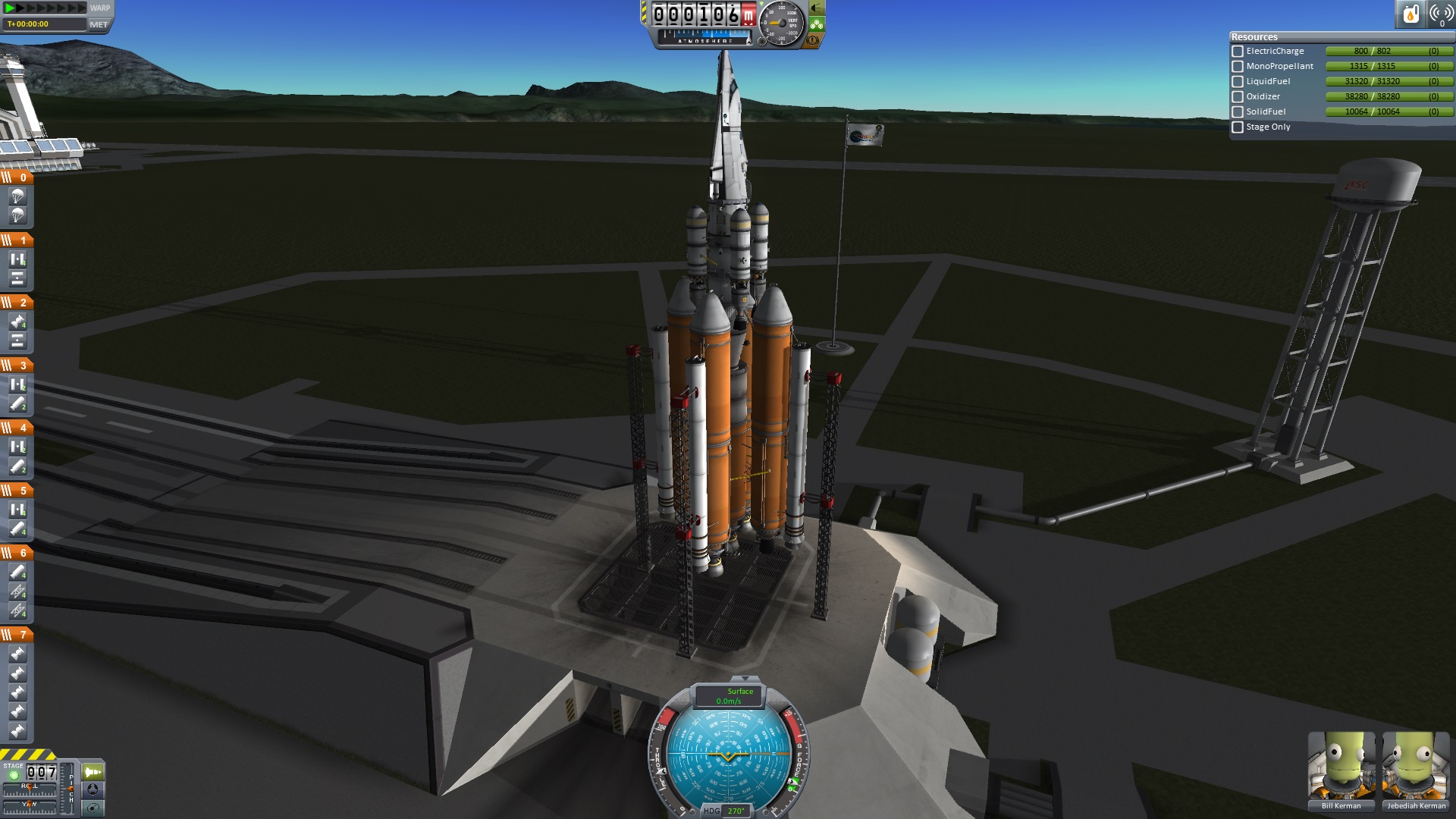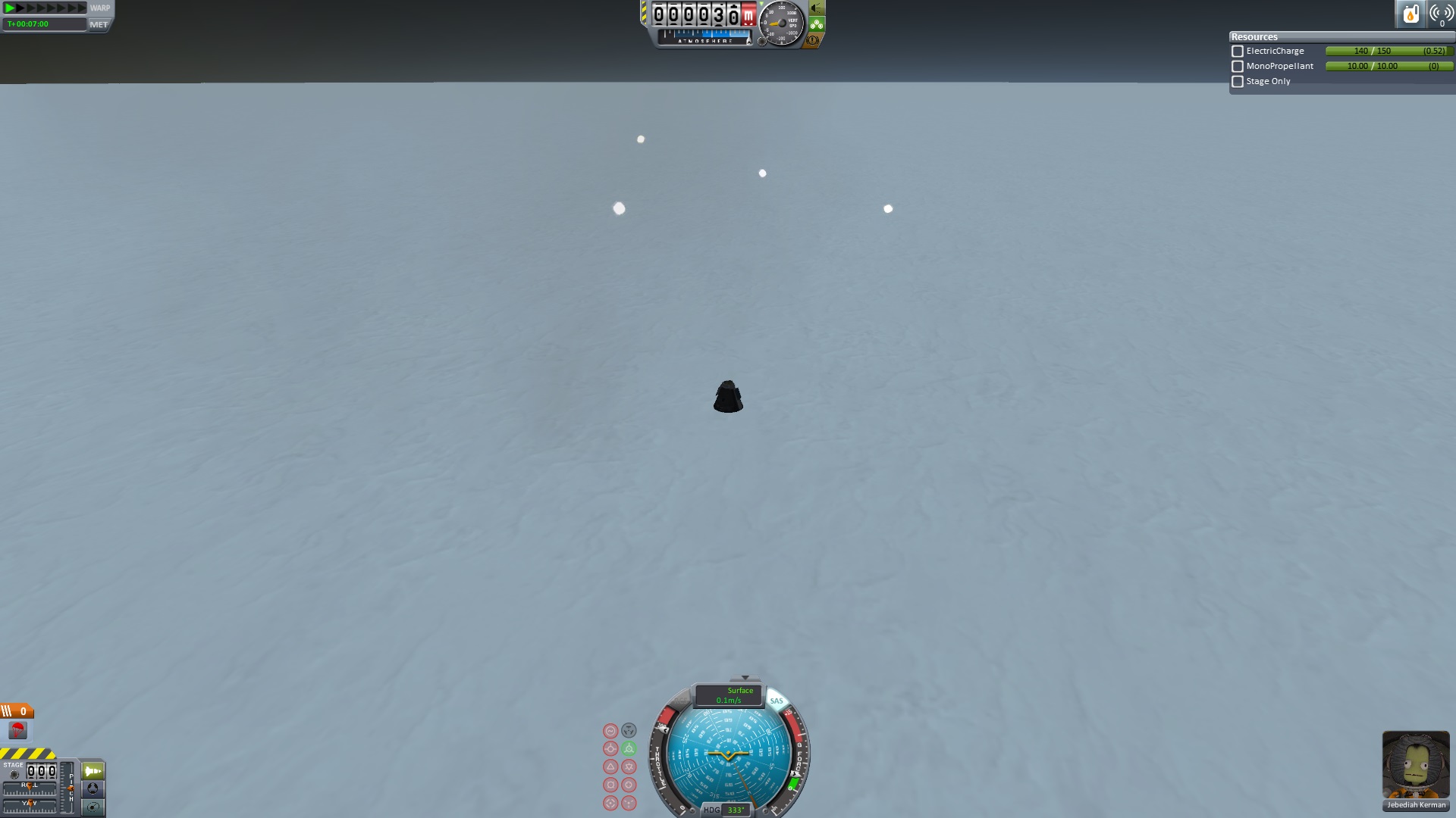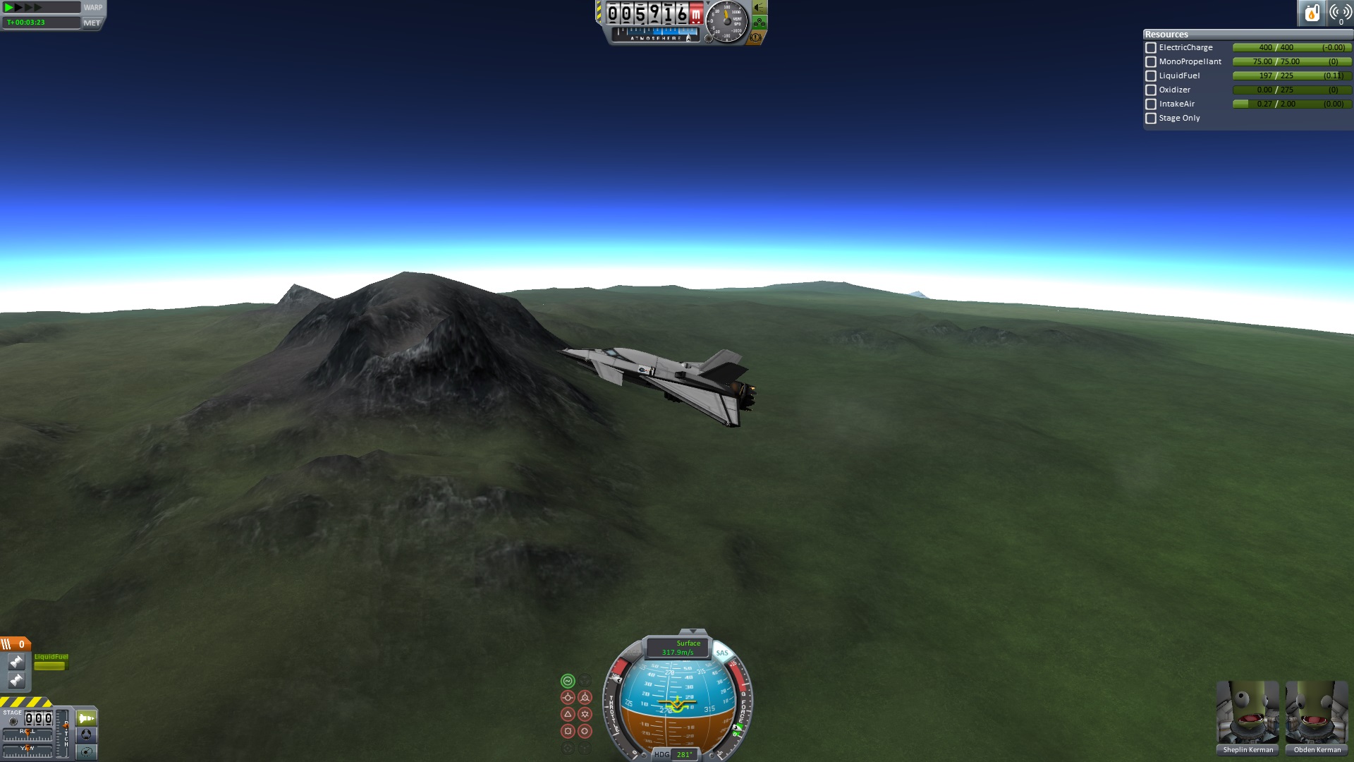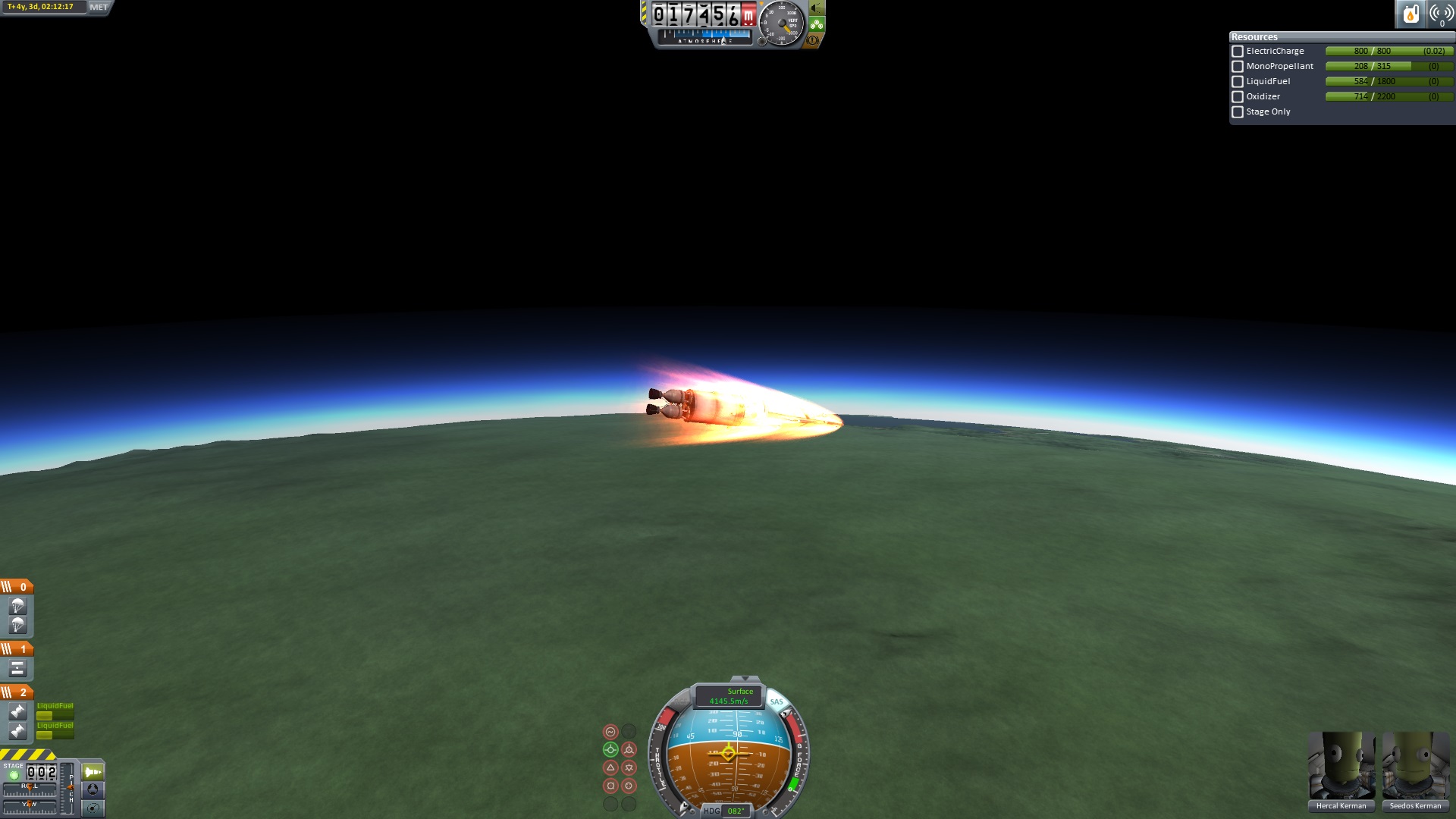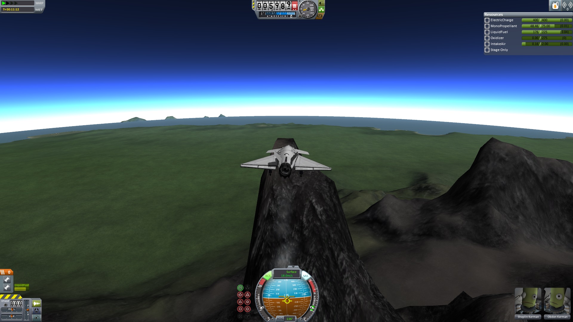 Nach dem Bill und Jebediah sich Minmus beim Vorbeiflug angeschaut hatten ging es zurück nach Kerbin wo die Landung auf Raketen/SSTO Art geplant war. Bill fand das nicht wirklich Witzig , Jeb schon.