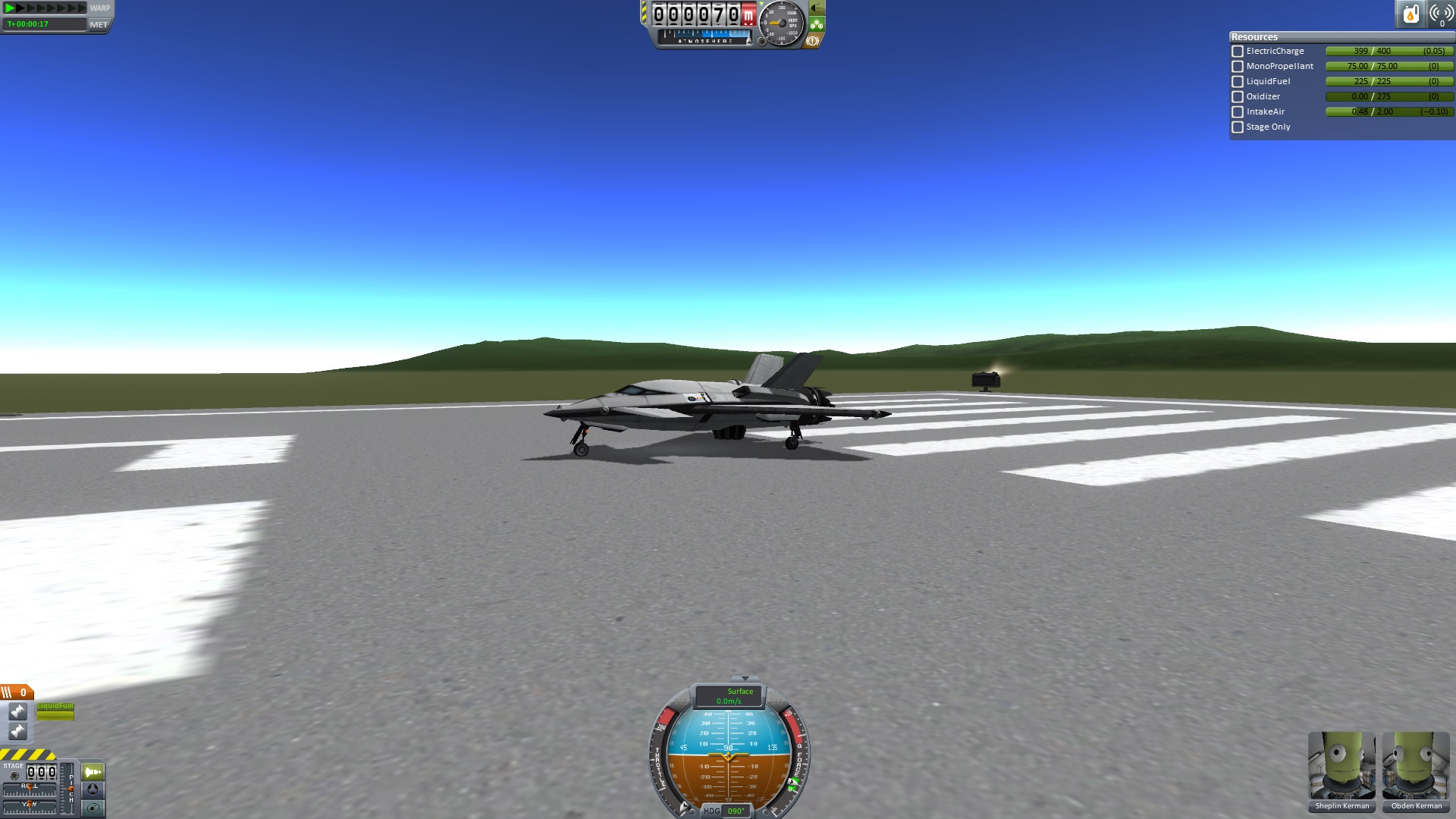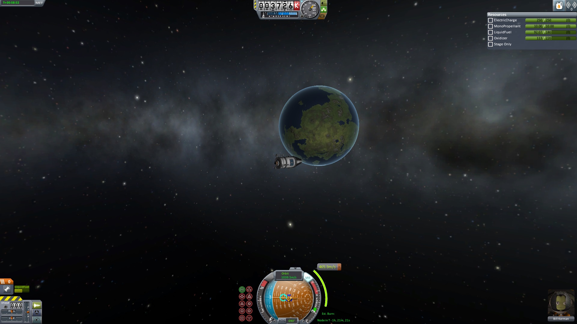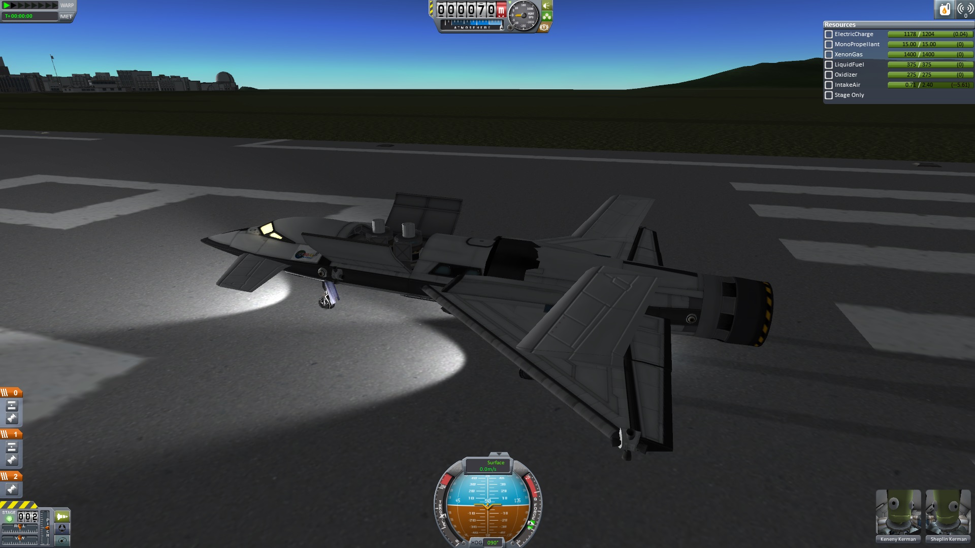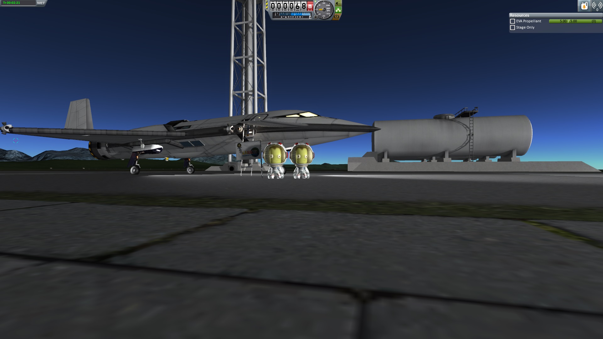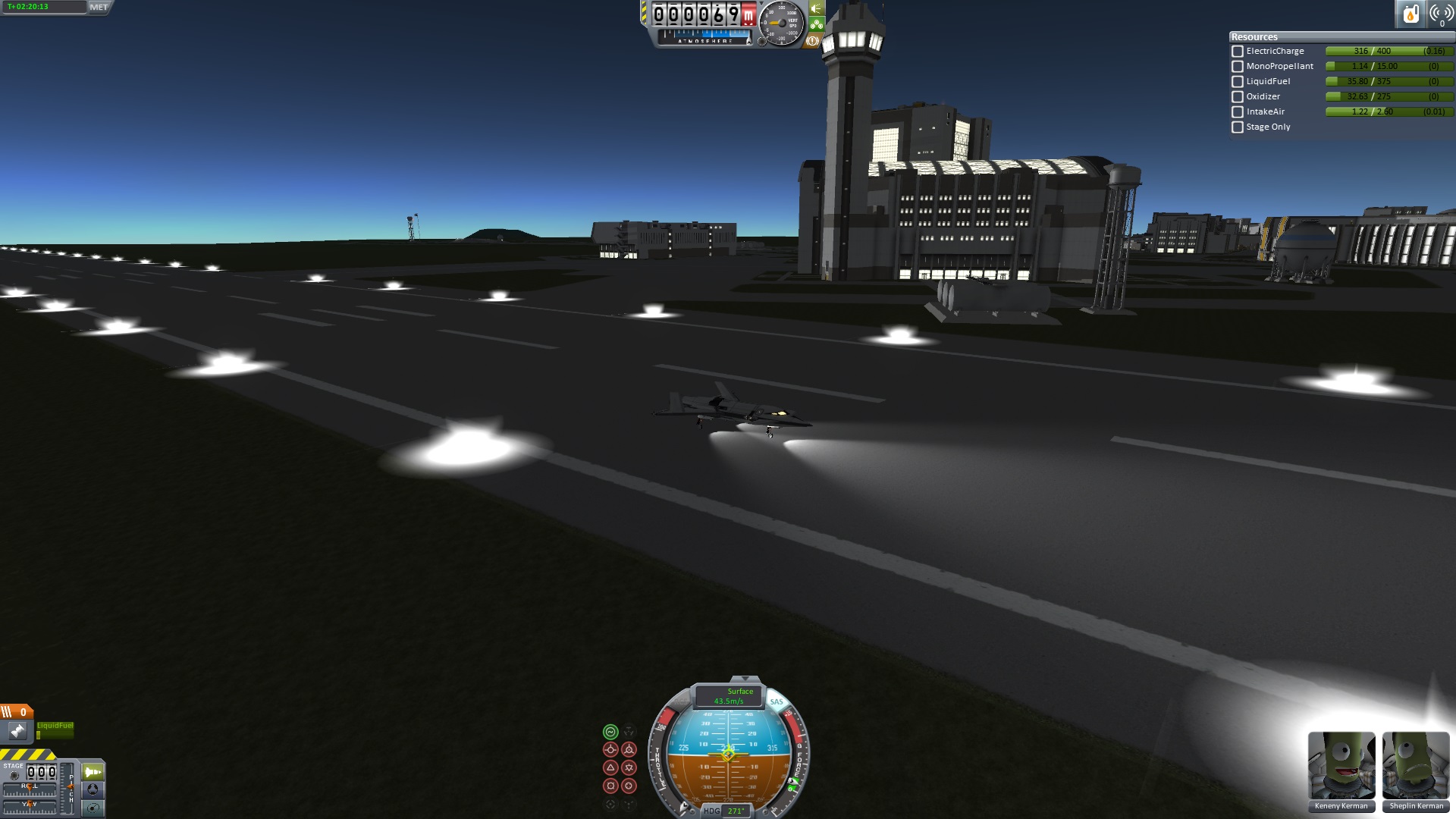 Nach dem Bill und Jebediah sich Minmus beim Vorbeiflug angeschaut hatten ging es zurück nach Kerbin wo die Landung auf Raketen/SSTO Art geplant war. Bill fand das nicht wirklich Witzig , Jeb schon.
