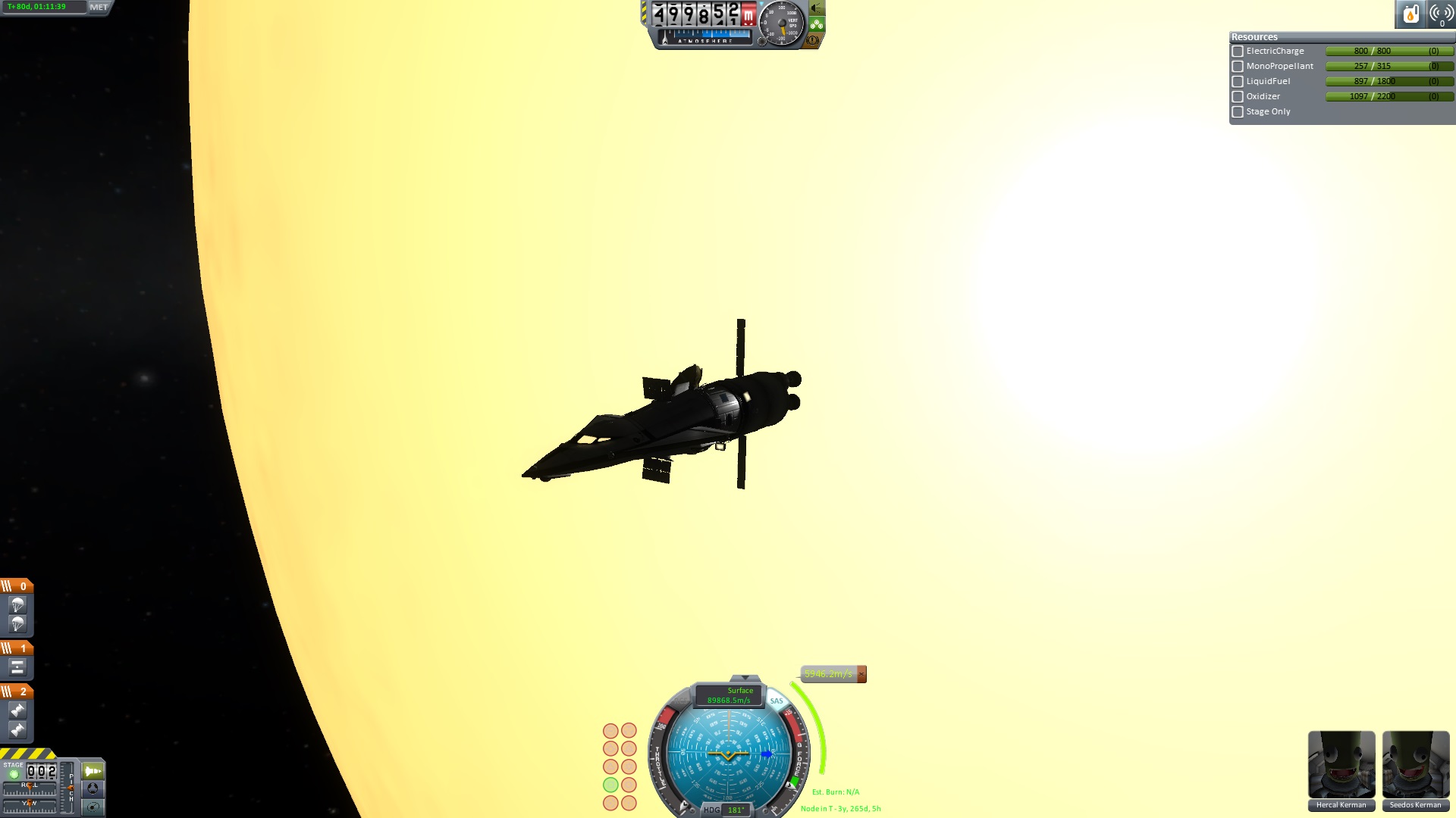 Die "alten Hasen" meinten den überlassen wir mal den Frischlingen. So sind Hercal Kerman und Seedos Kerman zu der zweifelhaften Ehre gekommen gerade mal 500.000 m an ihrem Mutterstern vorbei zu fliegen.