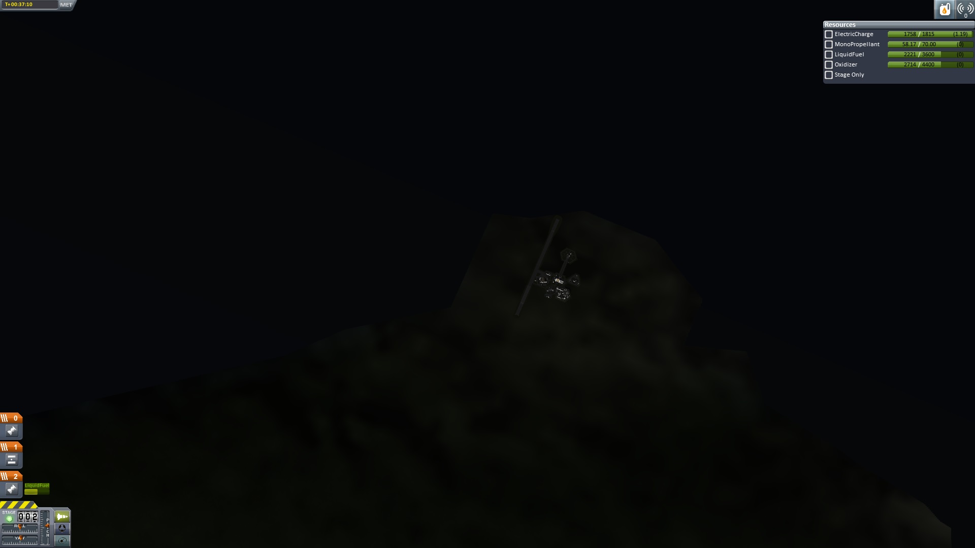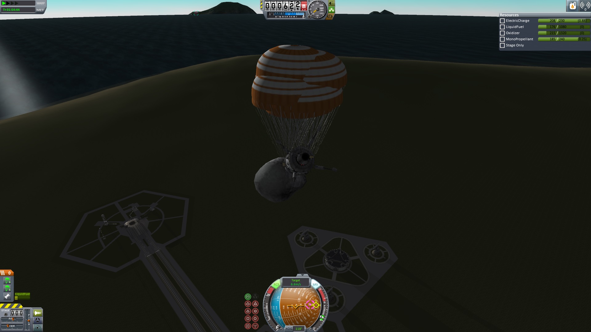 Gelandet wurde gerade zu Sonnenuntergangs Zeit, was es nicht leichter machte. Der Landeplatz selber war auch nicht der beste , sehr uneben so kam es wie es kommen mußte das Shuttle ist umgekippt. Zum Glück und Voraussicht hatte Jeb schon das Hauptfahrwerk ausgefahren und mit Hilfe vom RCS konnte eine Beschädigung des Shuttle vermieden werden.