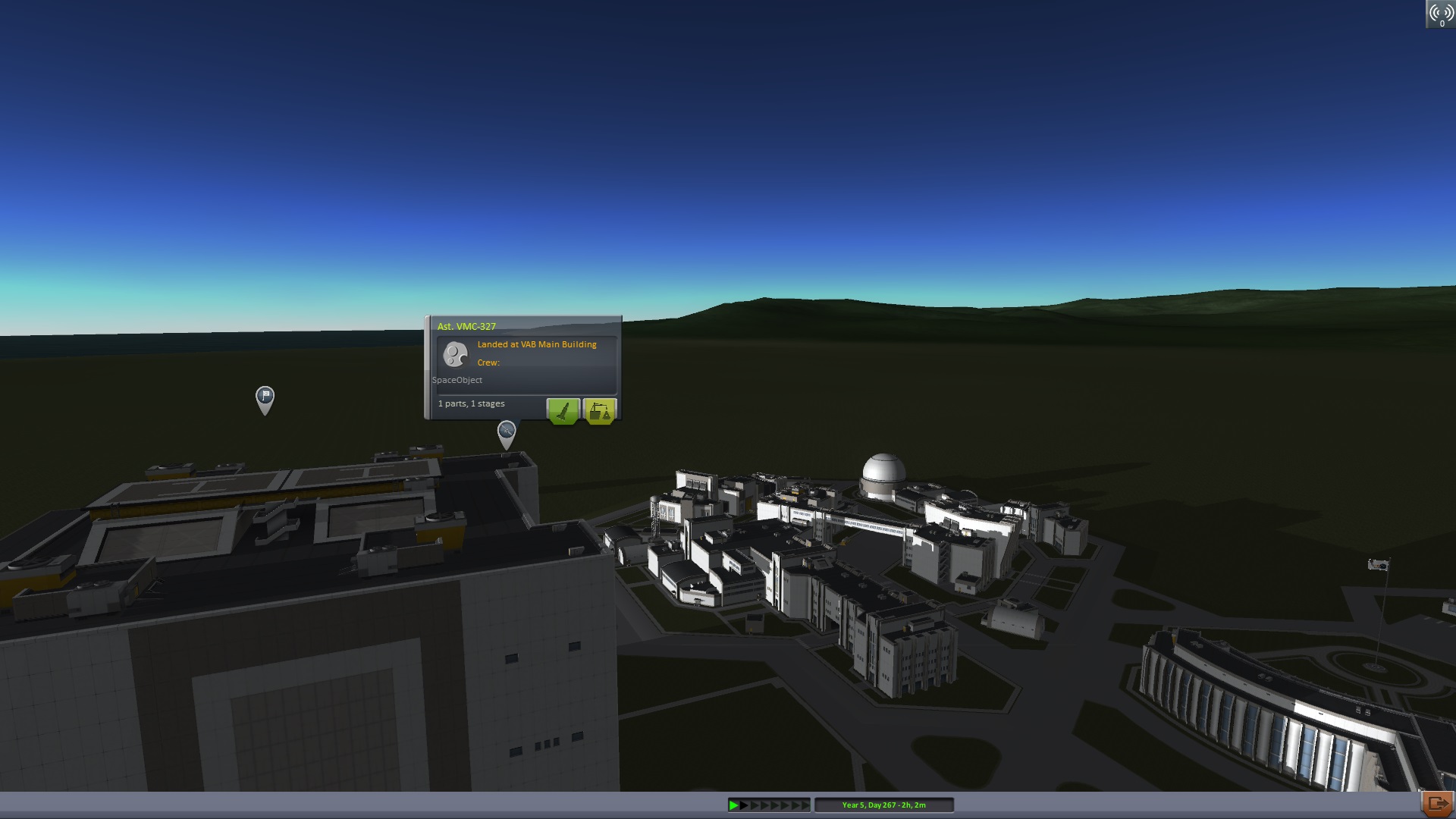 In der zwischen Zeit war die Umlaufbahn des Asteroiden auch so weit angepasst das mit dem Landemanöver begonnen werden konnte, als ersten stellte als Zielpunkt Jeb eine Flagge auf dem VAB auf.
