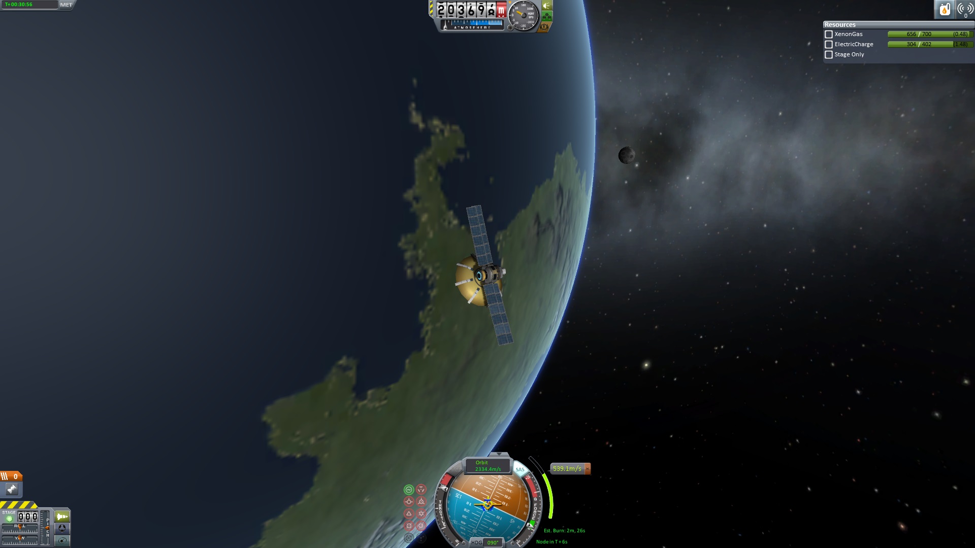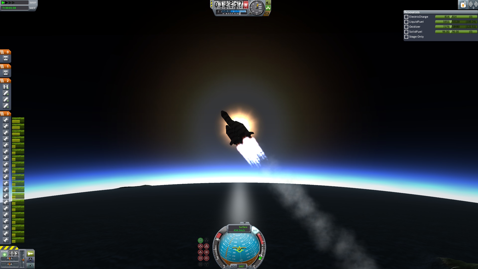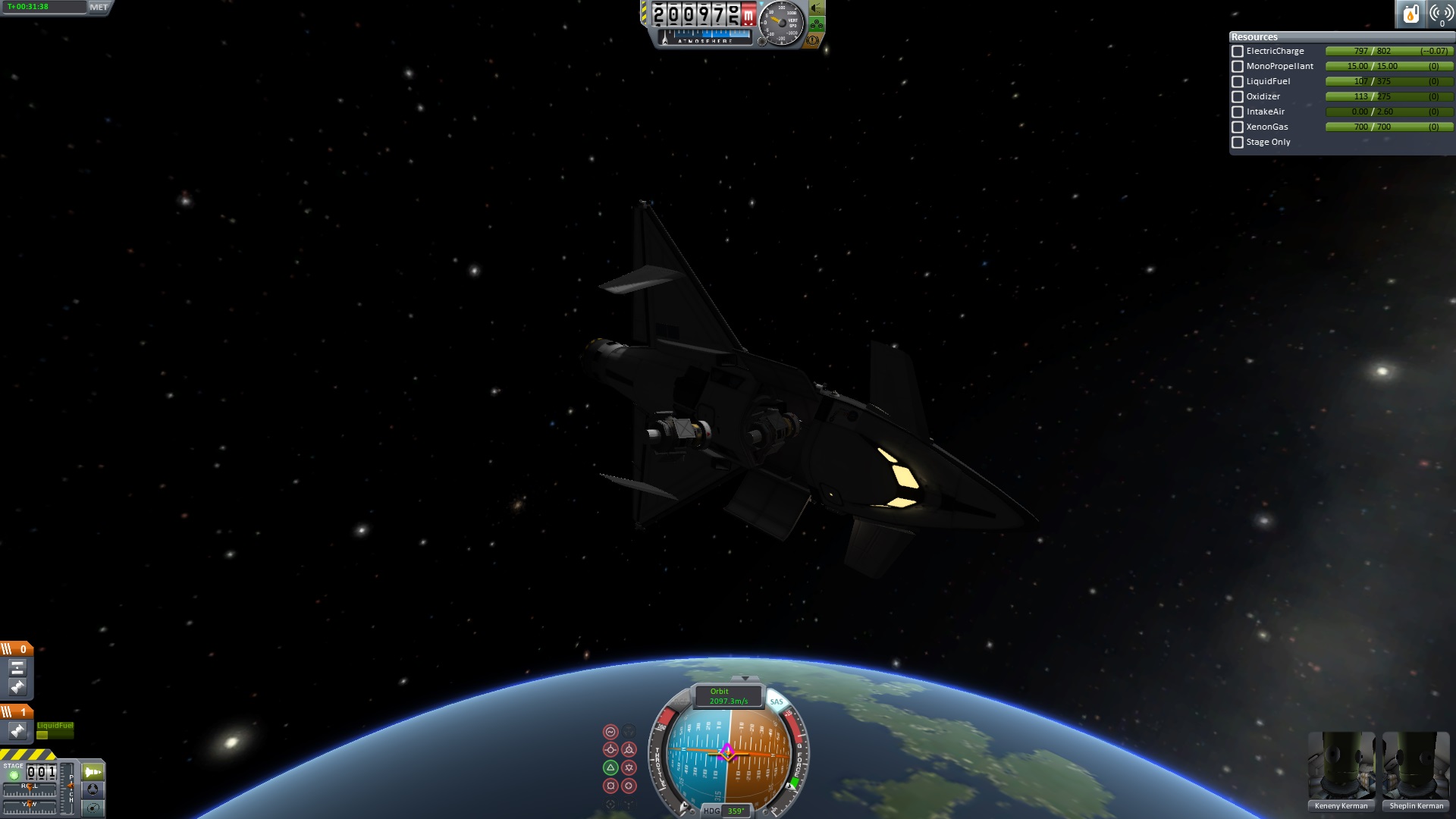 Für diesen Auftrag wurde das SSTO was sie schon einmal nach Minmus gebracht hatte leicht umgebaut, hat einen größern Tank bekommen und die Sache "lande wie eine Rakete" wurde auch entfernt. Huckepack haben sie die Sonde gepackt, nicht schön aber es funst. Der Start war wie immer bei einem SSTO, bis man im Orbit ist dauert es recht lange.