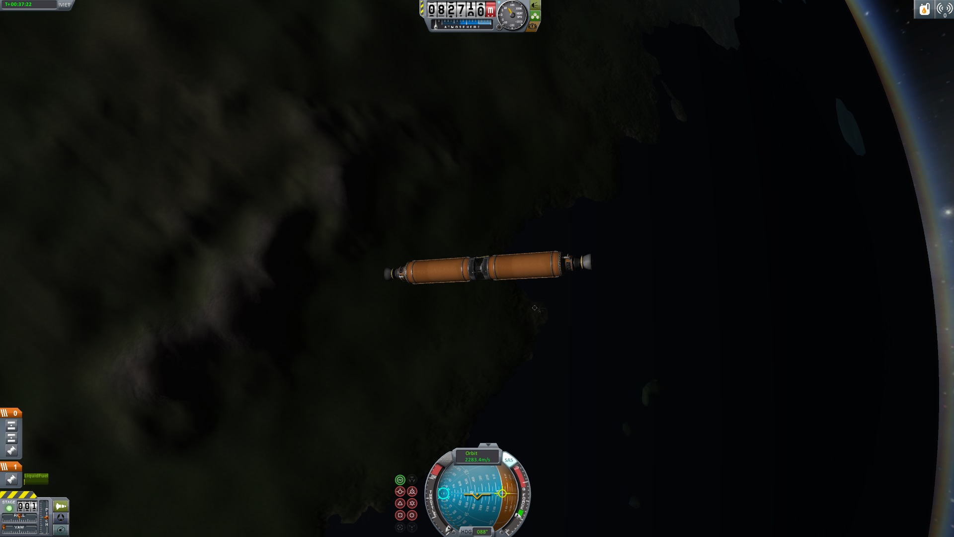 Aufgabe: Erreiche einen Orbit um Kerbin, transportiere dabei eine Kopie des Lifters den du benutzt. Die Tanks der Kopie müssen nicht gefüllt sein.