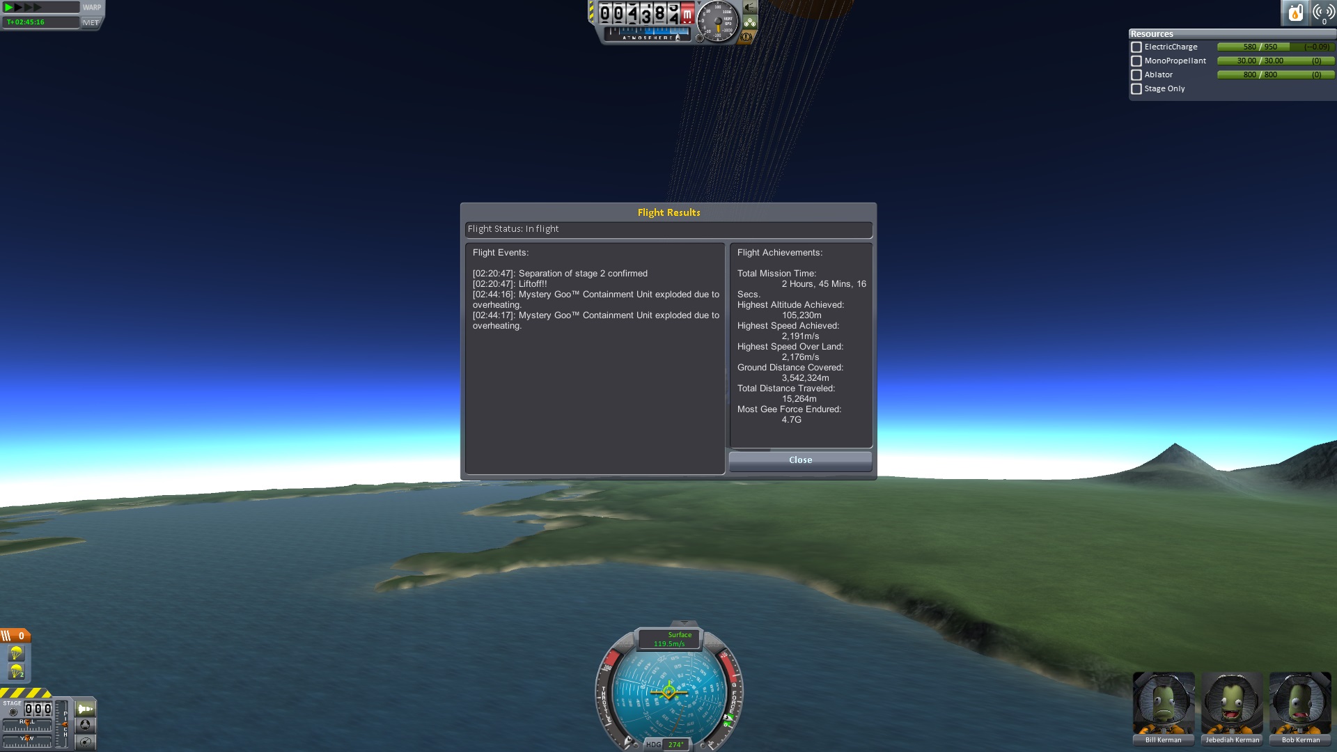 • So habe es grade noch einmal probiert, interessanterweise bin ich dieses mal nicht komplett explodiert sondern nur das Innenleben der Cargo-Bay. Die Kerbonauten haben es leider trotzdem nicht überlebt da die Fallschirme nicht ausgelöst haben.