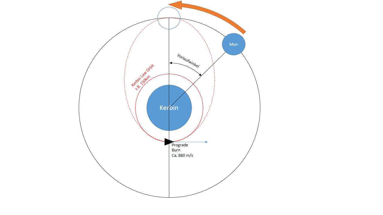 Also nochmal zum Verständniss, wenn ich Mun mit einem Parabelflug treffen will, dann warte ich bis Mun am Himmel über dem KSC ca 40 Grad Richtung Westen steht?