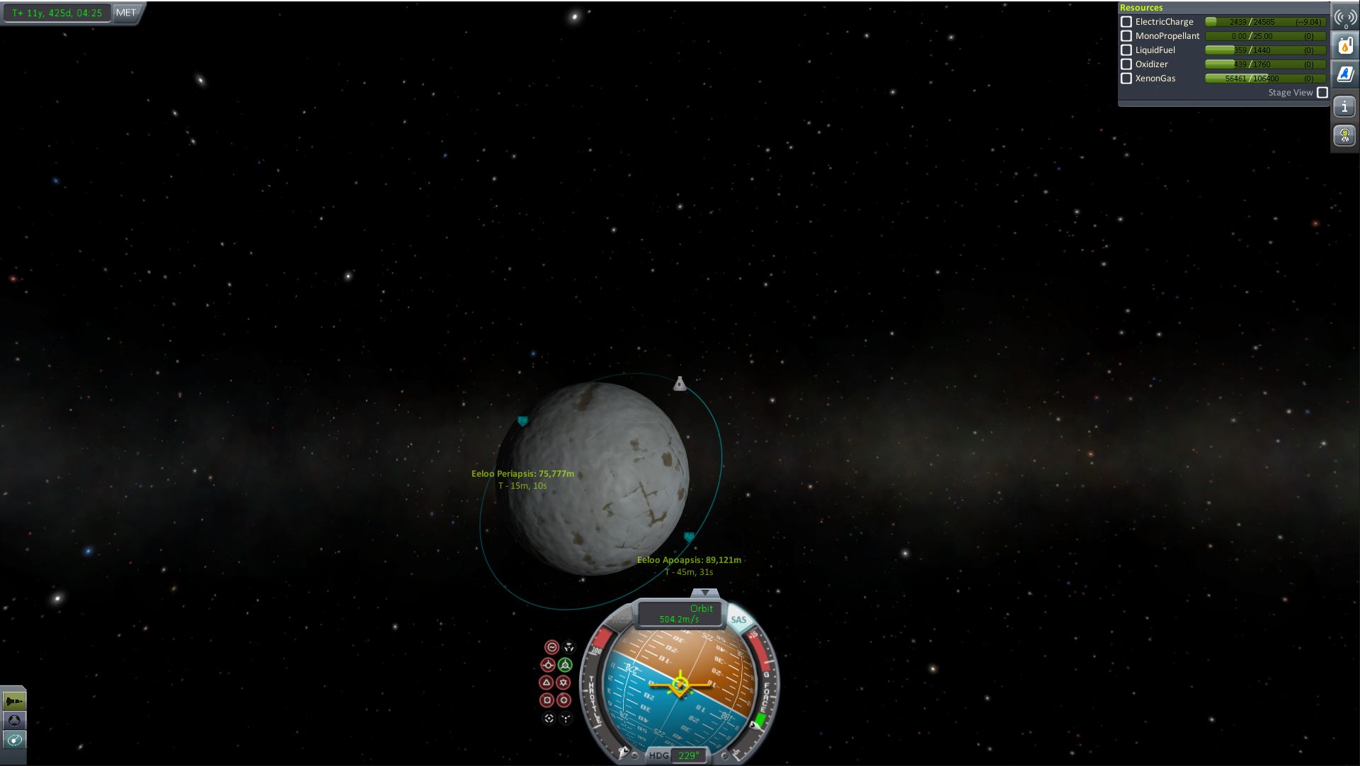 Die genaue Zeit teile ich euch dann noch mit.Naja, siehe meine Video Serie. Ich bin halt sehr aggressiv geflogen ( wer zur Hölle ist dieser Hohmann? ) weil ich soviel D/V hatte. Ionenantrieb halt. Mal gucken ob der Sprit noch bis nach Hause reicht. Und ich werde sicherlich nochmal ein paar Jahre für den Transfer zurück nach Kerbin brauchen. Mal gucken wieviel es am Schluss ist. Aber die 20 Jahre werd ich bestimmt auch noch reißen.