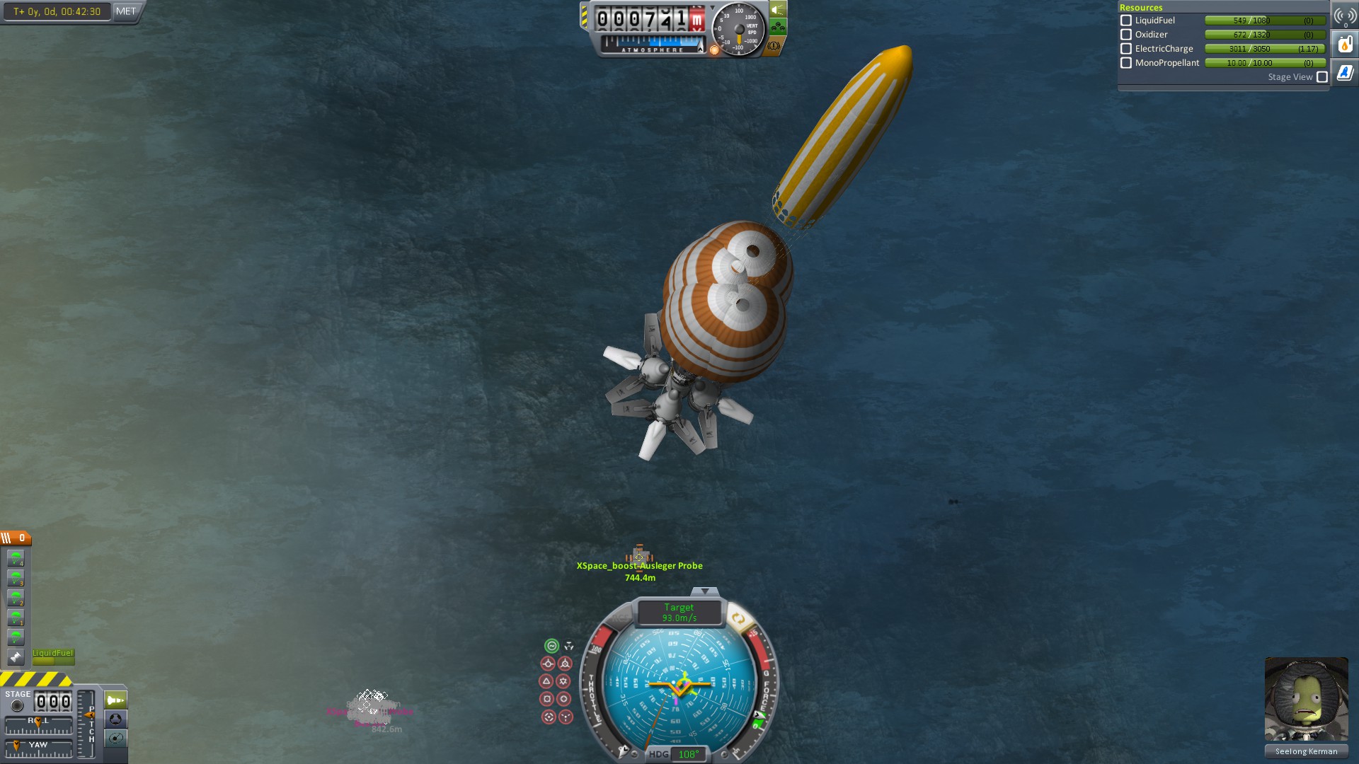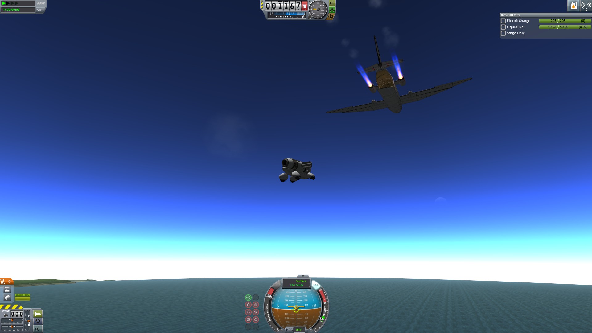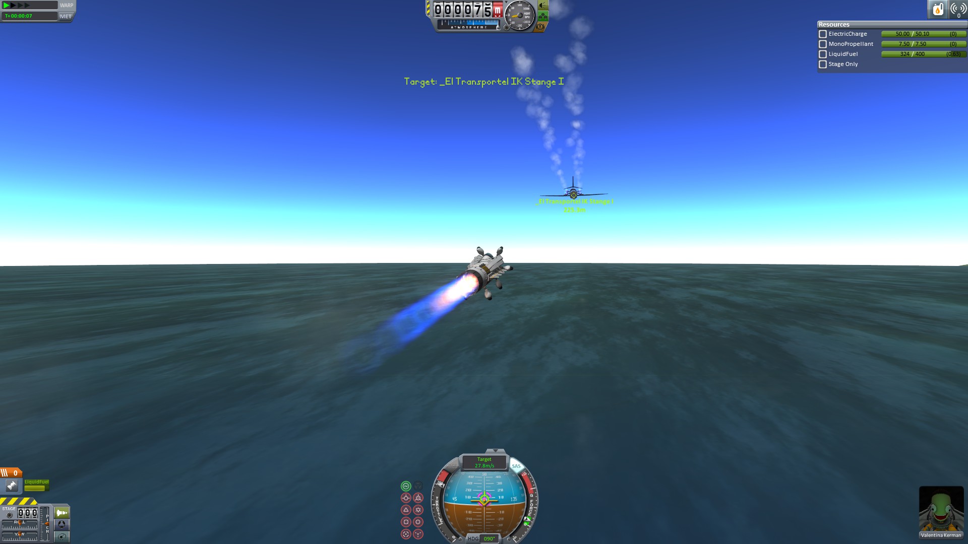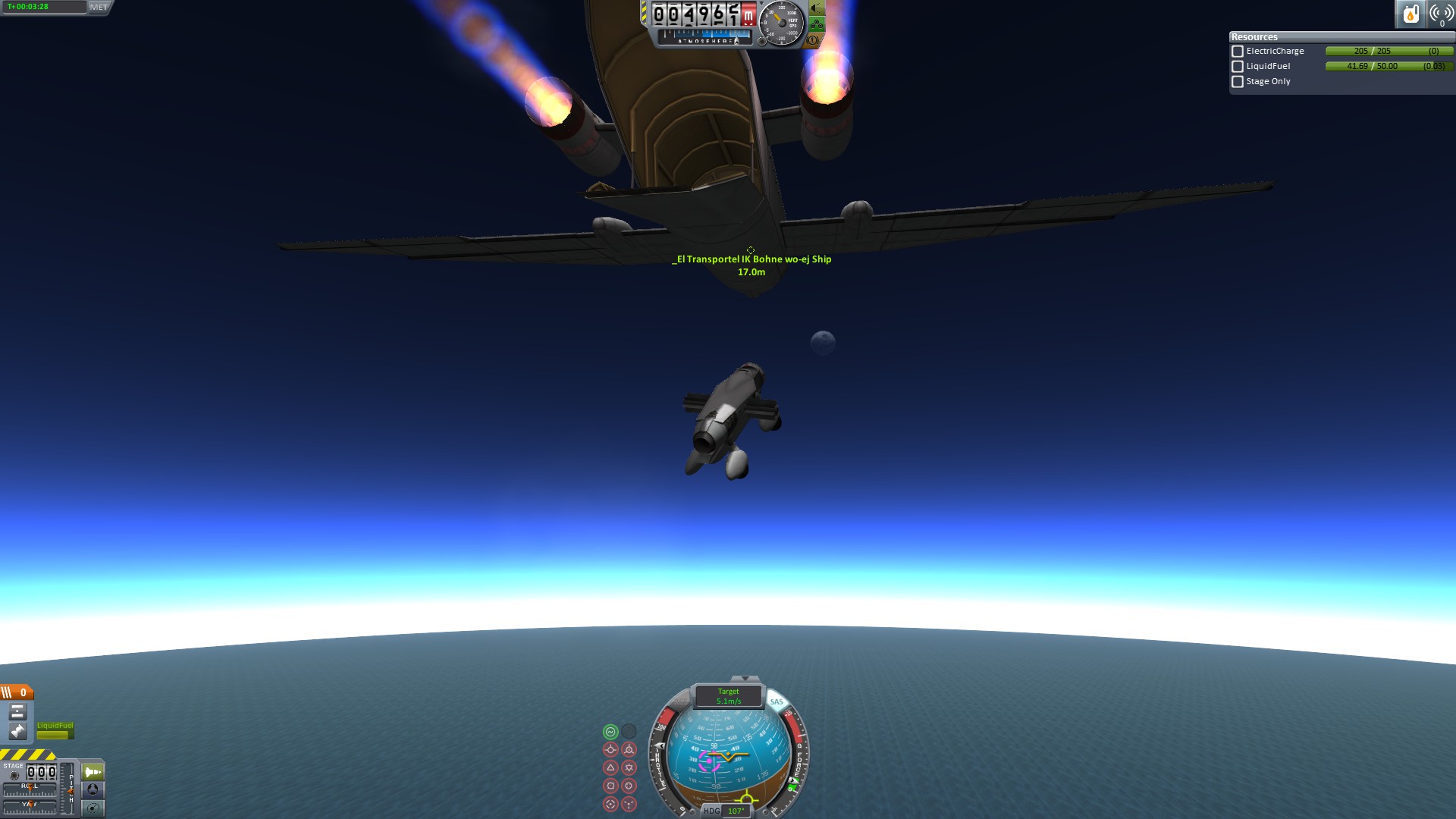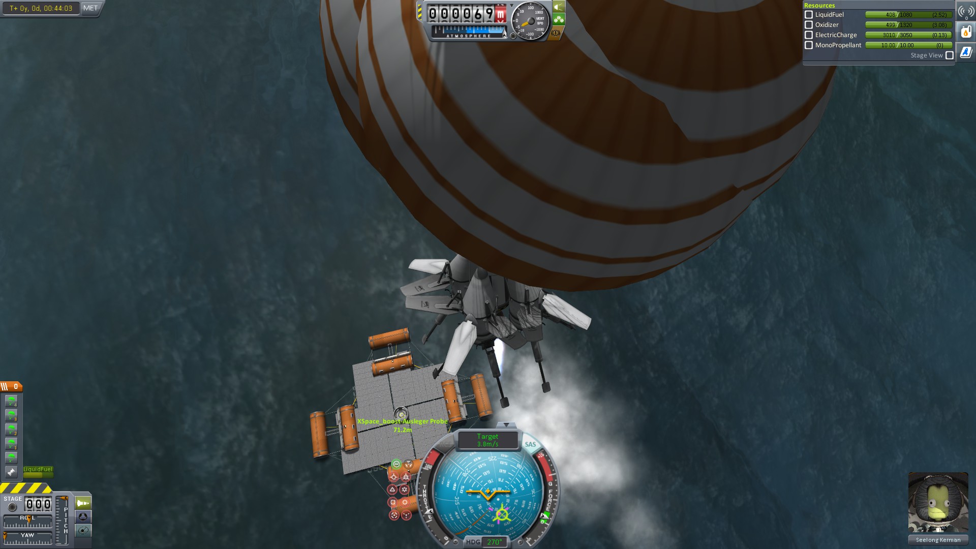Abwurf bei 162m/s, Landung 6 Minuten (und ein paar leichte Rempler) später; Geschwindigkeit von Trägerschiff bei 78m/s (siehe Screenshot direkt beim Schließen der Luke).