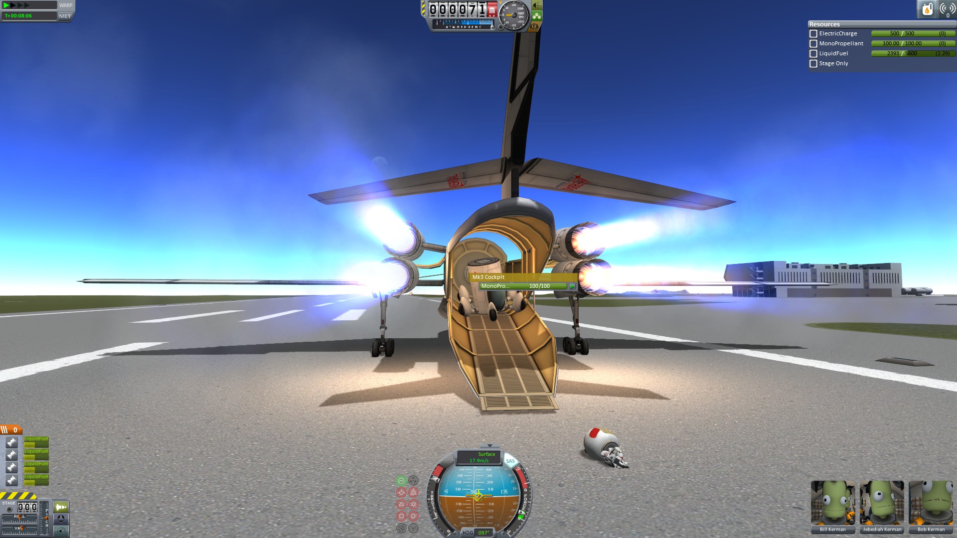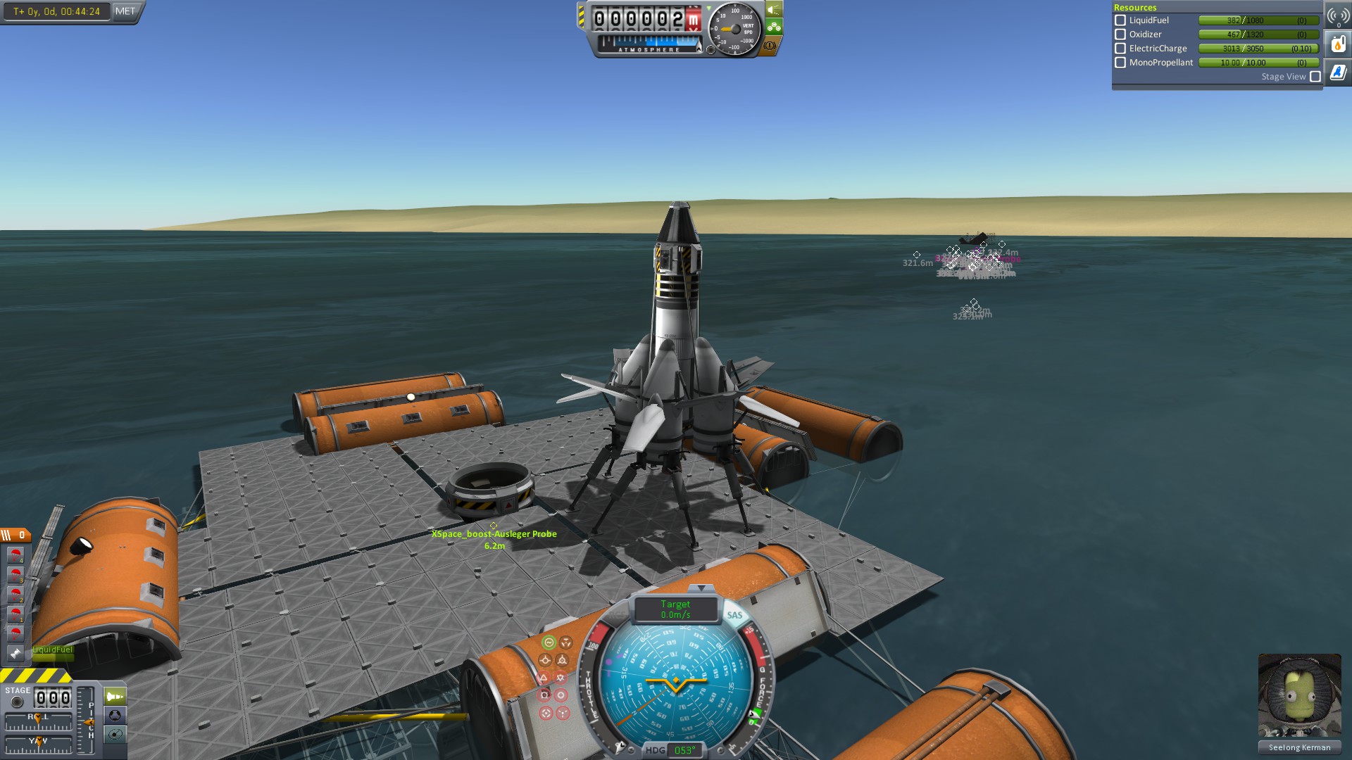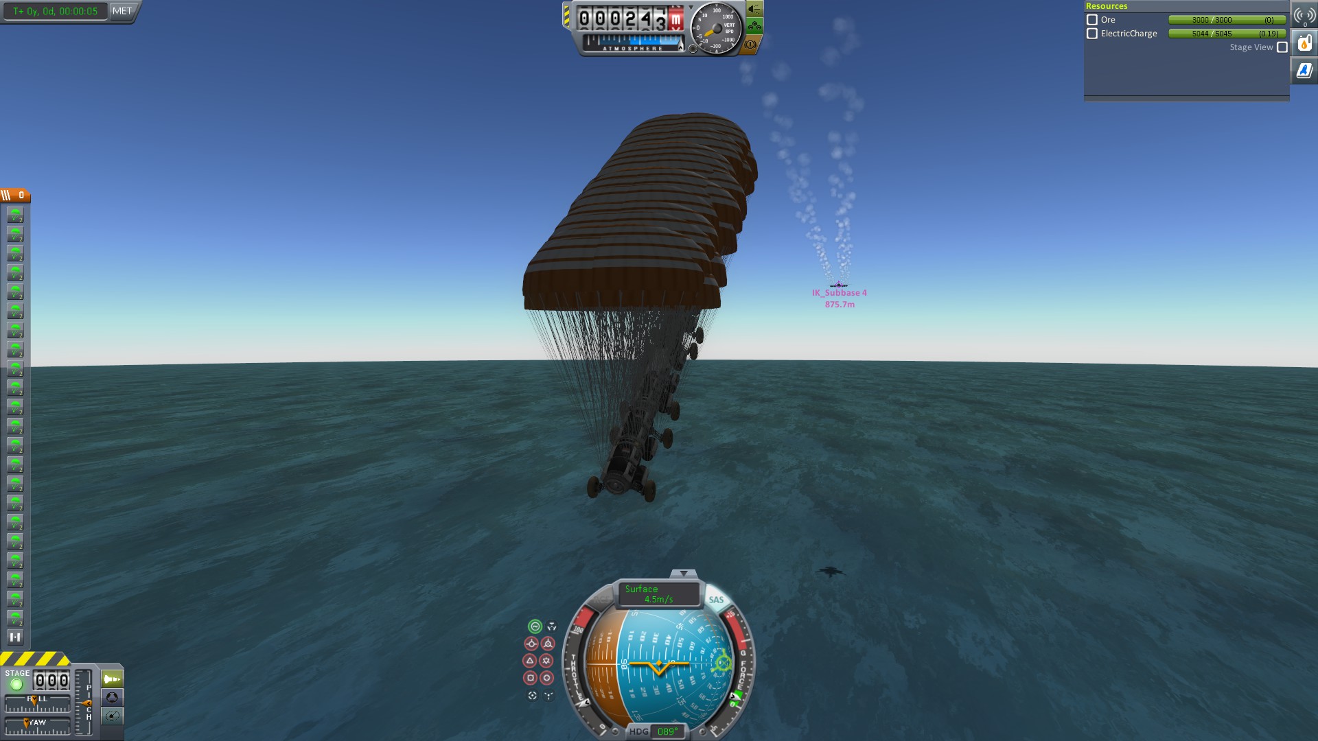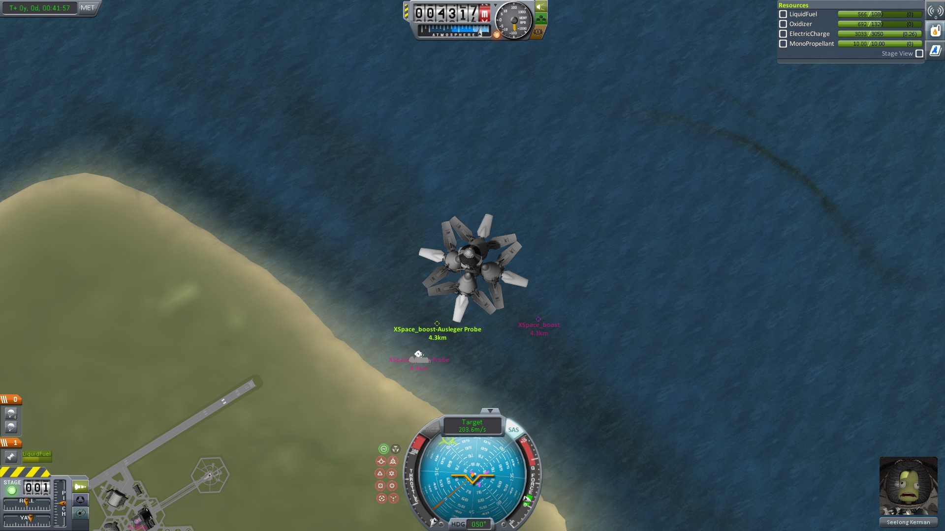 Abwurf bei 162m/s, Landung 6 Minuten (und ein paar leichte Rempler) später; Geschwindigkeit von Trägerschiff bei 78m/s (siehe Screenshot direkt beim Schließen der Luke).