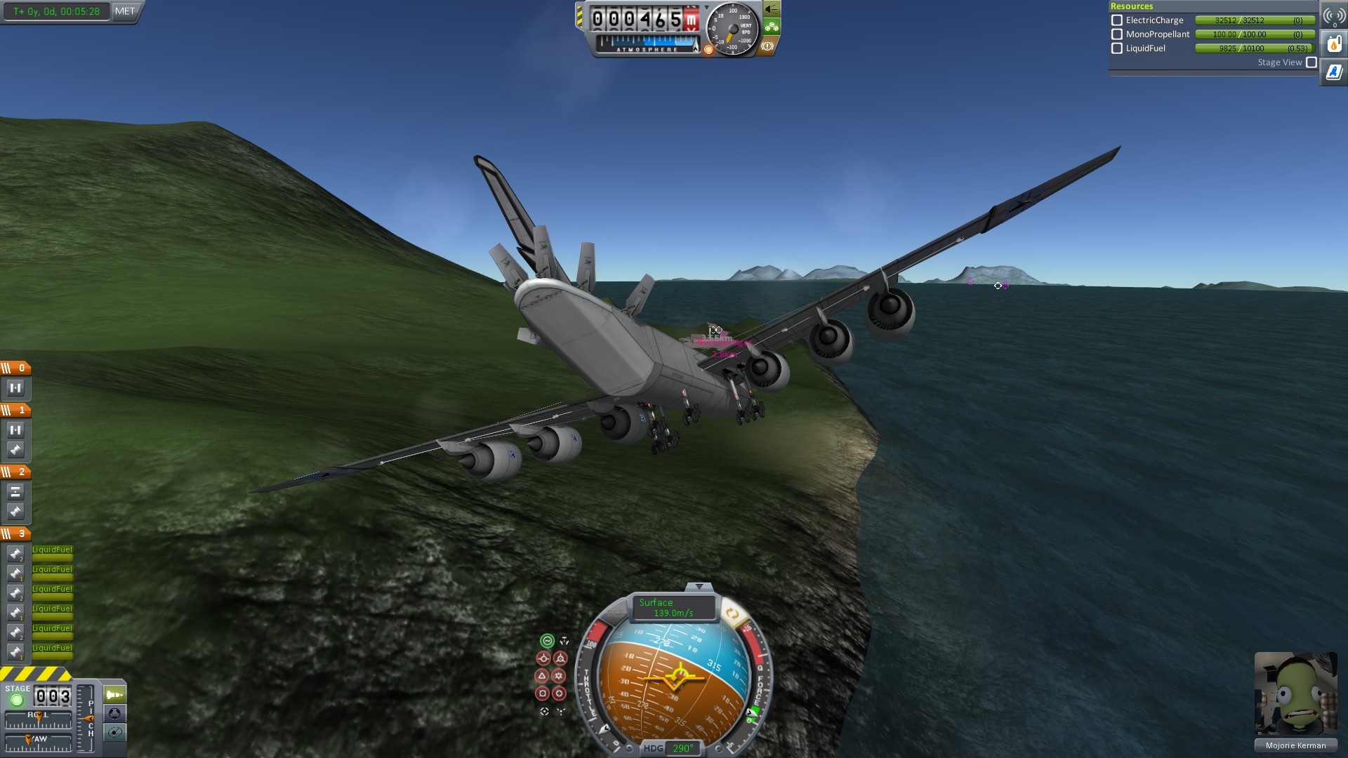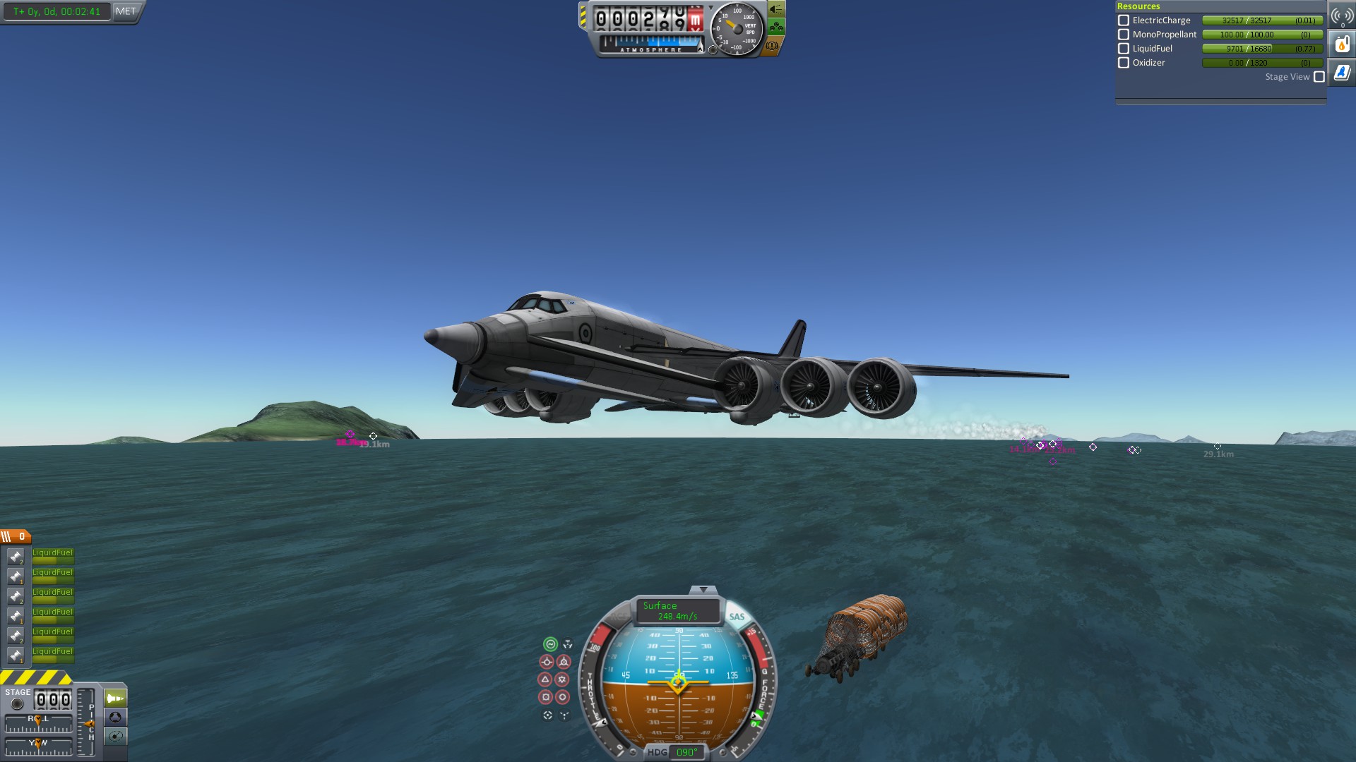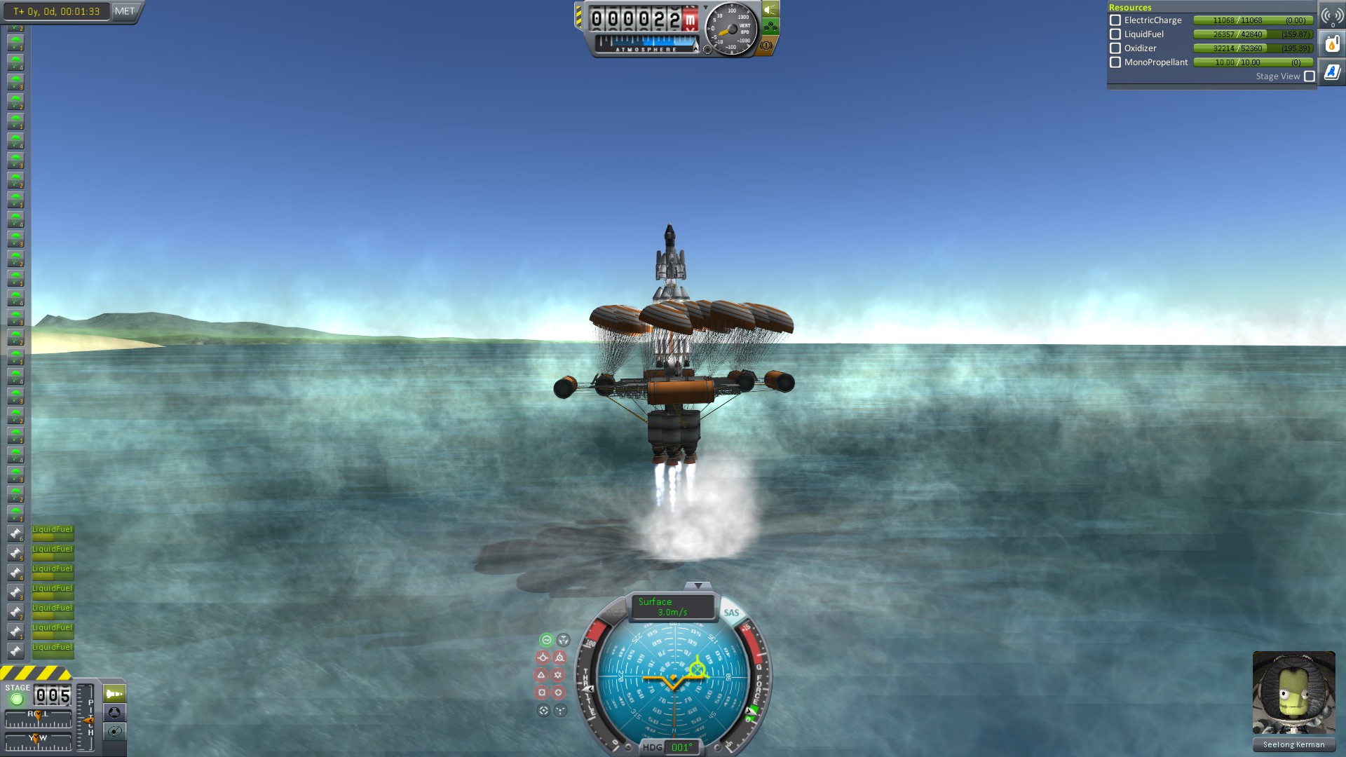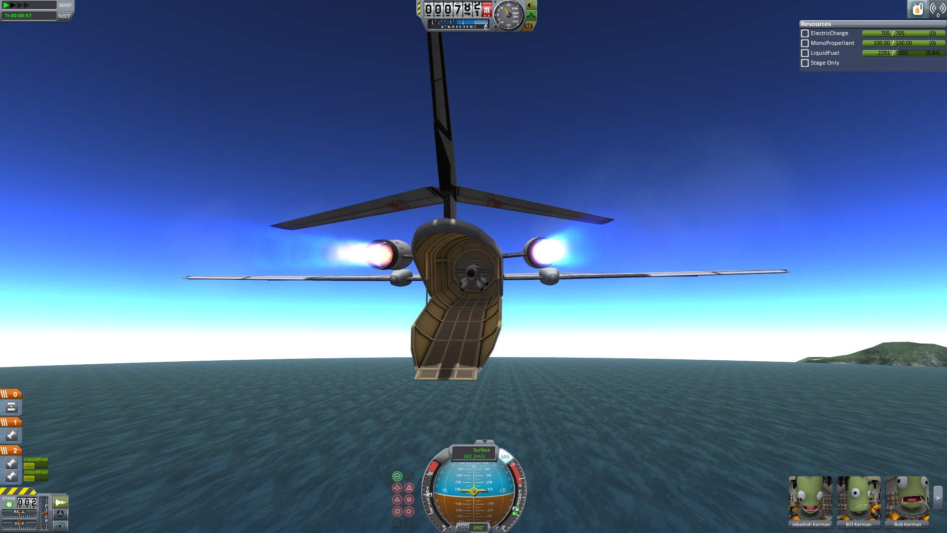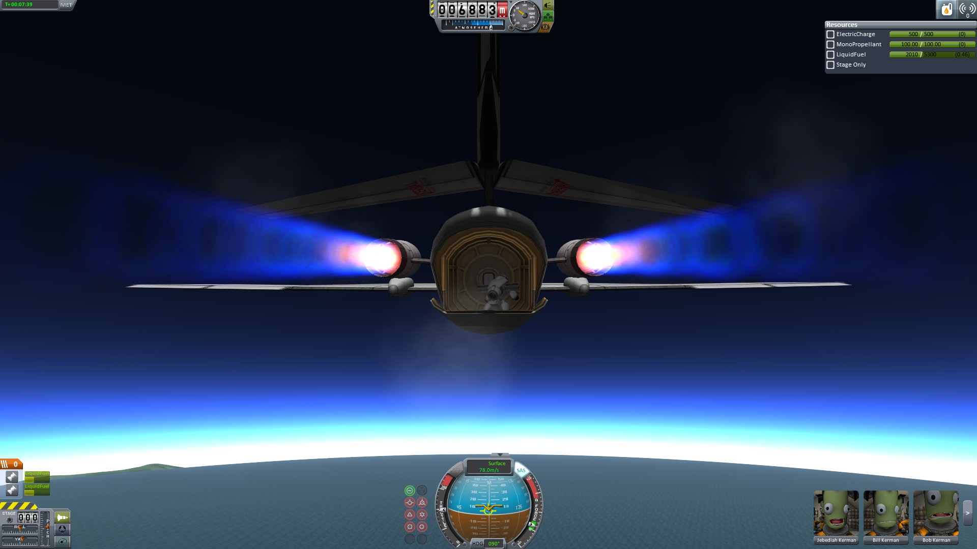 Abwurf bei 162m/s, Landung 6 Minuten (und ein paar leichte Rempler) später; Geschwindigkeit von Trägerschiff bei 78m/s (siehe Screenshot direkt beim Schließen der Luke).
