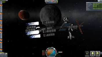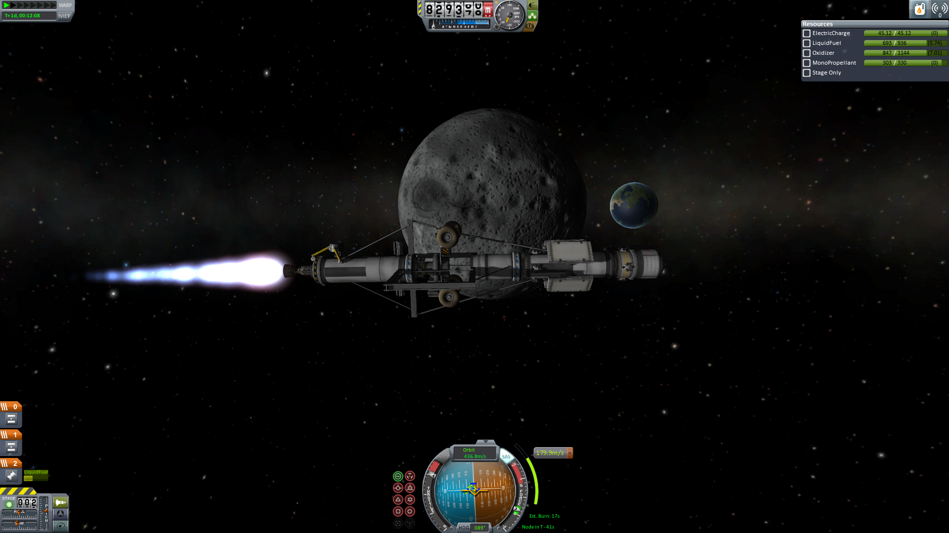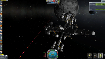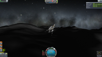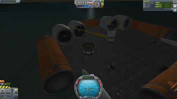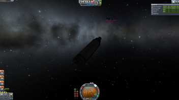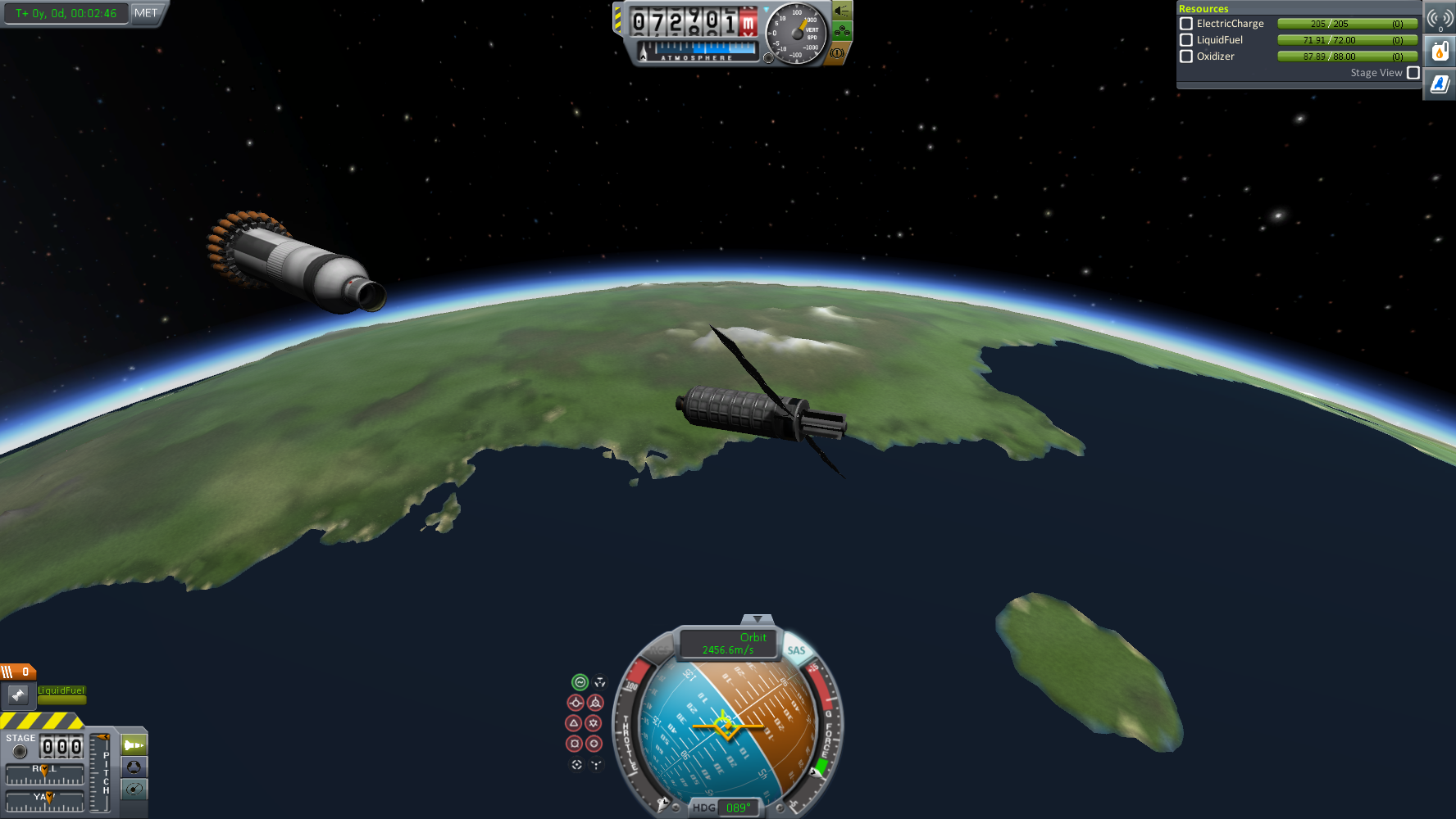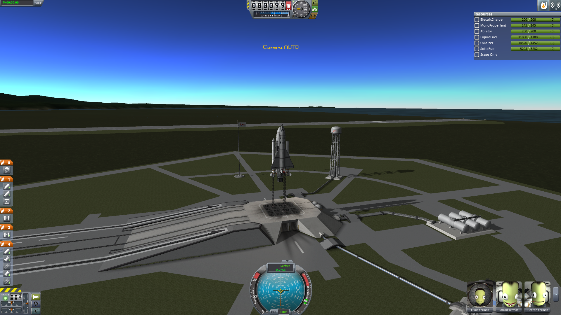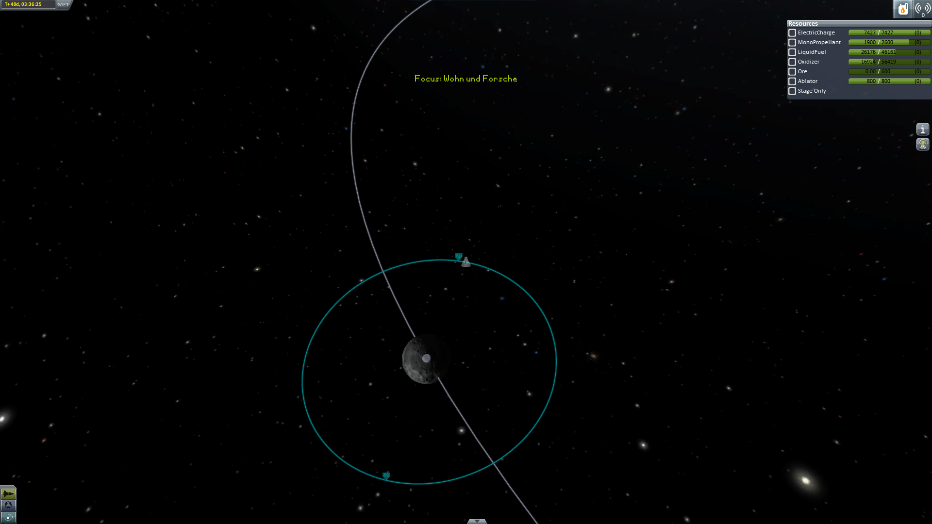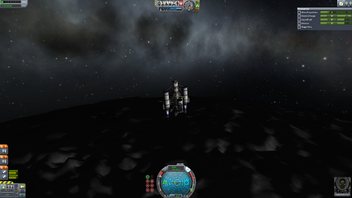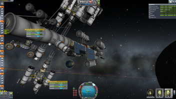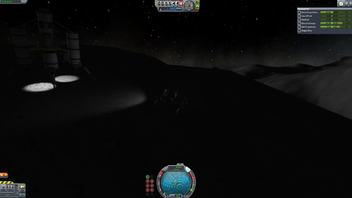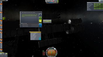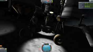 Als erstes wurde die Sektion "Wohn und Forsche" gestartet. Sie bietet Schlafgelegenheiten für acht Kerbals, zwei Laborplätze, zwei Pilotensitze und diverse Brettspiele zur Unterhaltung. Außerdem ist sie mit großen Solarpanels ausgestattet, die die Stromversorgung des Schiffes übernehmen werden.