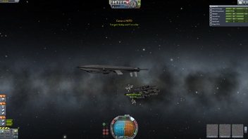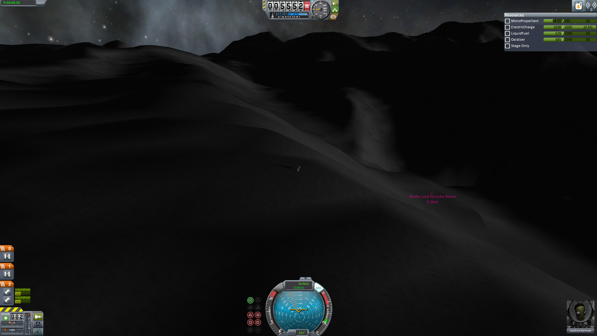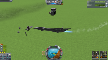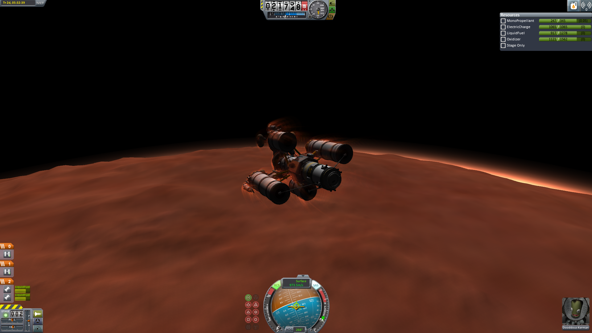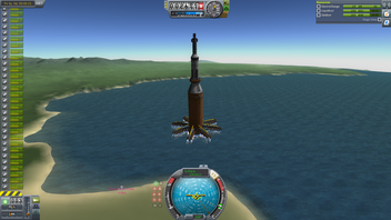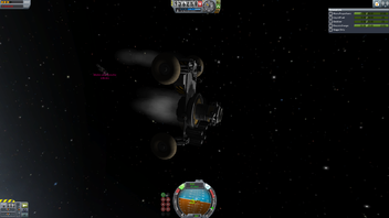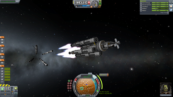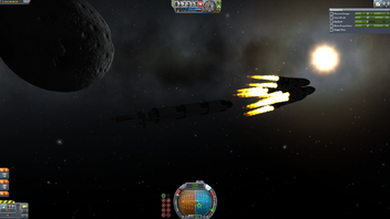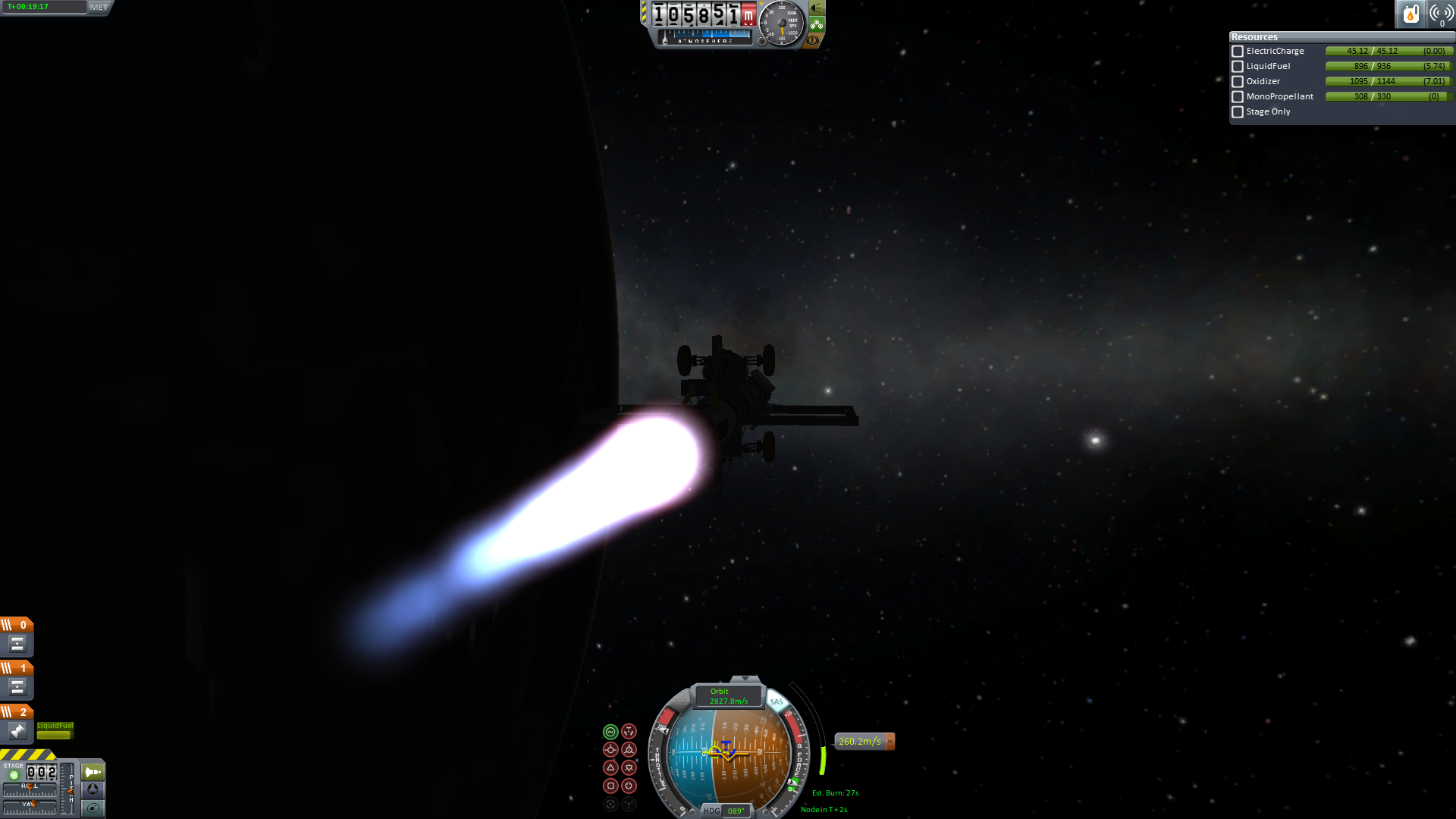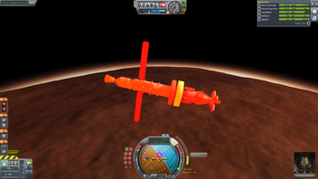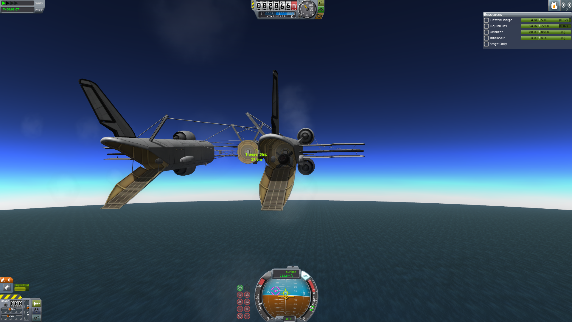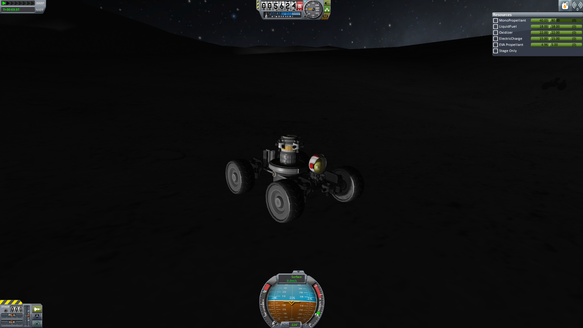 Als erstes wurde die Sektion "Wohn und Forsche" gestartet. Sie bietet Schlafgelegenheiten für acht Kerbals, zwei Laborplätze, zwei Pilotensitze und diverse Brettspiele zur Unterhaltung. Außerdem ist sie mit großen Solarpanels ausgestattet, die die Stromversorgung des Schiffes übernehmen werden.